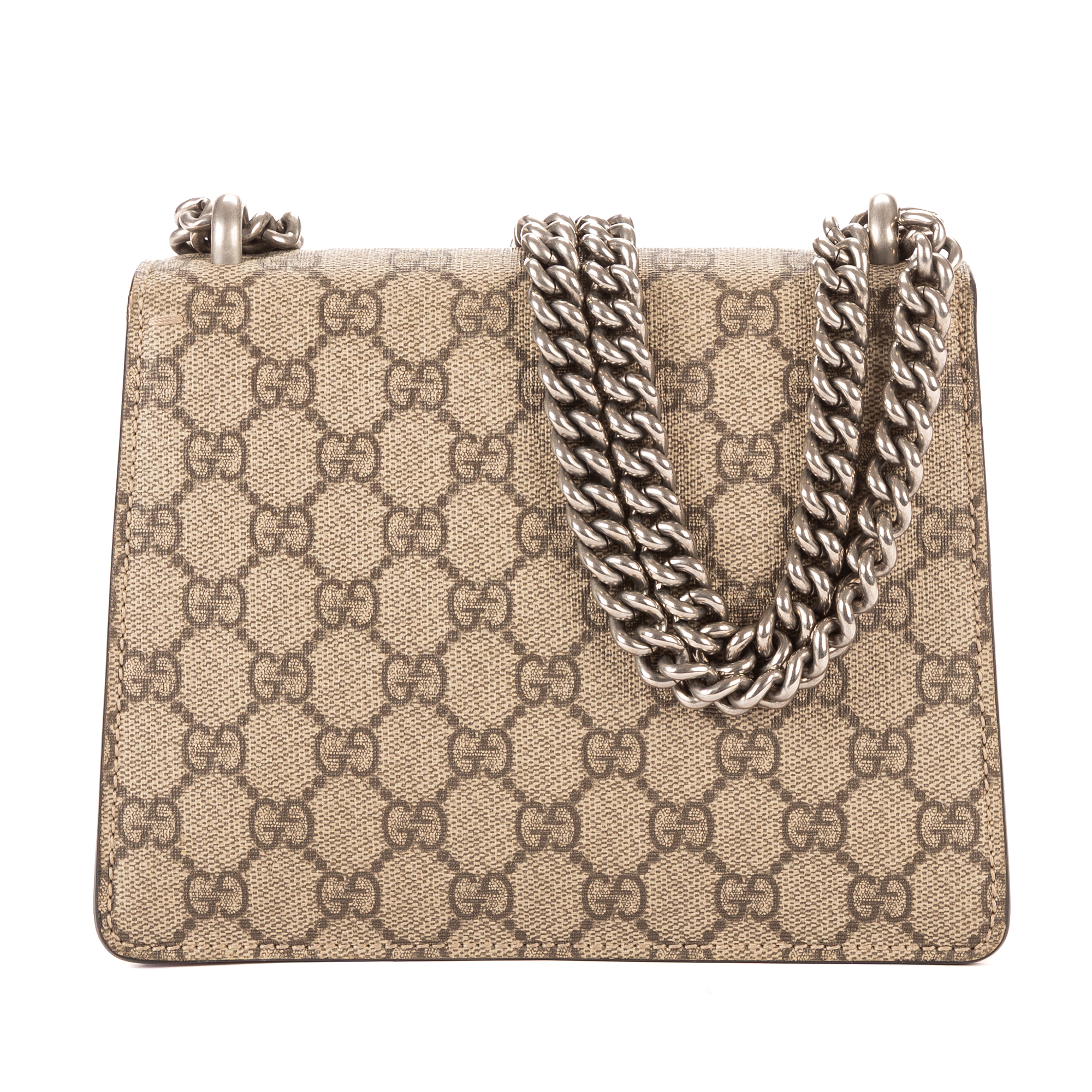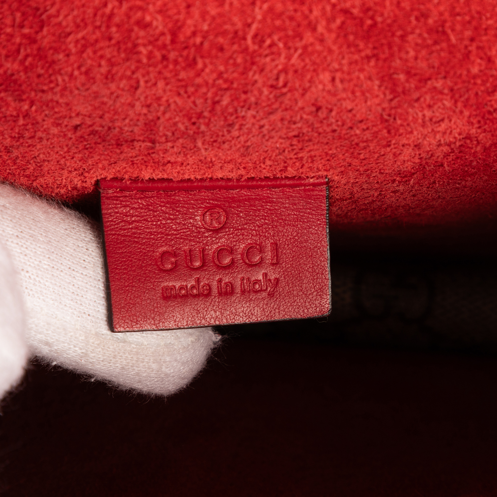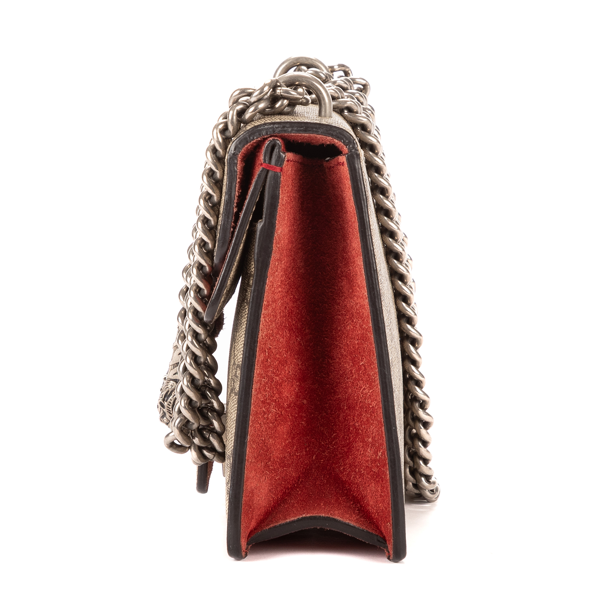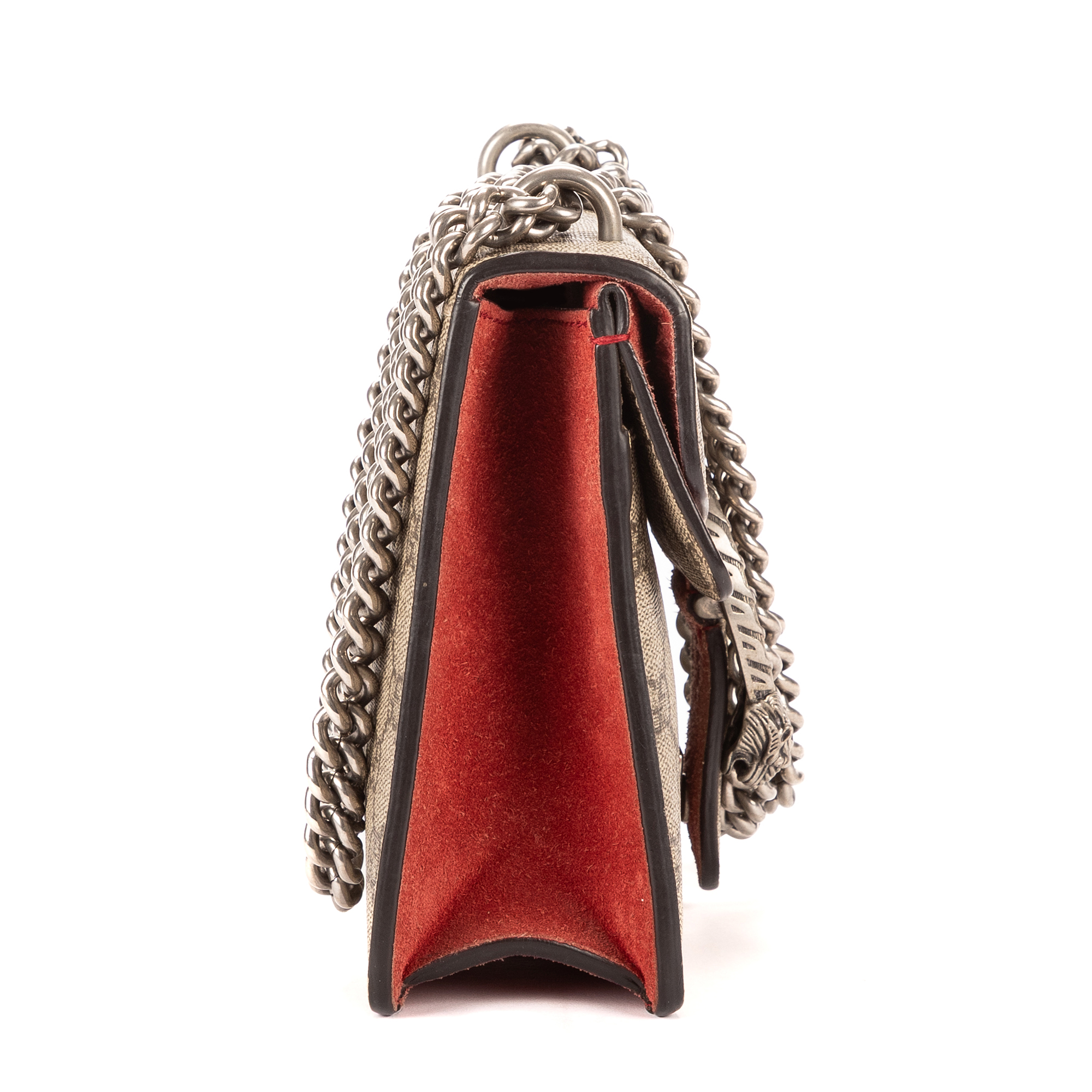 Gucci Shoulder Bag Dionysus Mini in Beige/Red Supreme Coated Canvas/Suede Leather and Silver hardware. The product is in Excellent Condition (A).
