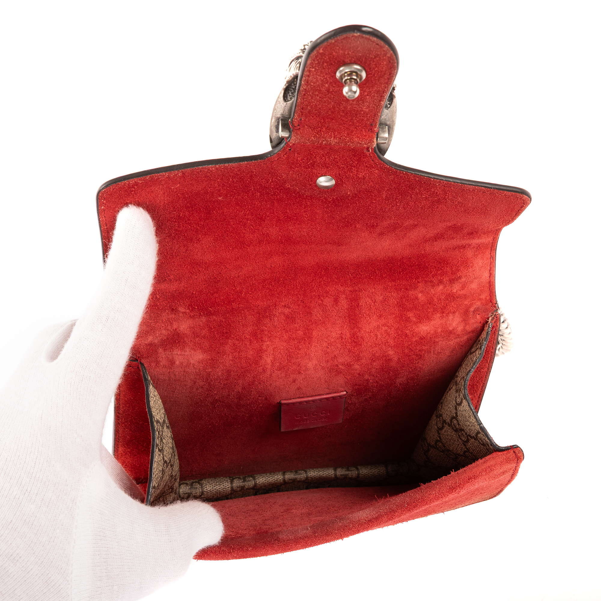 Description : Gucci Shoulder Bag Dionysus Mini in Beige/Red Supreme Coated Canvas/Suede Leather and Silver hardware. The product is in Excellent Condition (A). Dimensions: 20x15.5x5 cm SKU: EAH3390 Serial number: 421970-204991 Accessories Included: None Delivery: We have a 5 to 7 business days delivery policy, hassle-free and duties/tariffs included! BrandCo Paris finds rare and top condition items at great deals, they are worth your patience! Shop with confidence - All BrandCo Paris items are carefully selected and authenticated by our team of experts. All the items come with an authenticity certificate and packaging delivered by BrandCo Paris. Item Condition Grading Table N (Like New) AA (Perfect Condition) A (Excellent Condition) AB (Very Good Condition) B (Good/Fair)