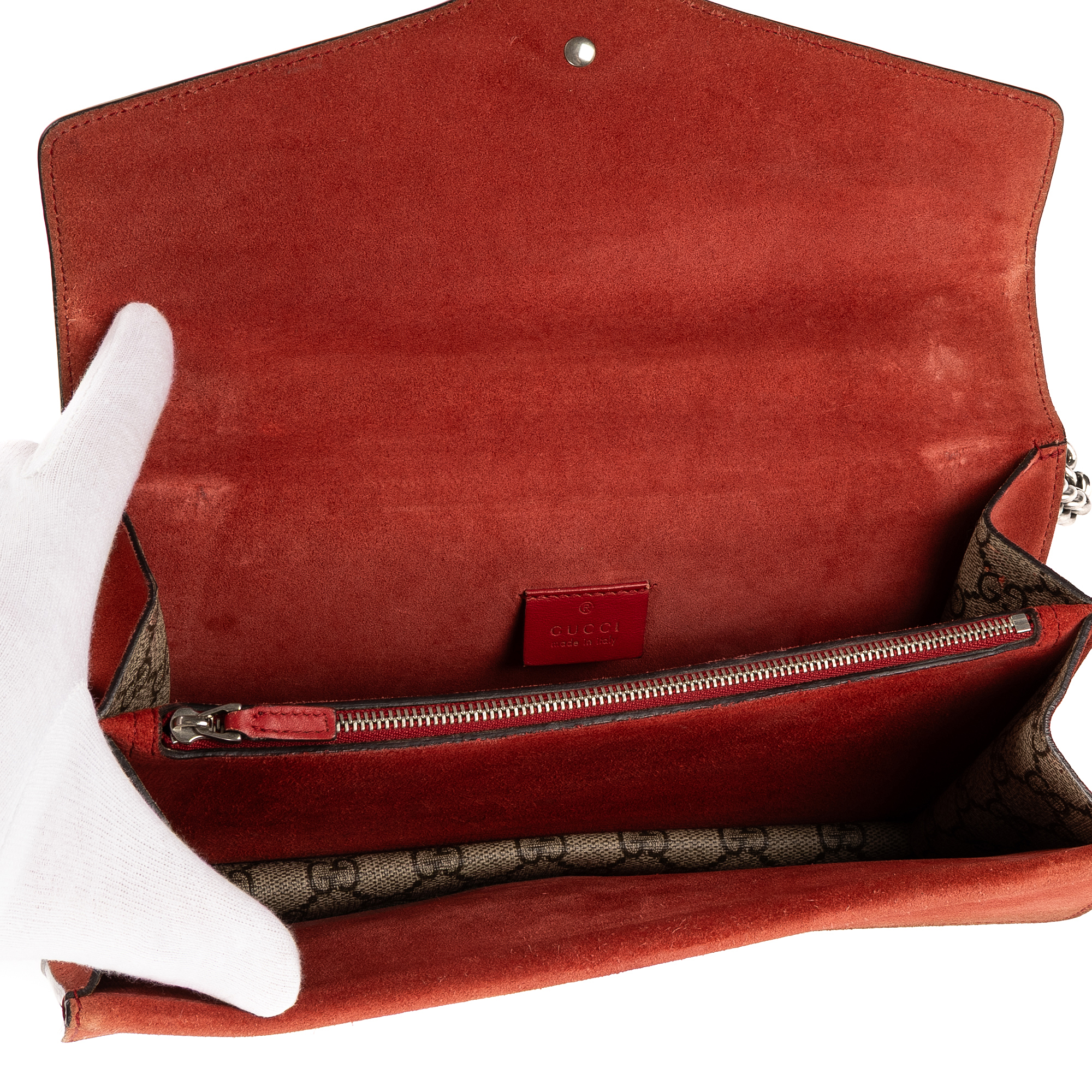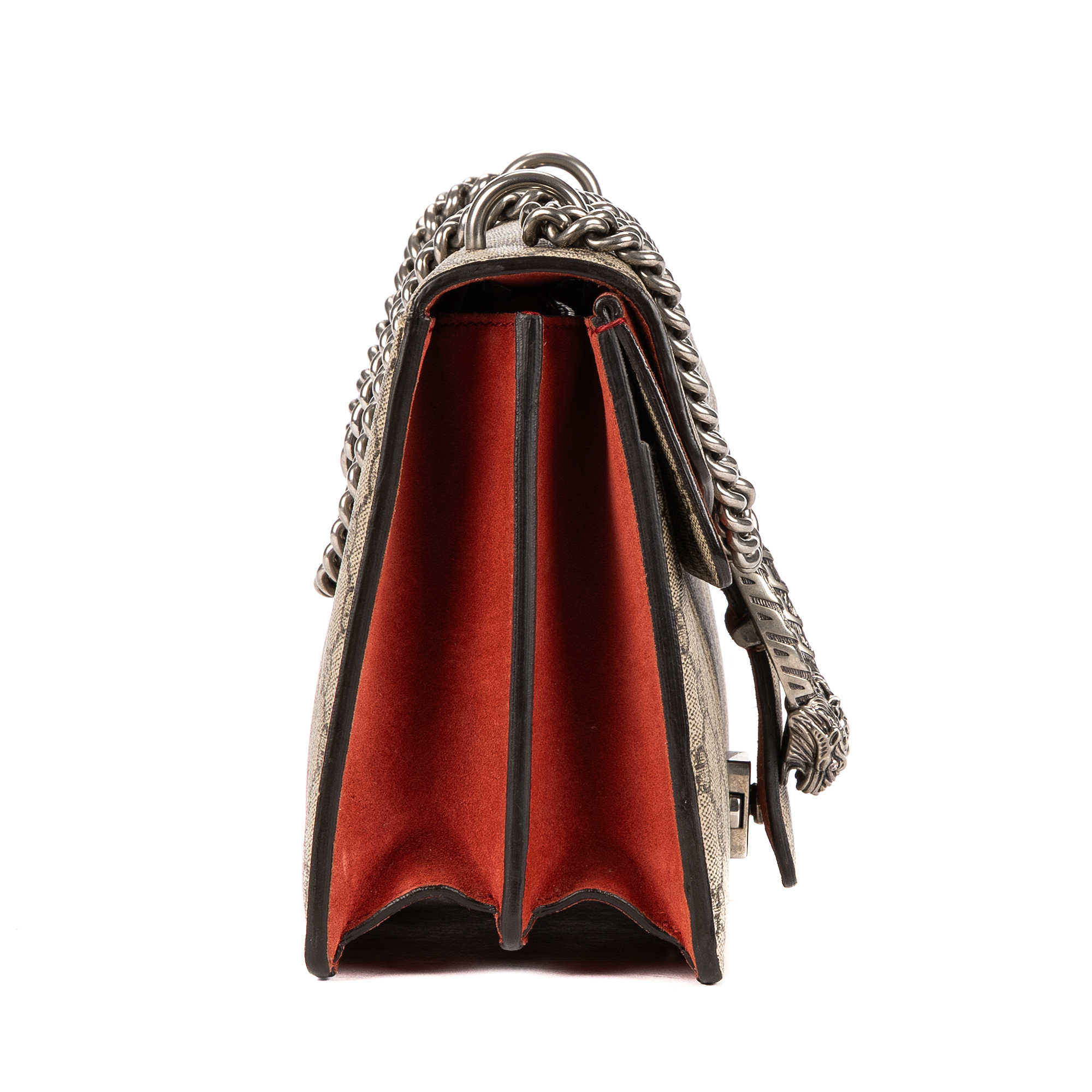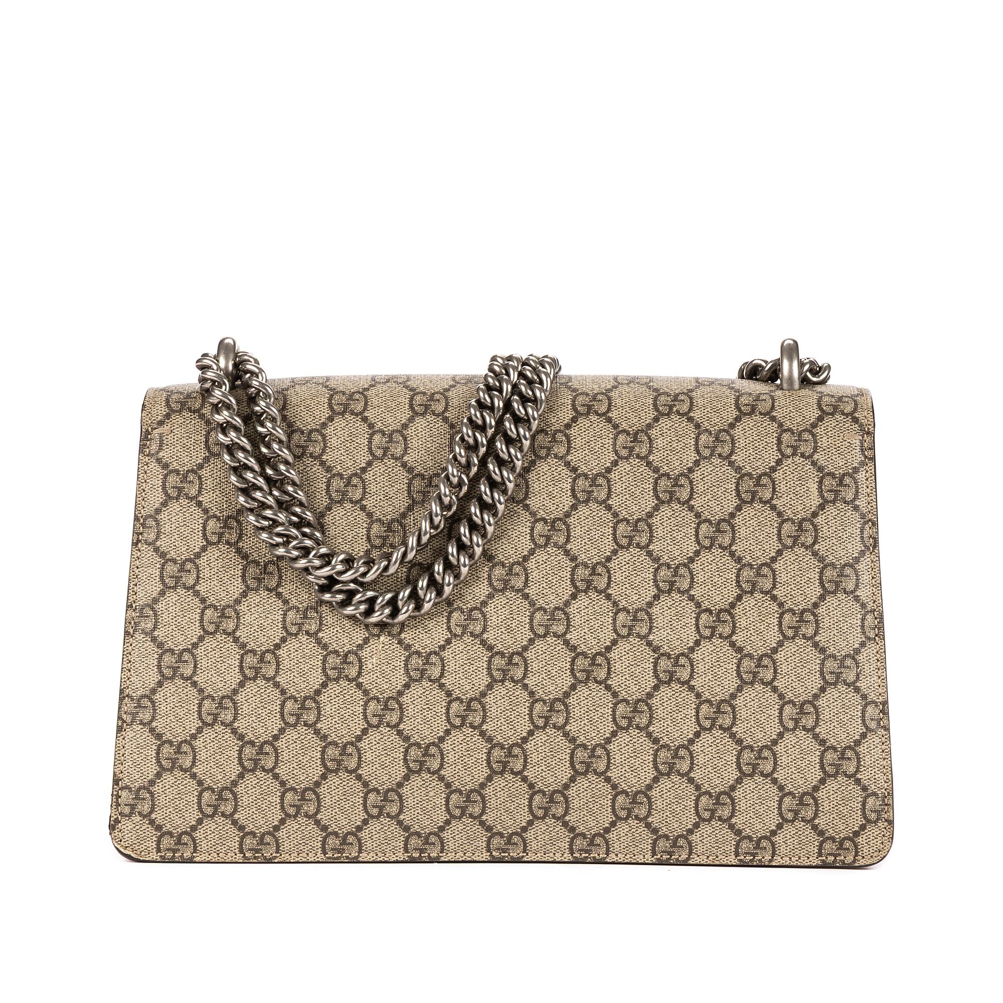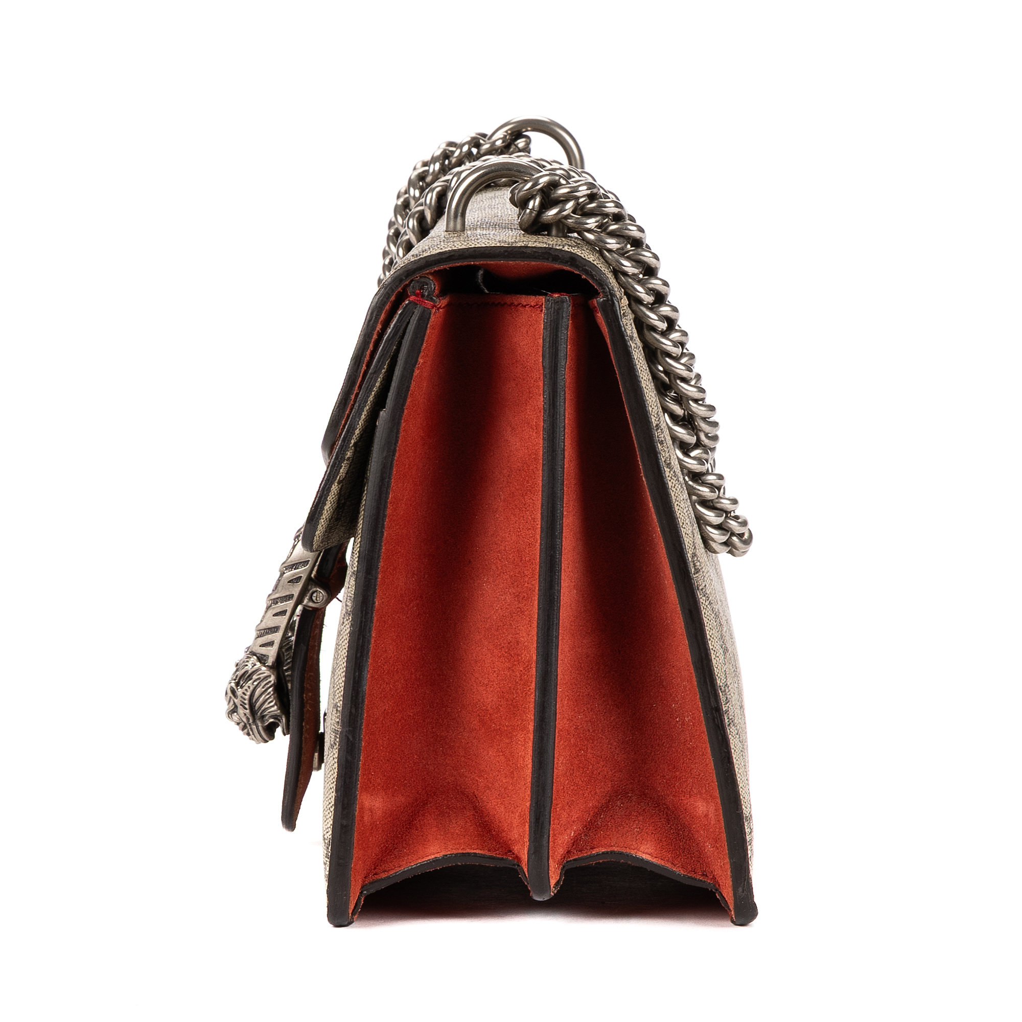 Description : Gucci Shoulder Bag Dionysus Small in Beige/Red Supreme Coated Canvas/Suede Leather and Silver hardware. The product is in Very Good Condition (AB). Dimensions: 27x16x6 cm SKU: EAH3111 Serial number: 400249-001998 Accessories Included: None Delivery: We have a 5 to 7 business days delivery policy, hassle-free and duties/tariffs included! BrandCo Paris finds rare and top condition items at great deals, they are worth your patience! Shop with confidence - All BrandCo Paris items are carefully selected and authenticated by our team of experts. All the items come with an authenticity certificate and packaging delivered by BrandCo Paris. Item Condition Grading Table N (Like New) AA (Perfect Condition) A (Excellent Condition) AB (Very Good Condition) B (Good/Fair)