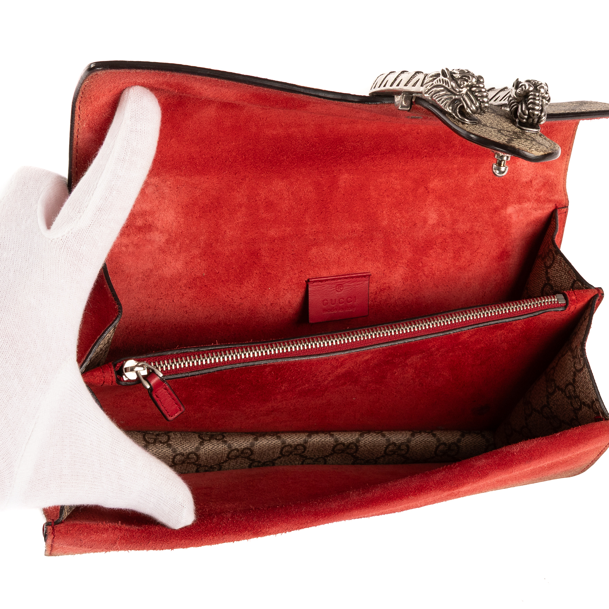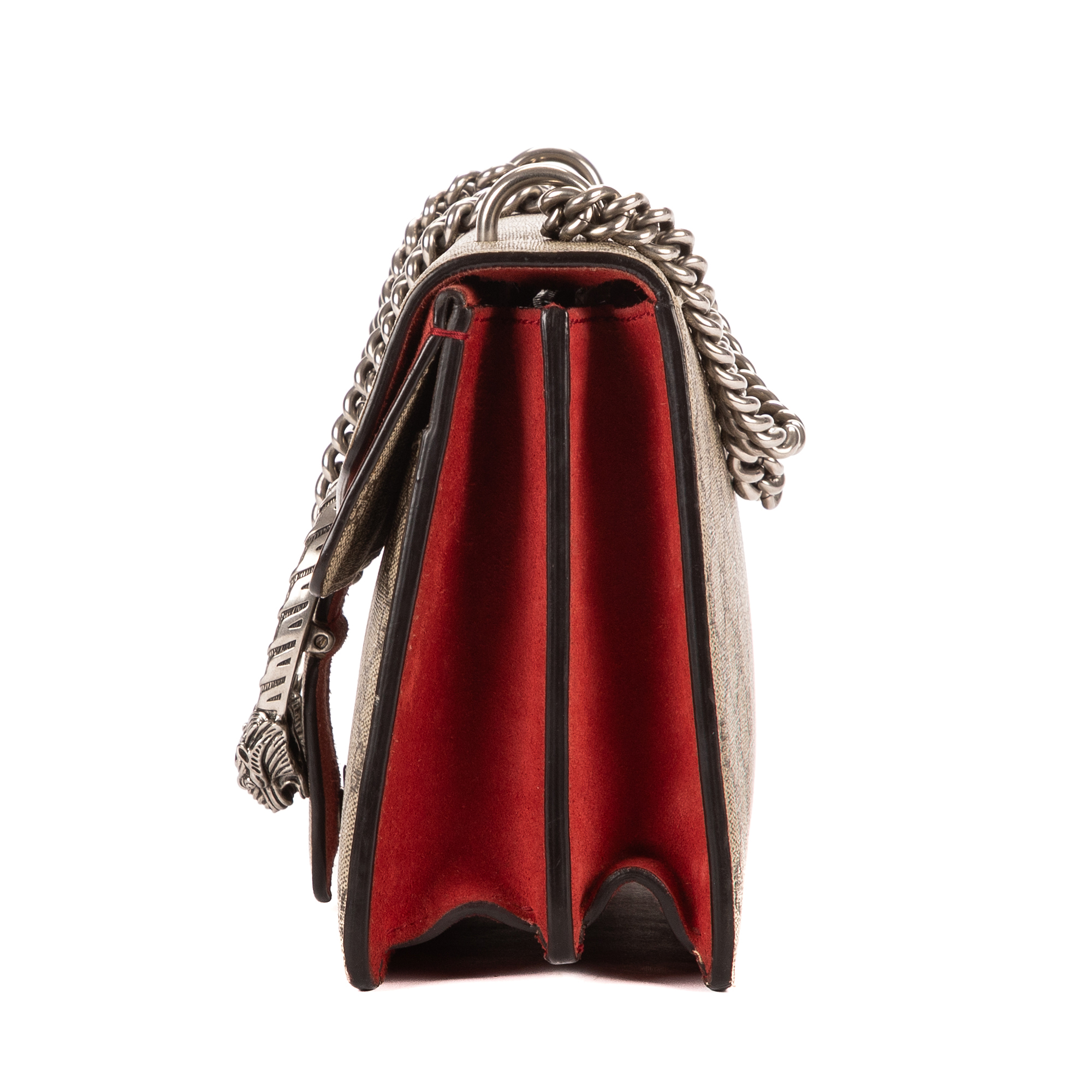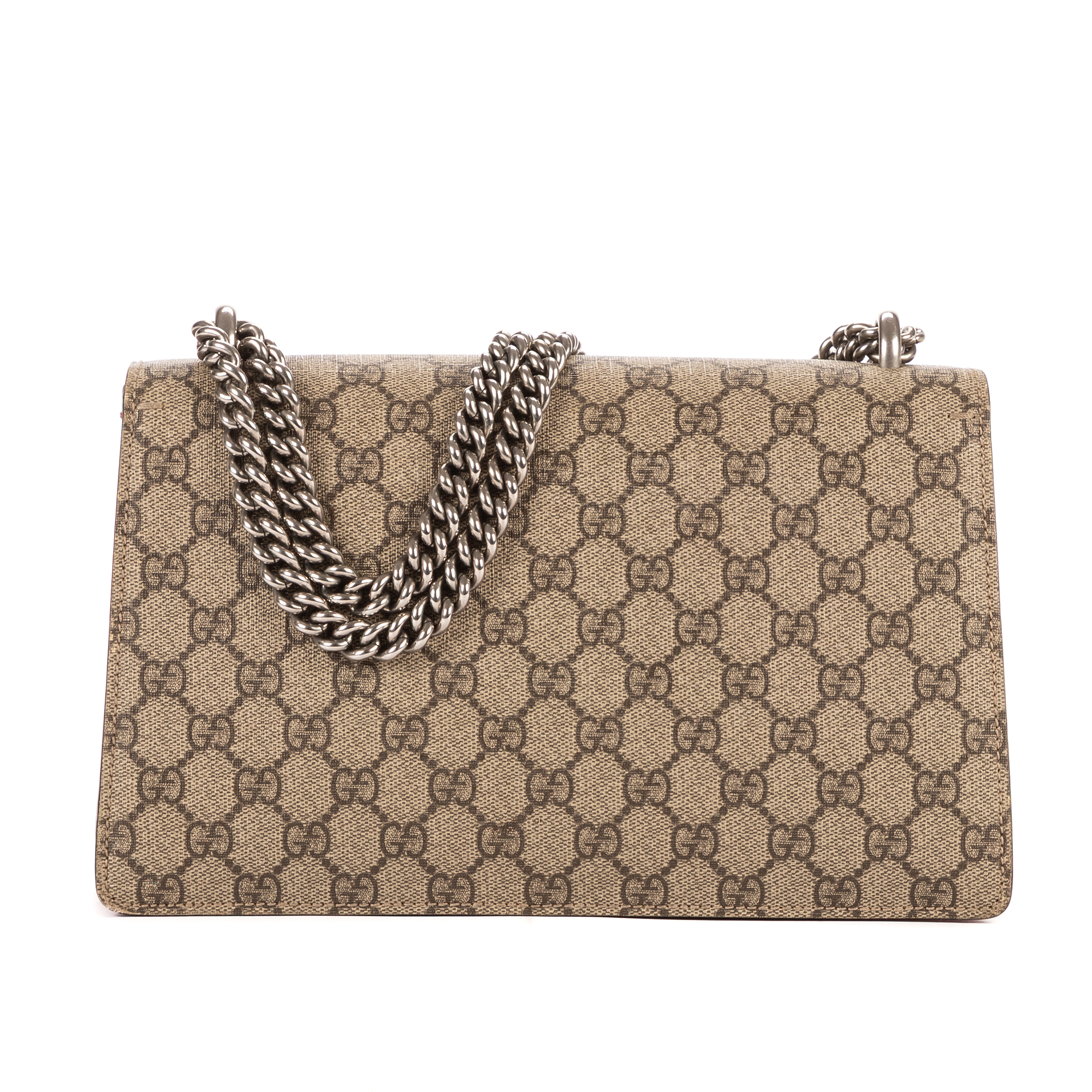 Description : Gucci Shoulder Bag Dionysus Small in Beige/Red Supreme Coated Canvas/Suede Leather and Silver hardware. The product is in Excellent Condition (A). Dimensions: 27x16x6 cm SKU: EAH3131 Serial number: 400249-520981 Accessories Included: None Delivery: We have a 5 to 7 business days delivery policy, hassle-free and duties/tariffs included! BrandCo Paris finds rare and top condition items at great deals, they are worth your patience! Shop with confidence - All BrandCo Paris items are carefully selected and authenticated by our team of experts. All the items come with an authenticity certificate and packaging delivered by BrandCo Paris. Item Condition Grading Table N (Like New) AA (Perfect Condition) A (Excellent Condition) AB (Very Good Condition) B (Good/Fair)