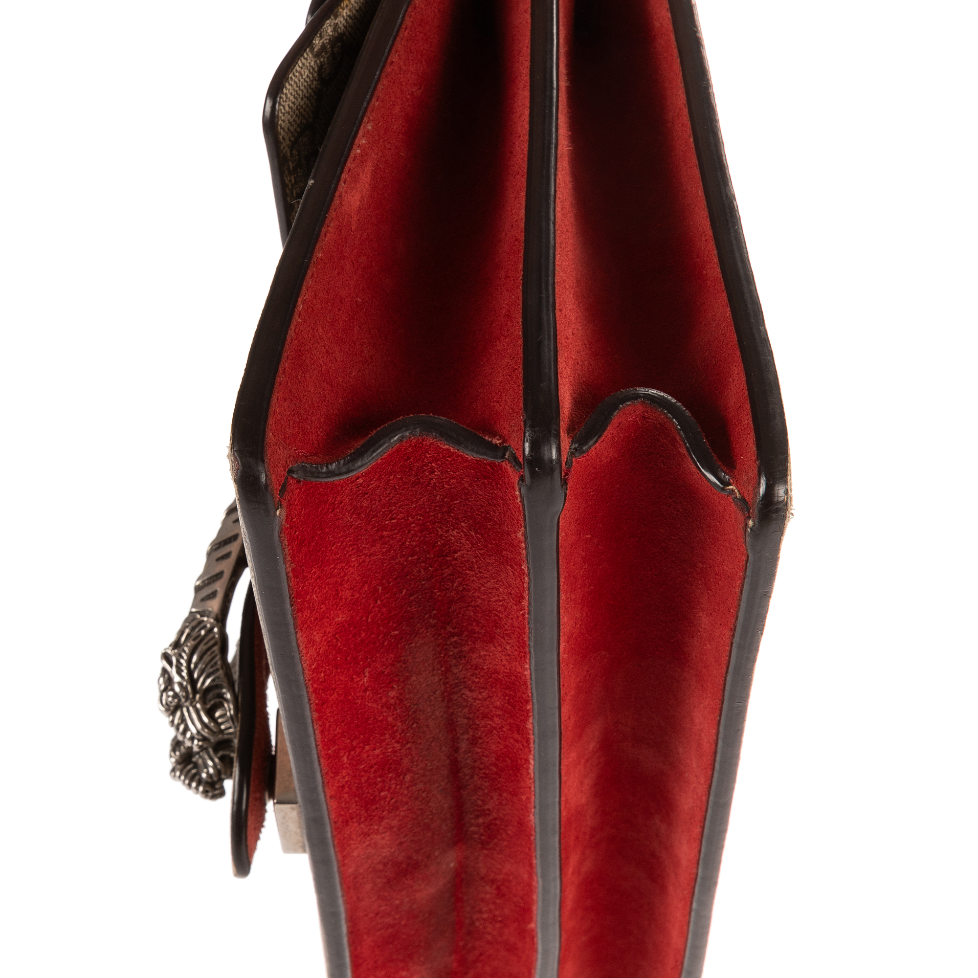 Gucci Shoulder Bag Dionysus Small in Beige/Red Supreme Coated Canvas/Suede Leather and Silver hardware. The product is in Excellent Condition (A).