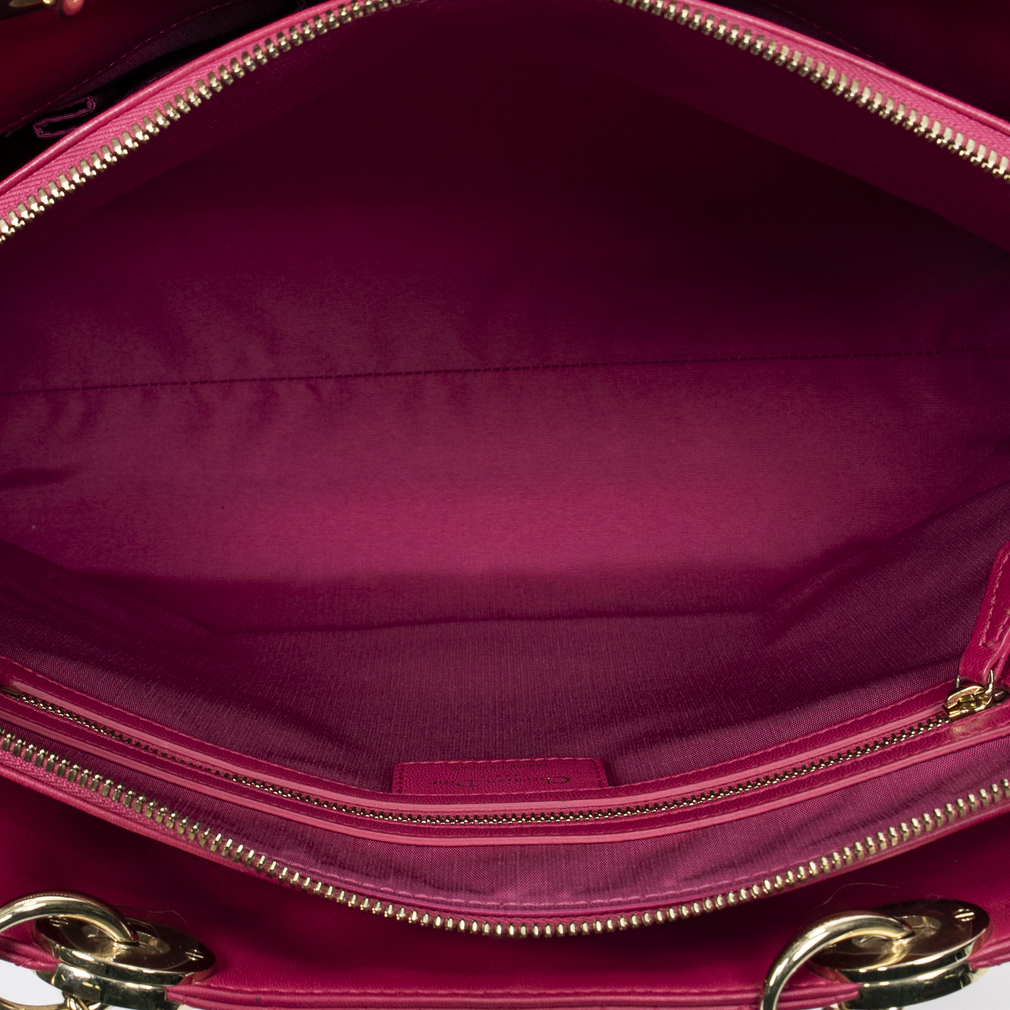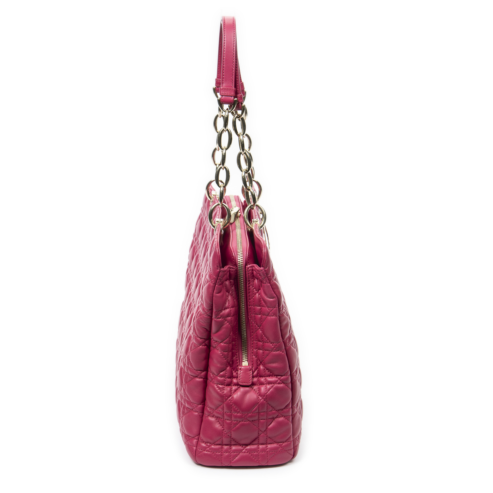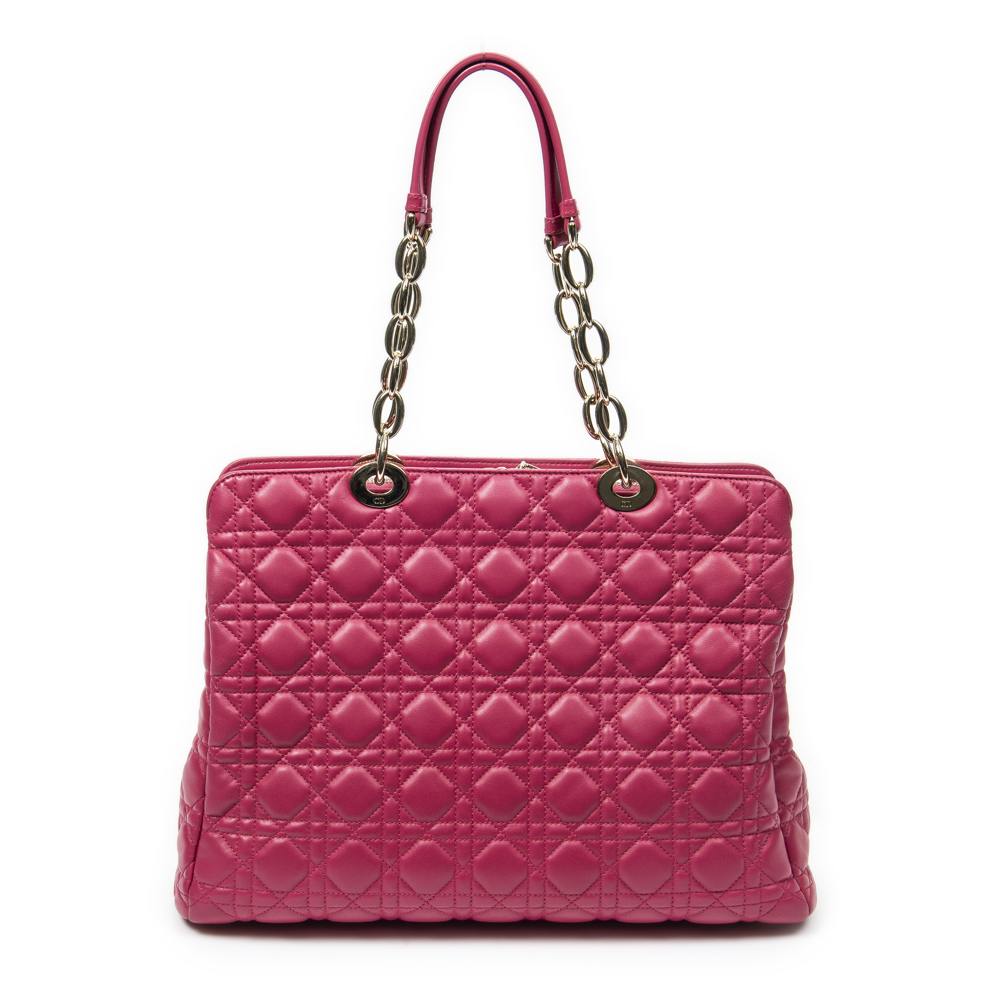 Dior Shoulder Bag Dior Soft Shopping Tote in Fuchsia Pink Quilted Lambskin Leather and Gold hardware. The product is in Perfect Condition (AA).