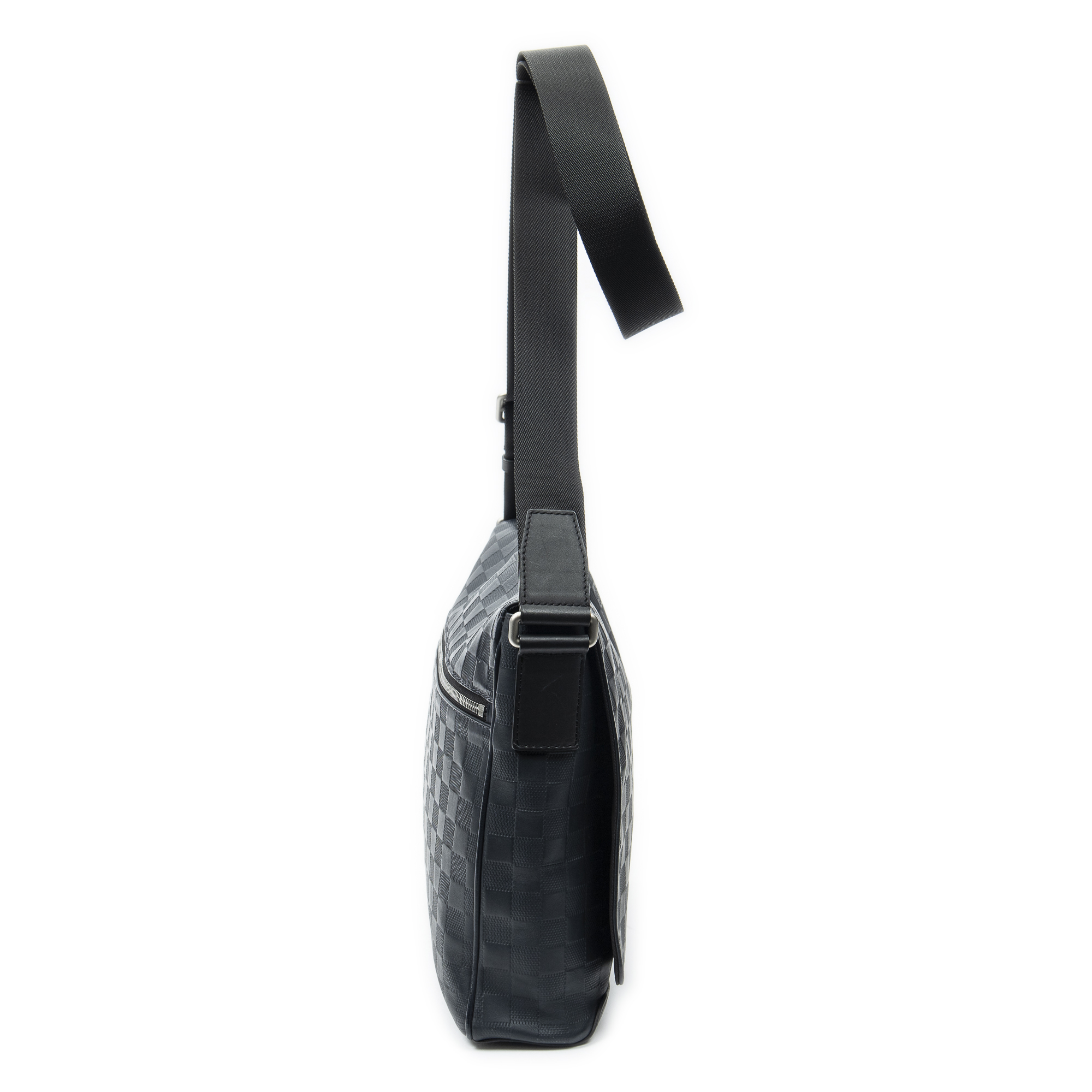 Louis Vuitton Shoulder Bag District MM in Navy Damier Infini and Silver Brass hardware. The product is in Excellent Condition (A).