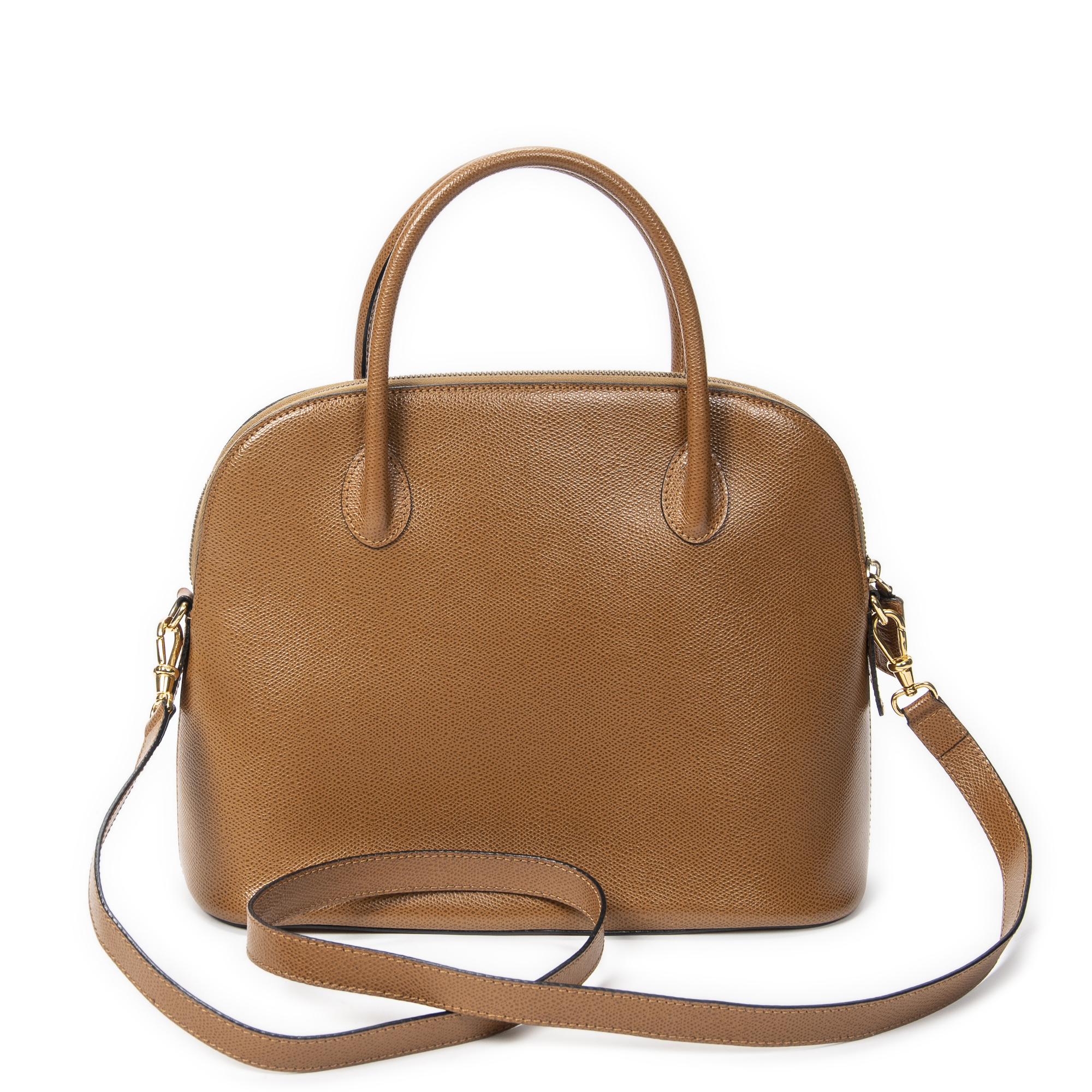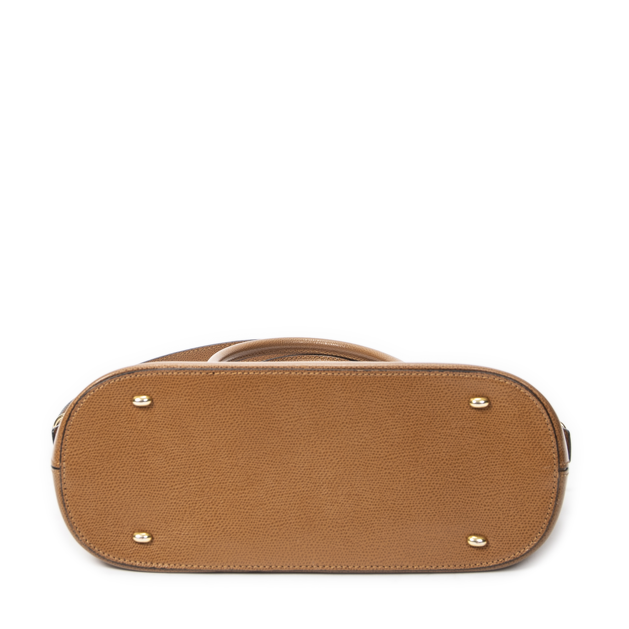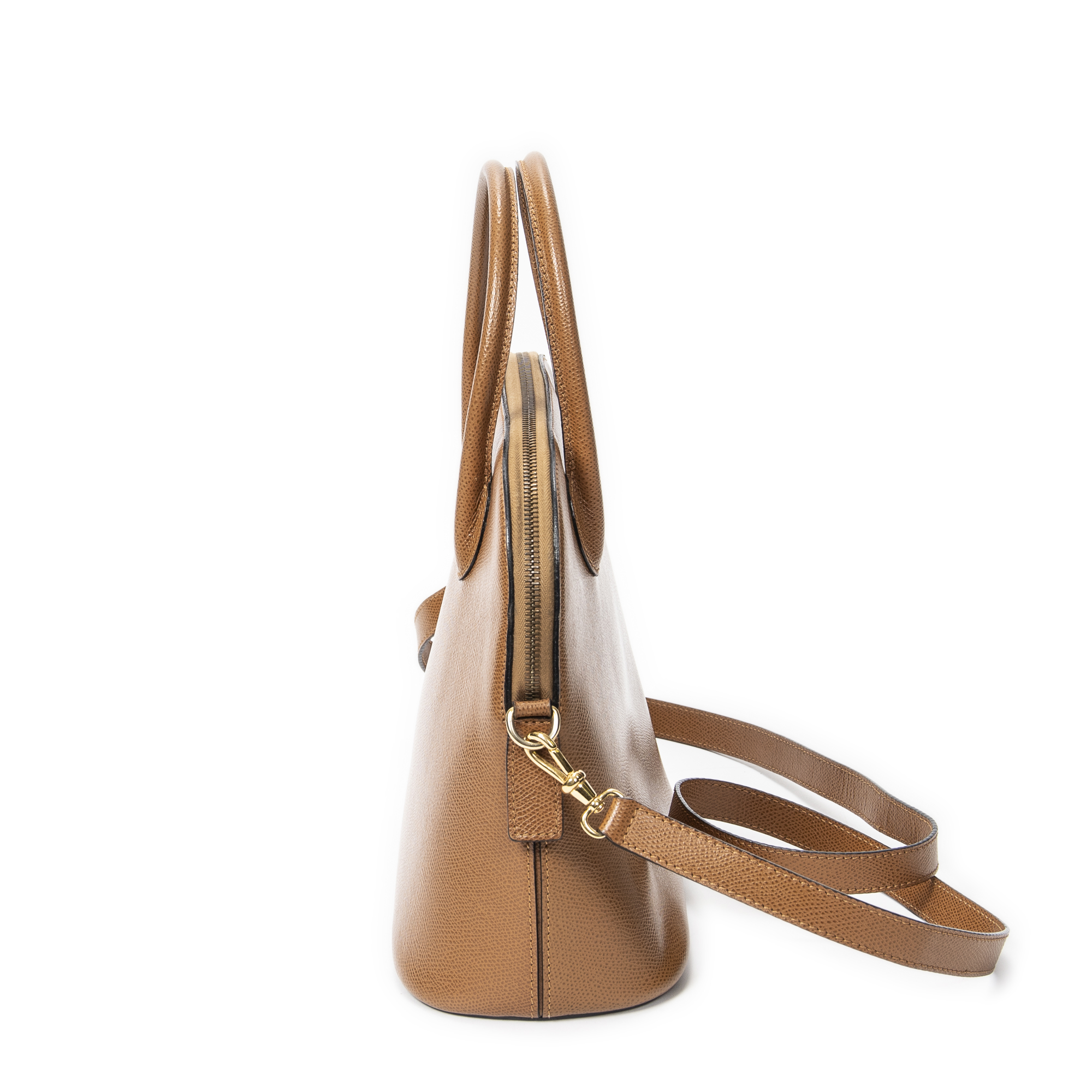 Celine Shoulder Bag Dome Top Handle in Tan Grained Leather and Gold hardware. The product is in Excellent Condition (A).