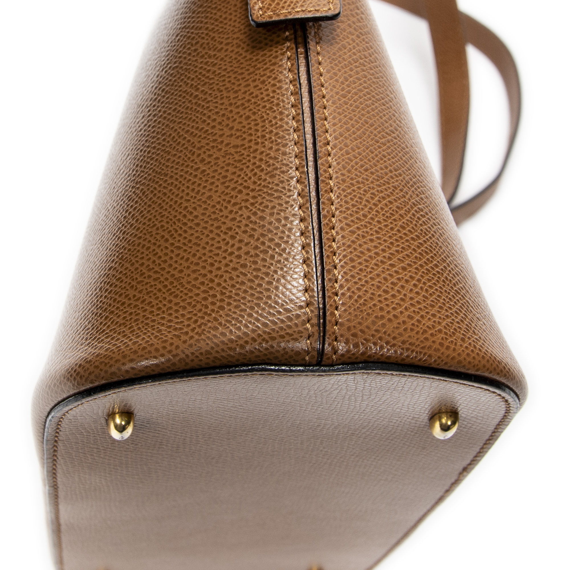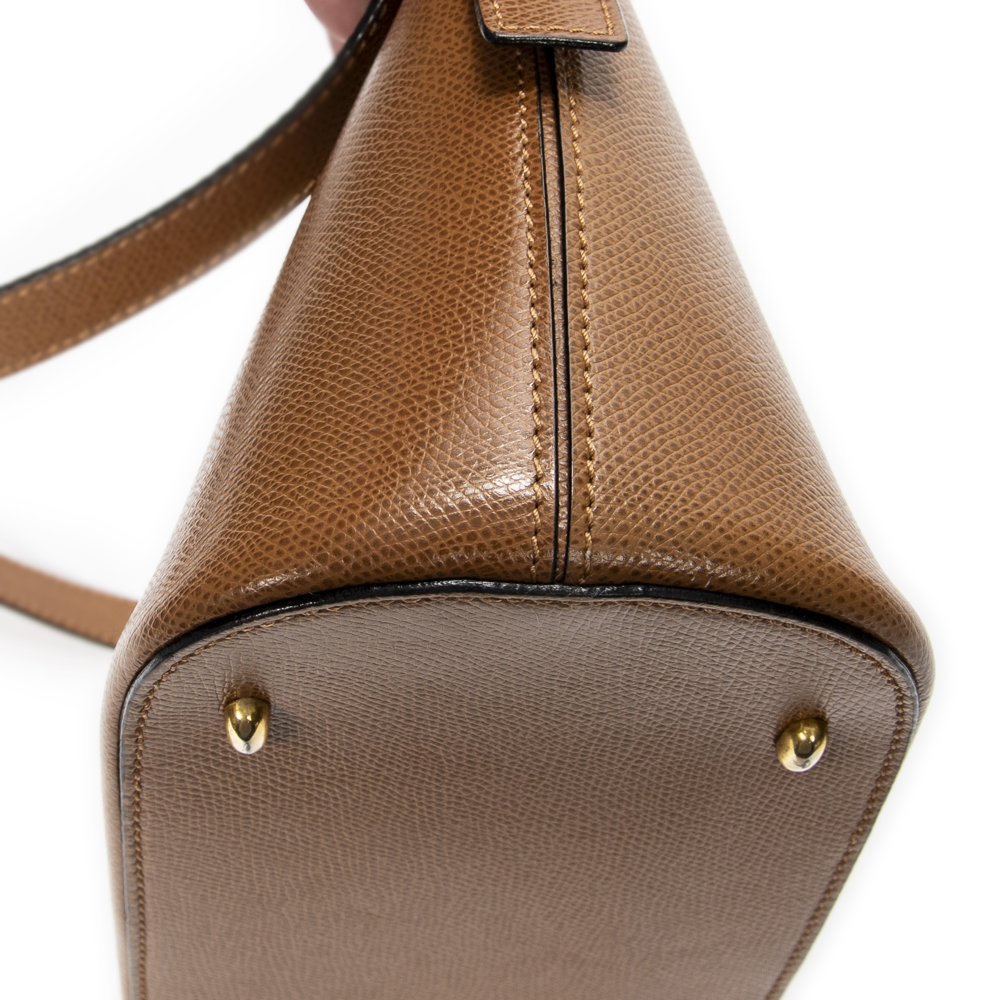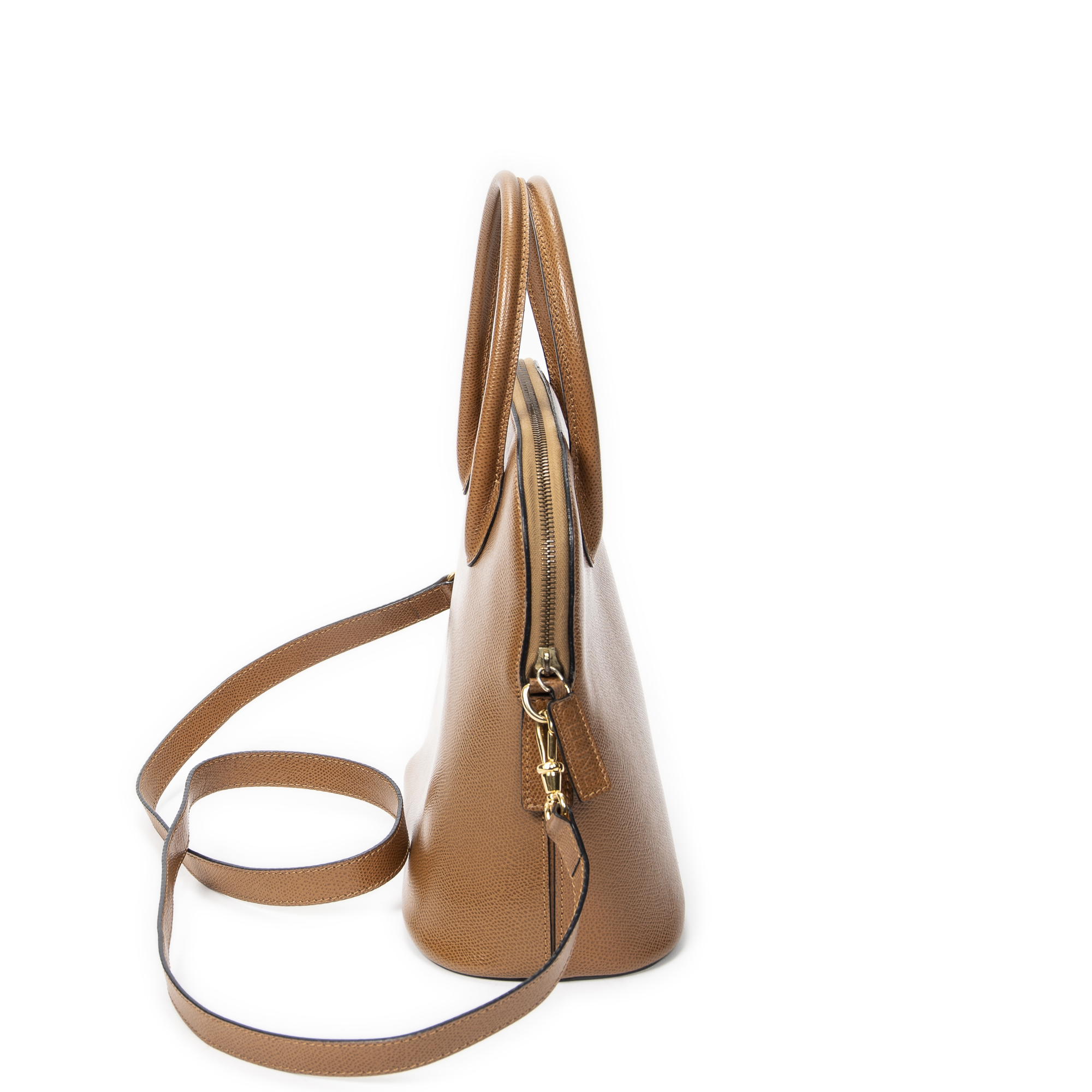 Celine Shoulder Bag Dome Top Handle in Tan Grained Leather and Gold hardware. The product is in Excellent Condition (A).