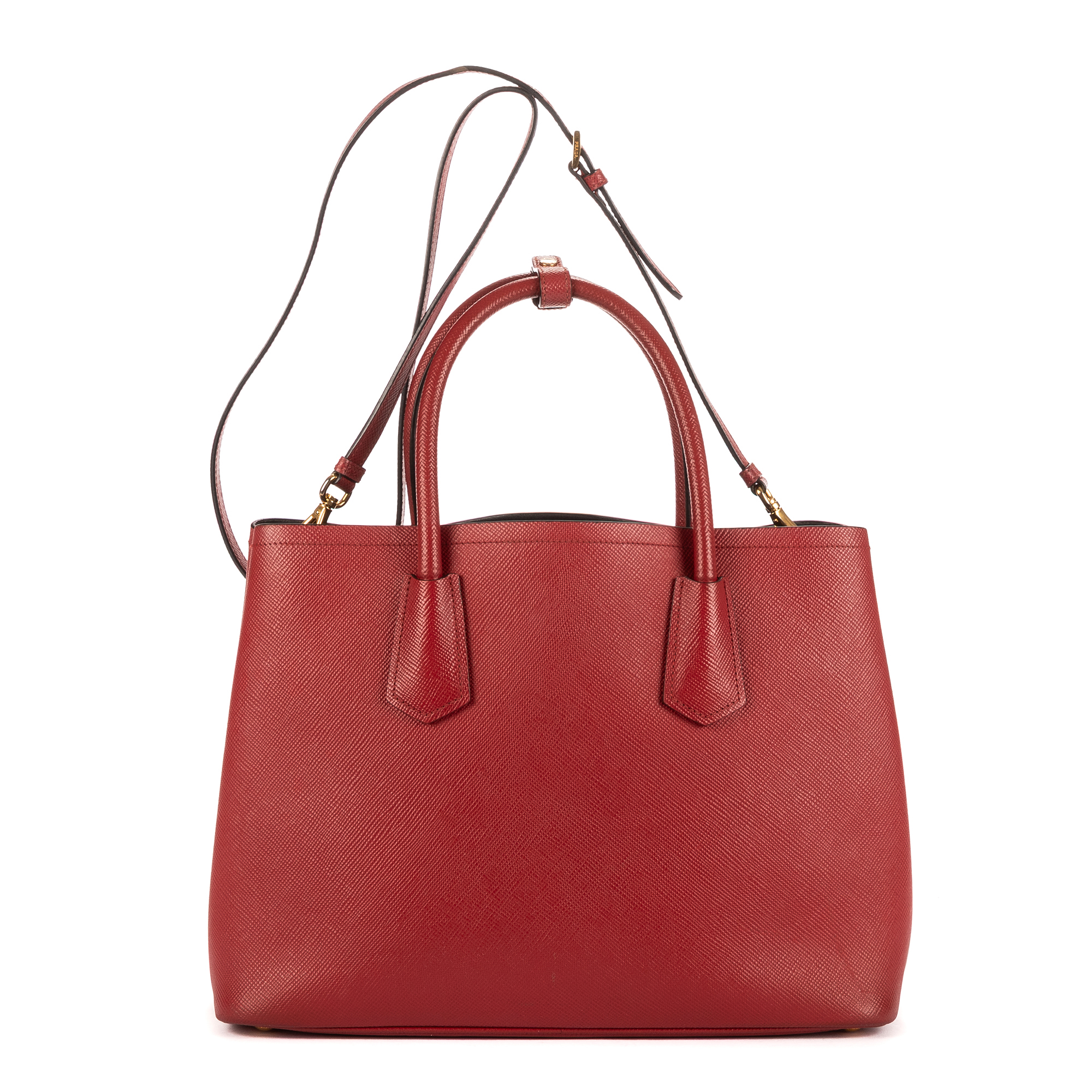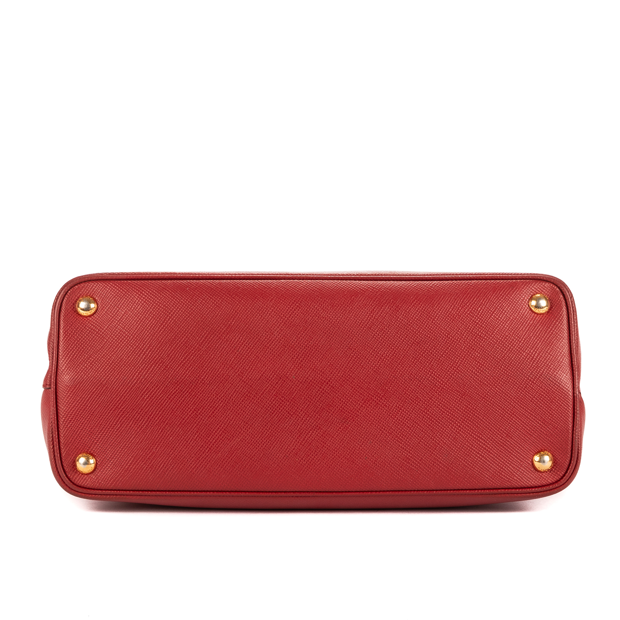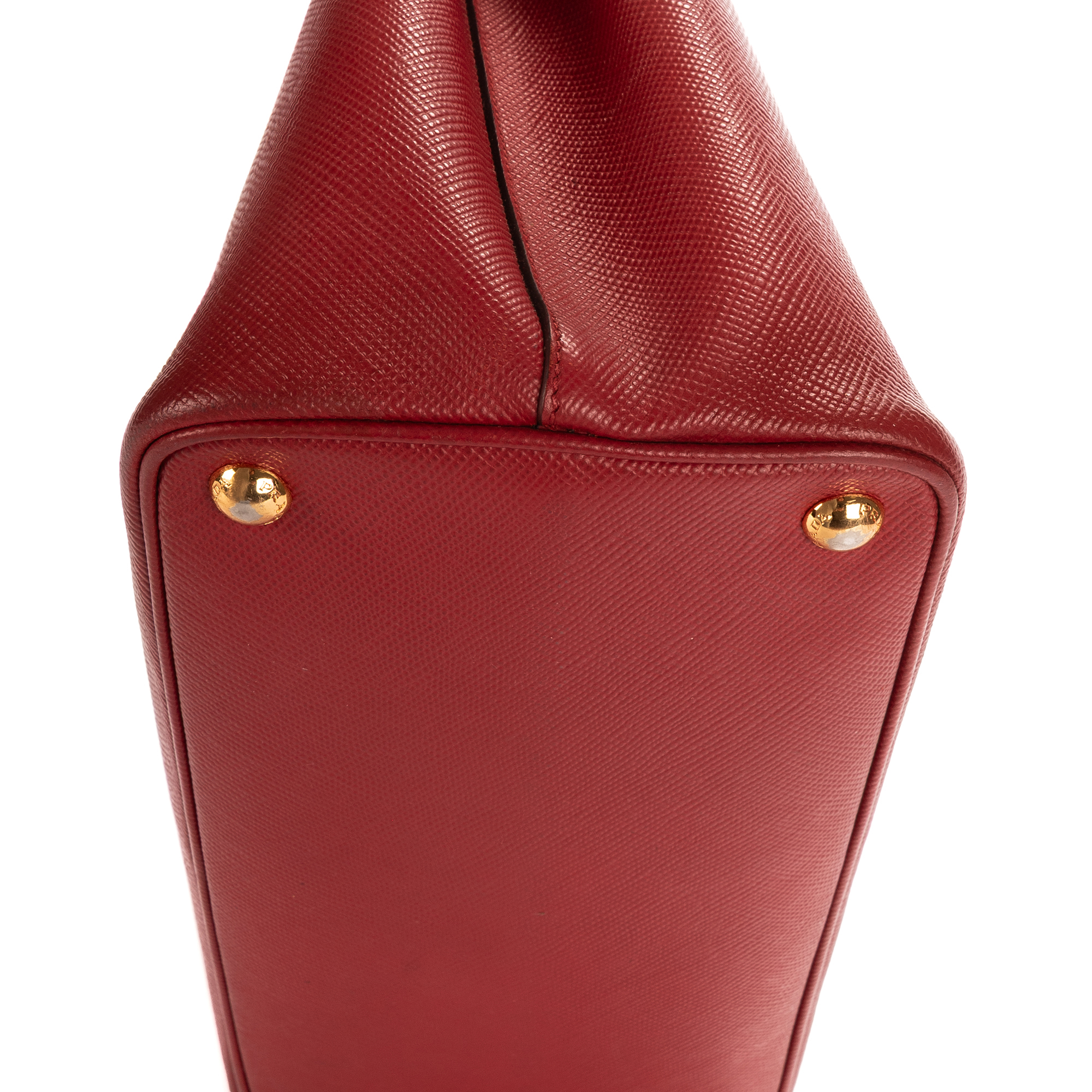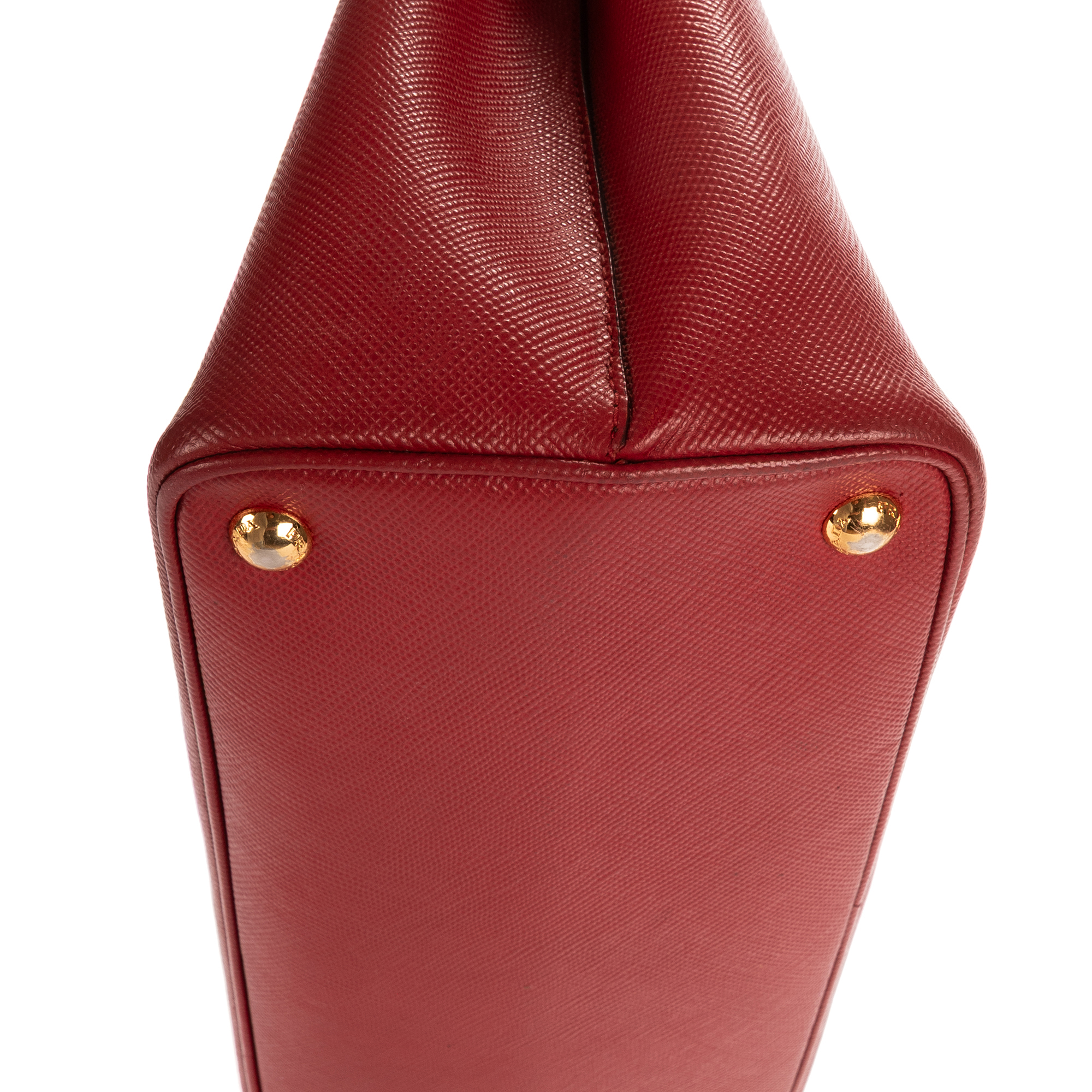 Prada Shoulder Bag Double Bag in Red Saffiano and Gold hardware. The product is in Perfect Condition (AA).