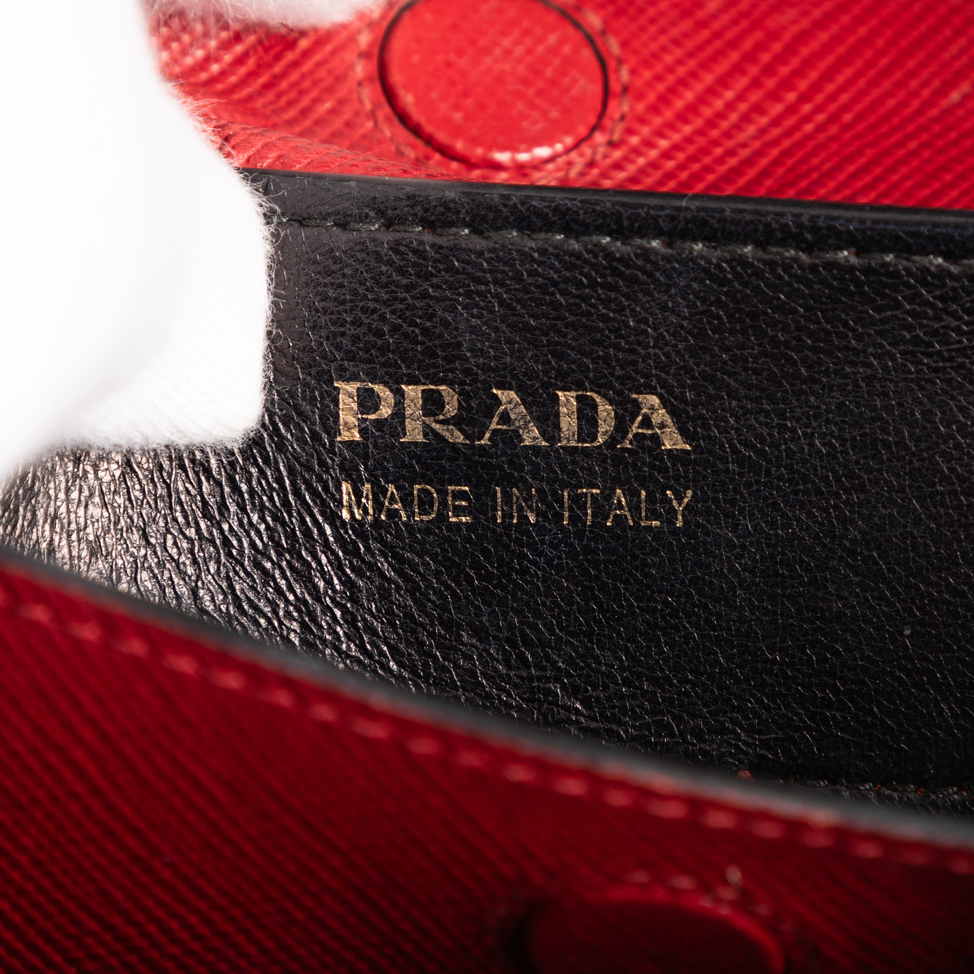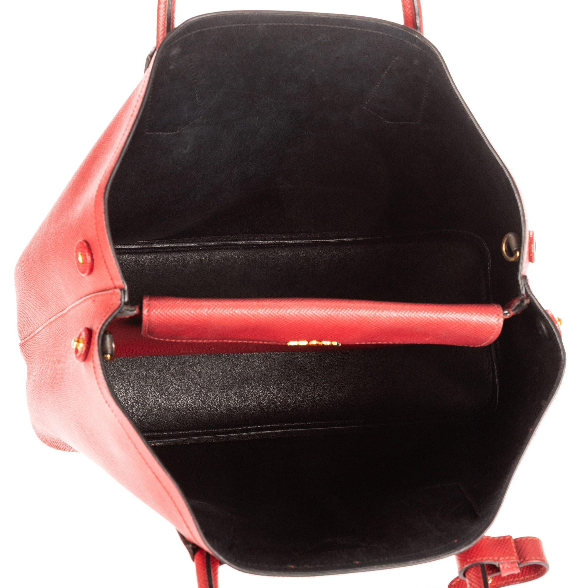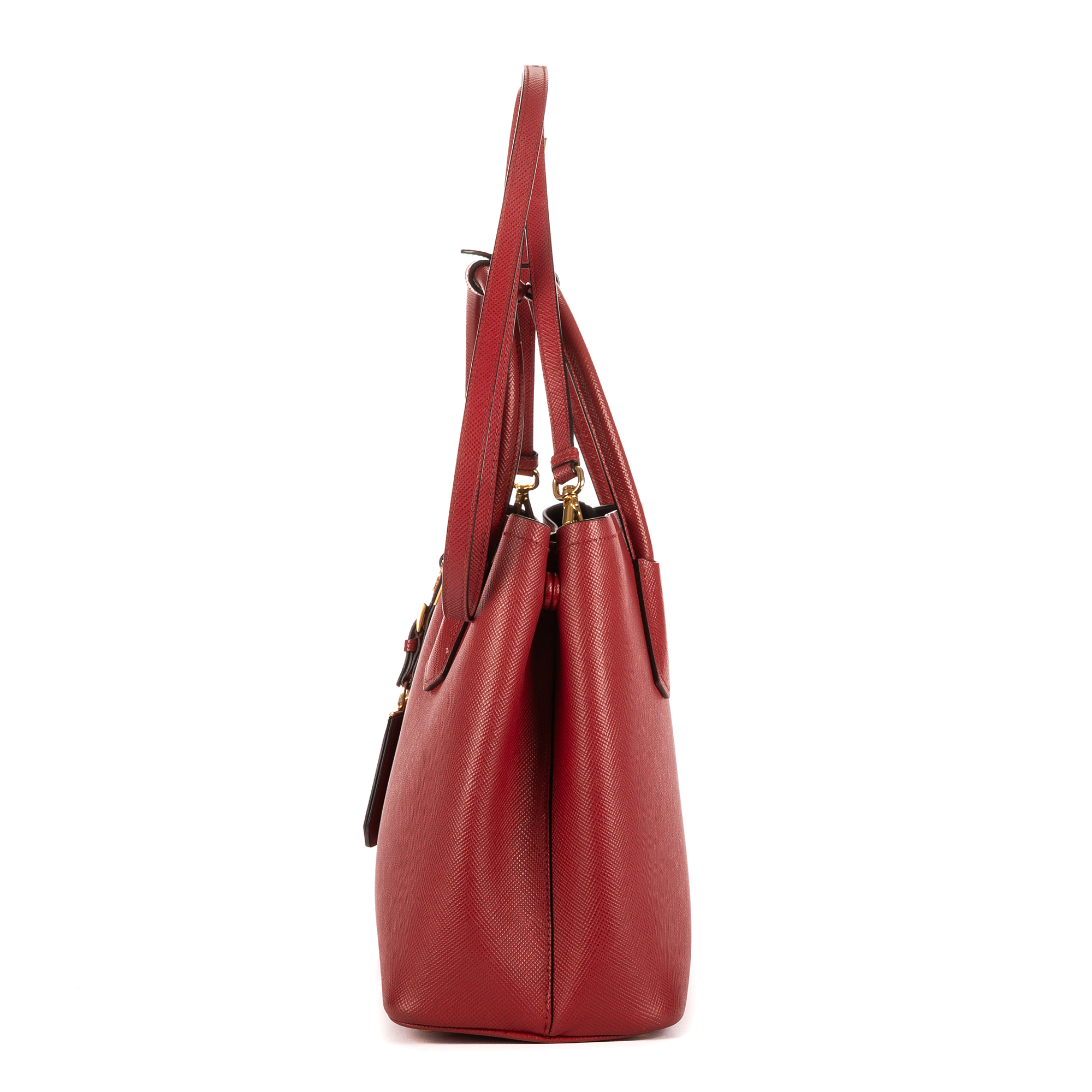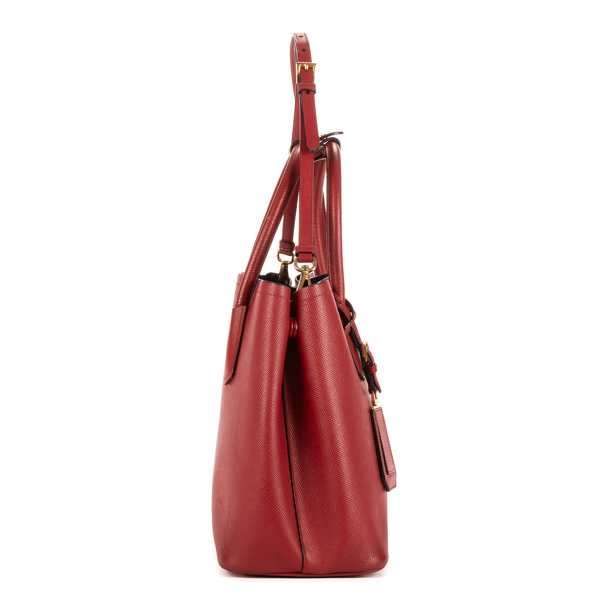 Prada Shoulder Bag Double Bag in Red Saffiano and Gold hardware. The product is in Perfect Condition (AA).