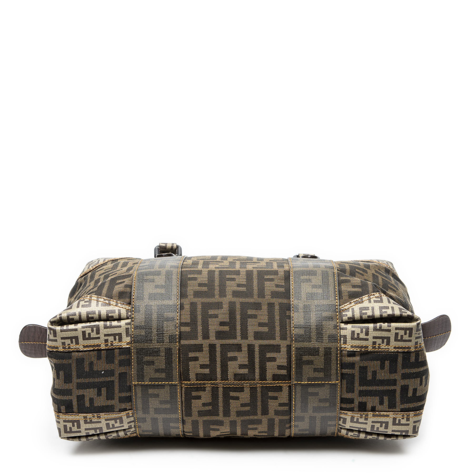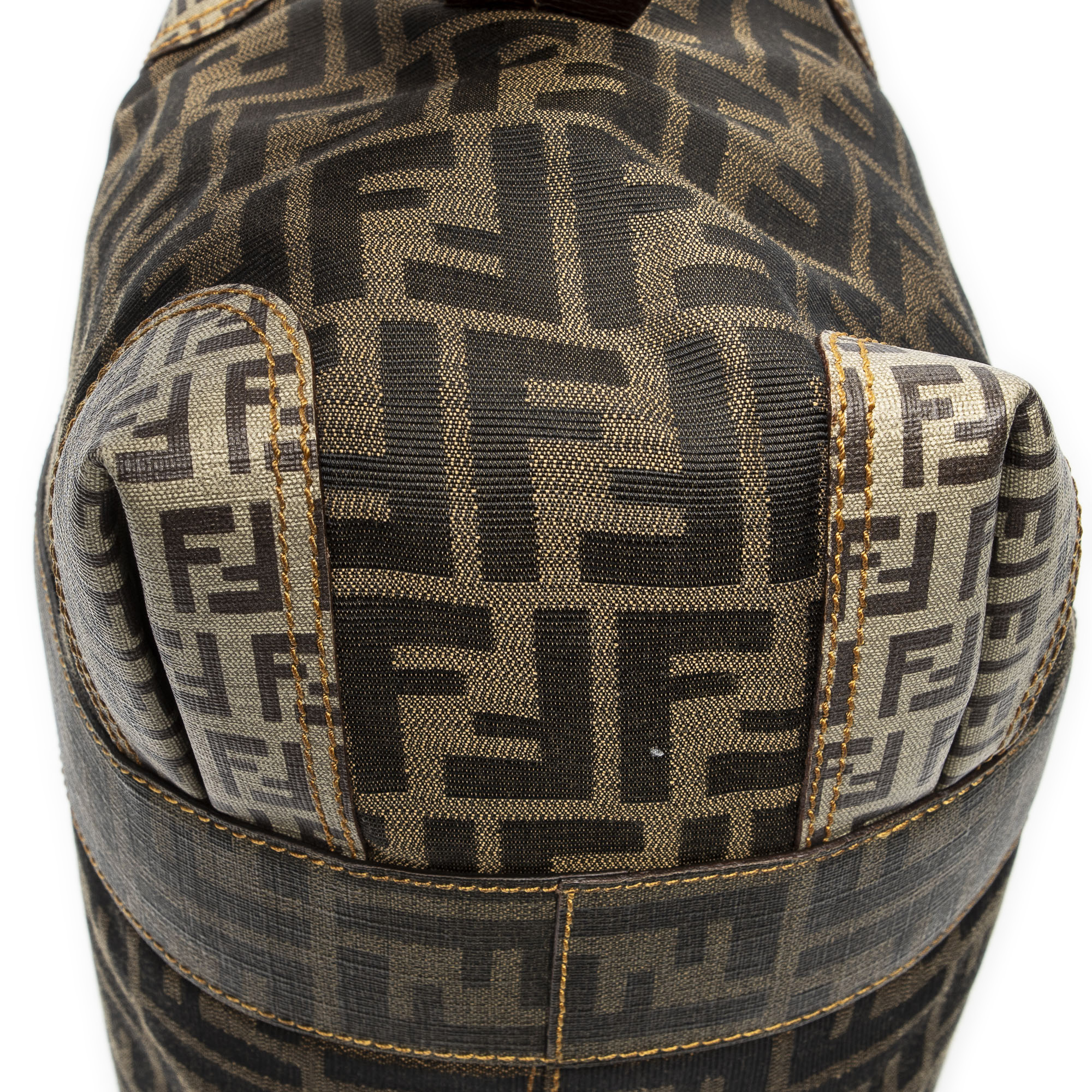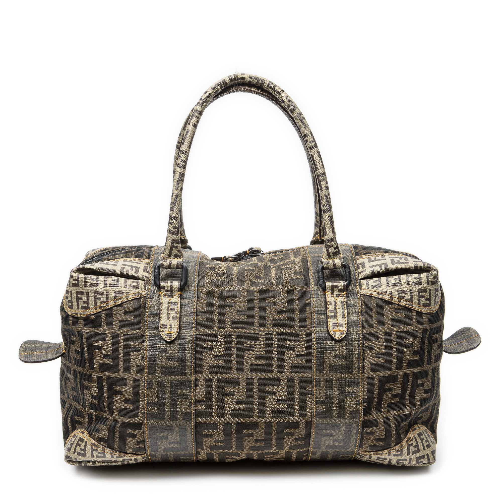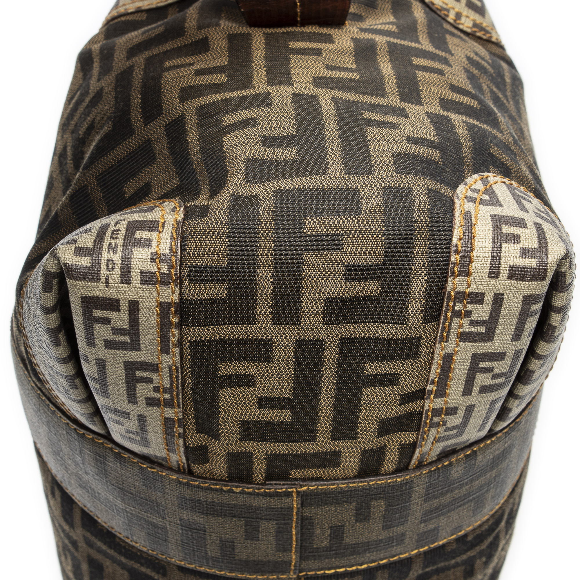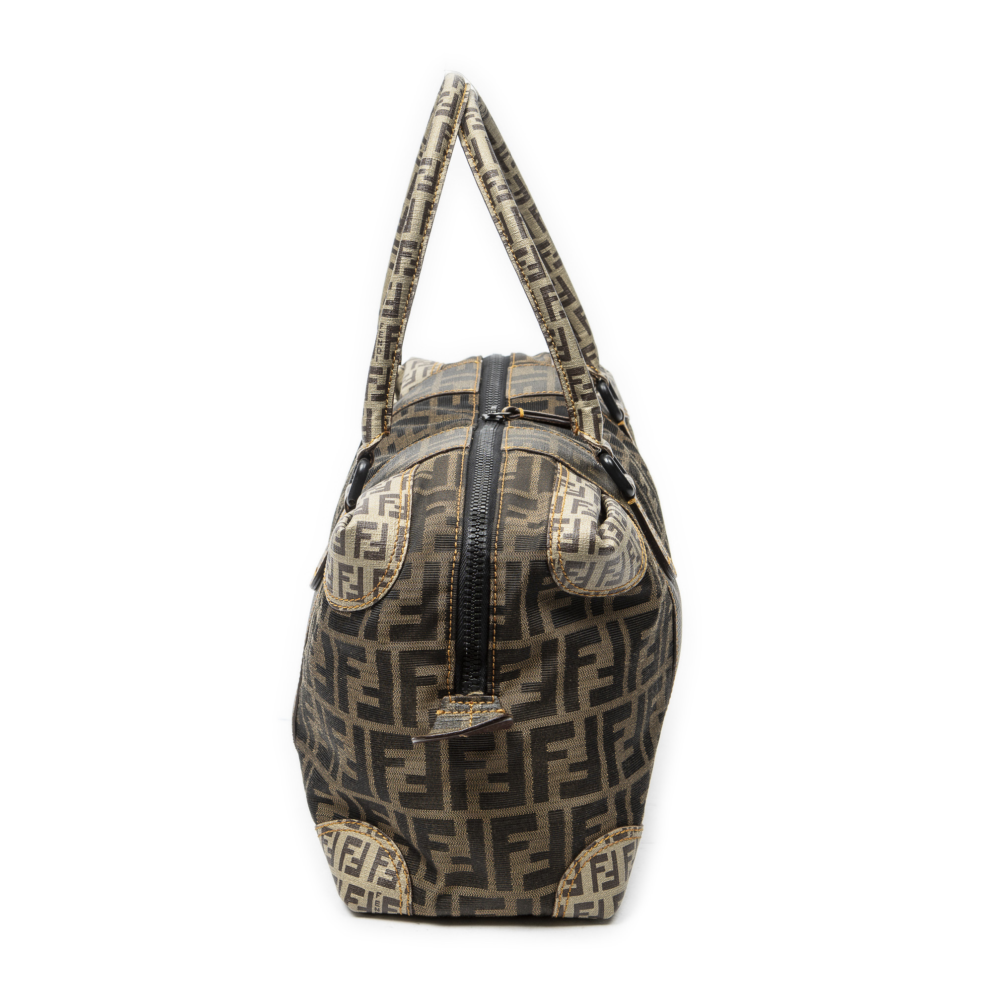 Fendi Shoulder Bag Double Zip Bowler in Brown/Black Zucca Canvas and Black Metal hardware. The product is in Excellent Condition (A).