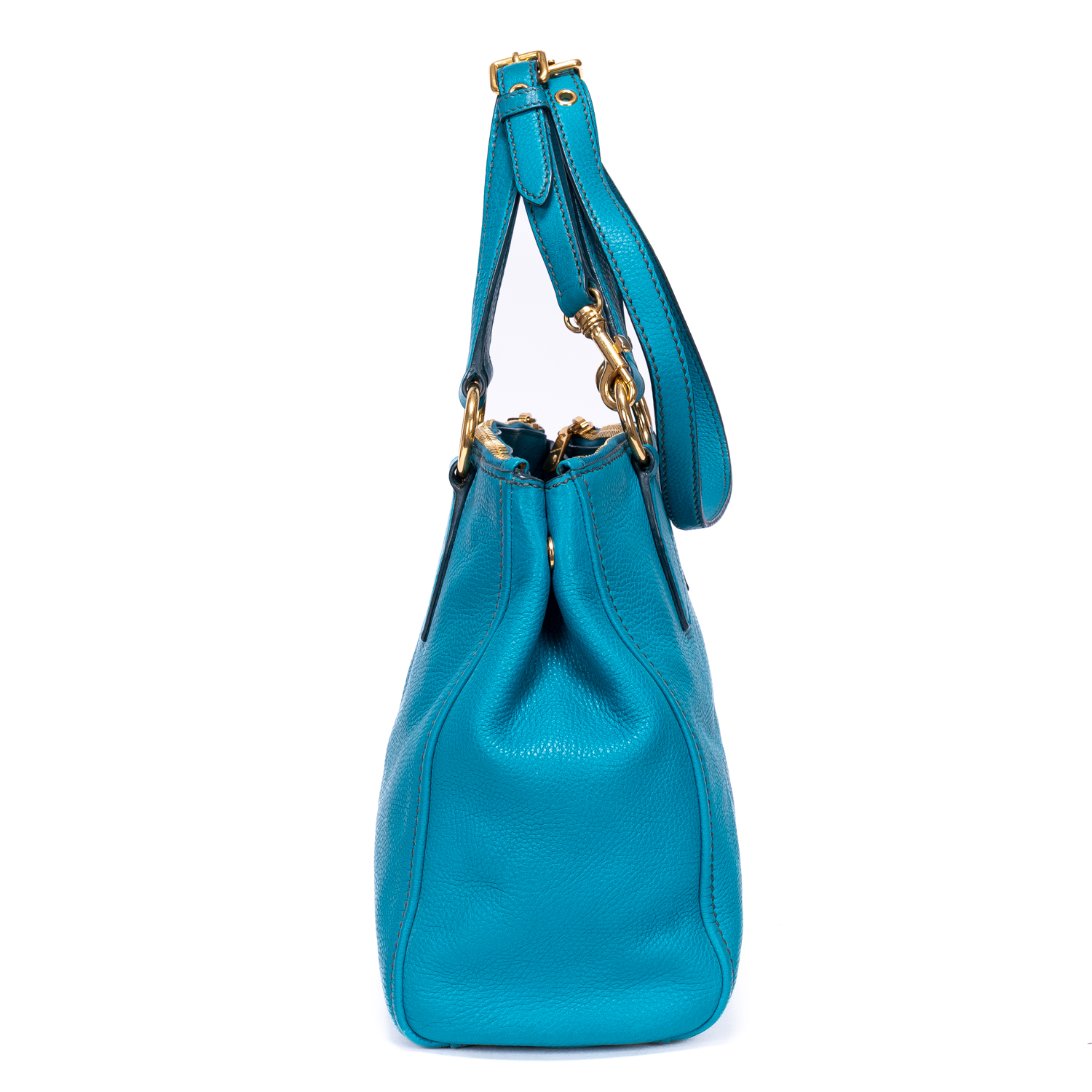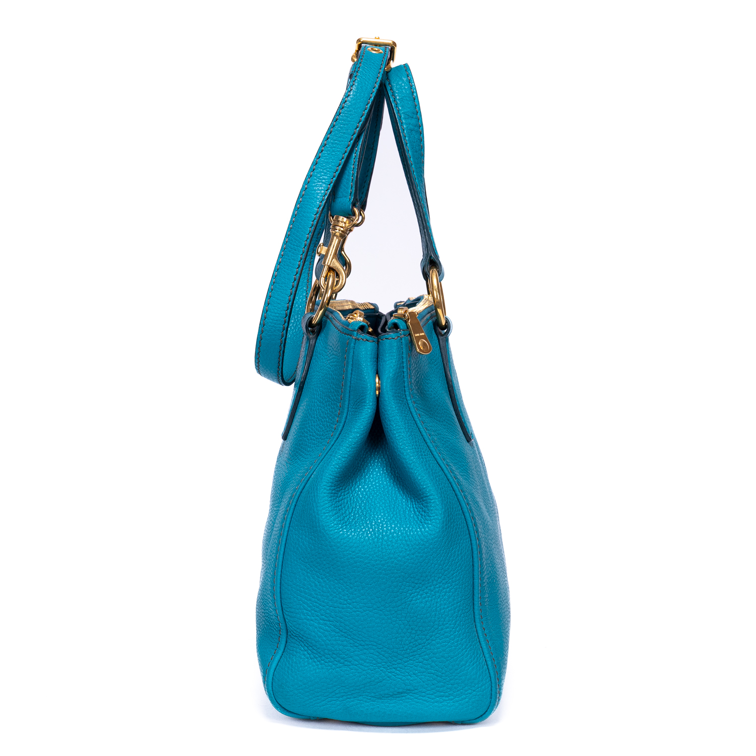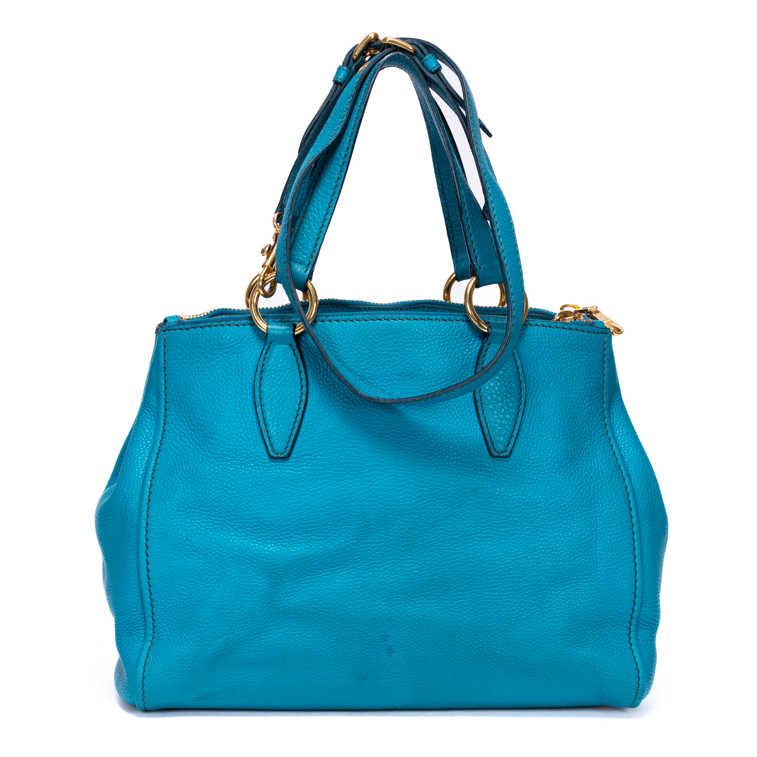 Miu Miu Shoulder Bag Double Zip Convertible Tote in Blue Calfskin Leather and Gold hardware. The product is in Excellent Condition (A).