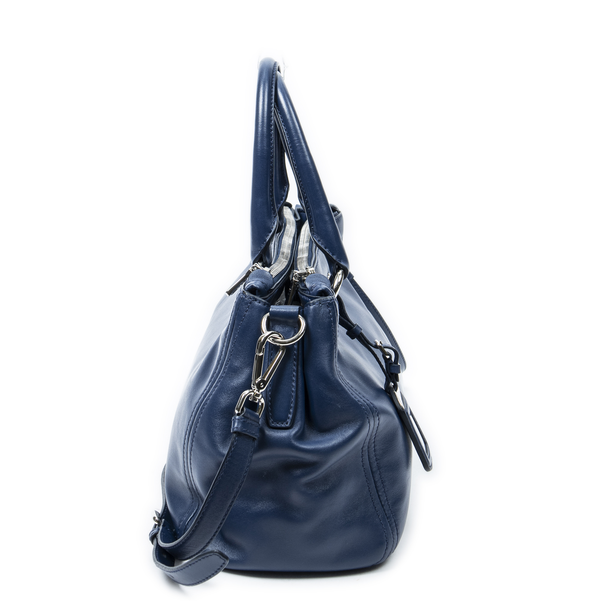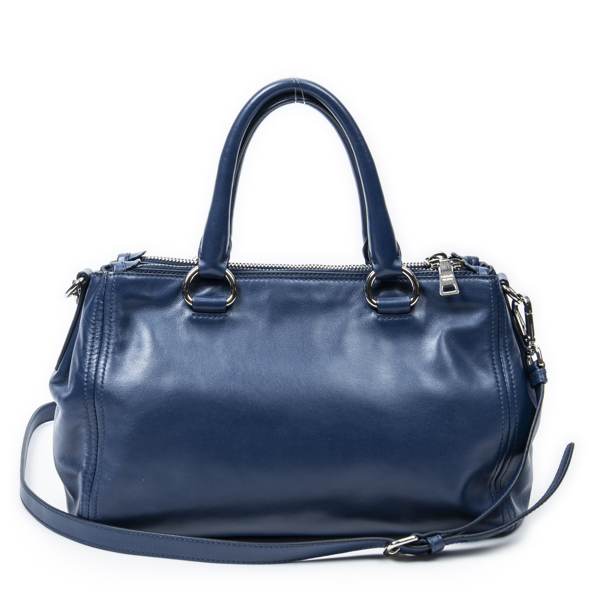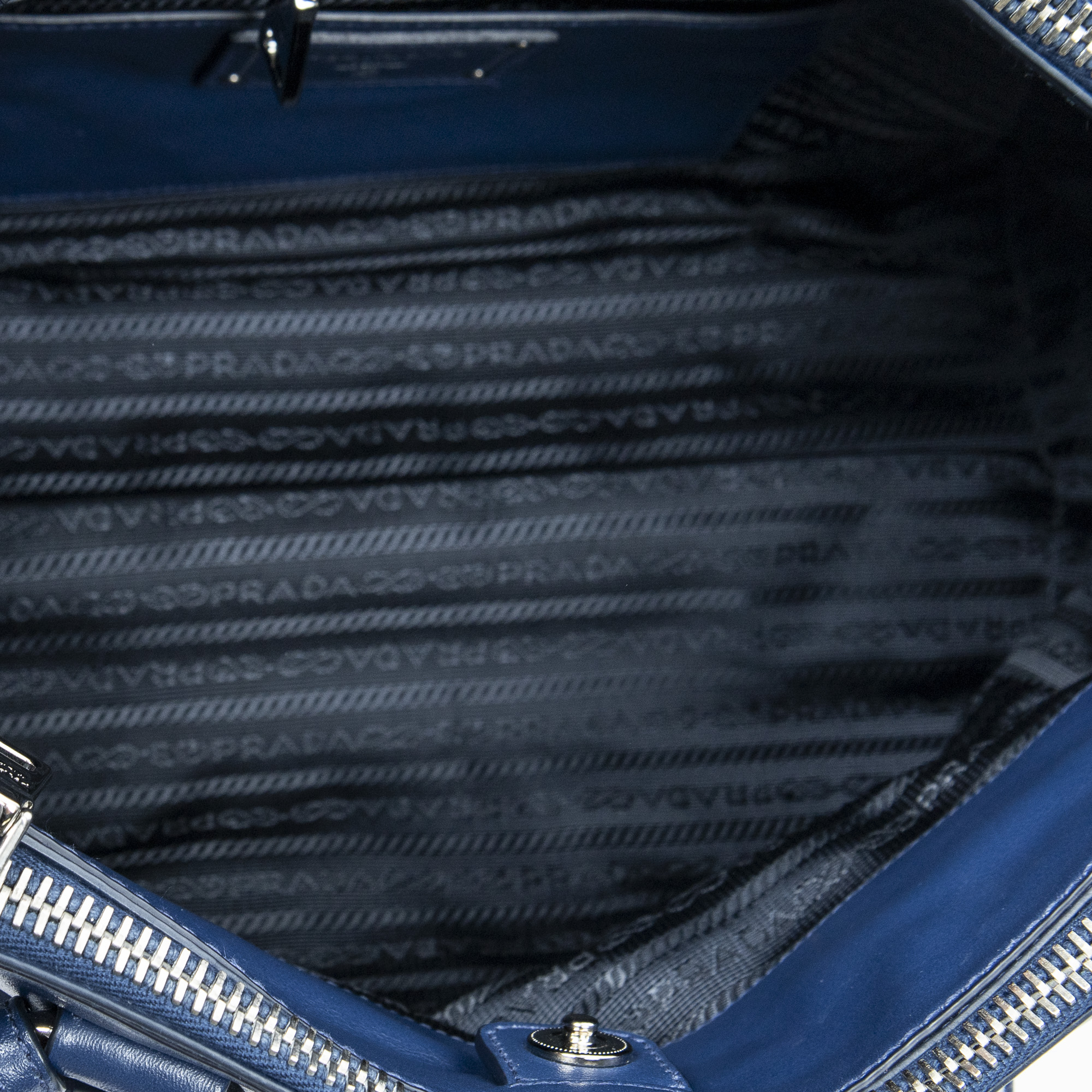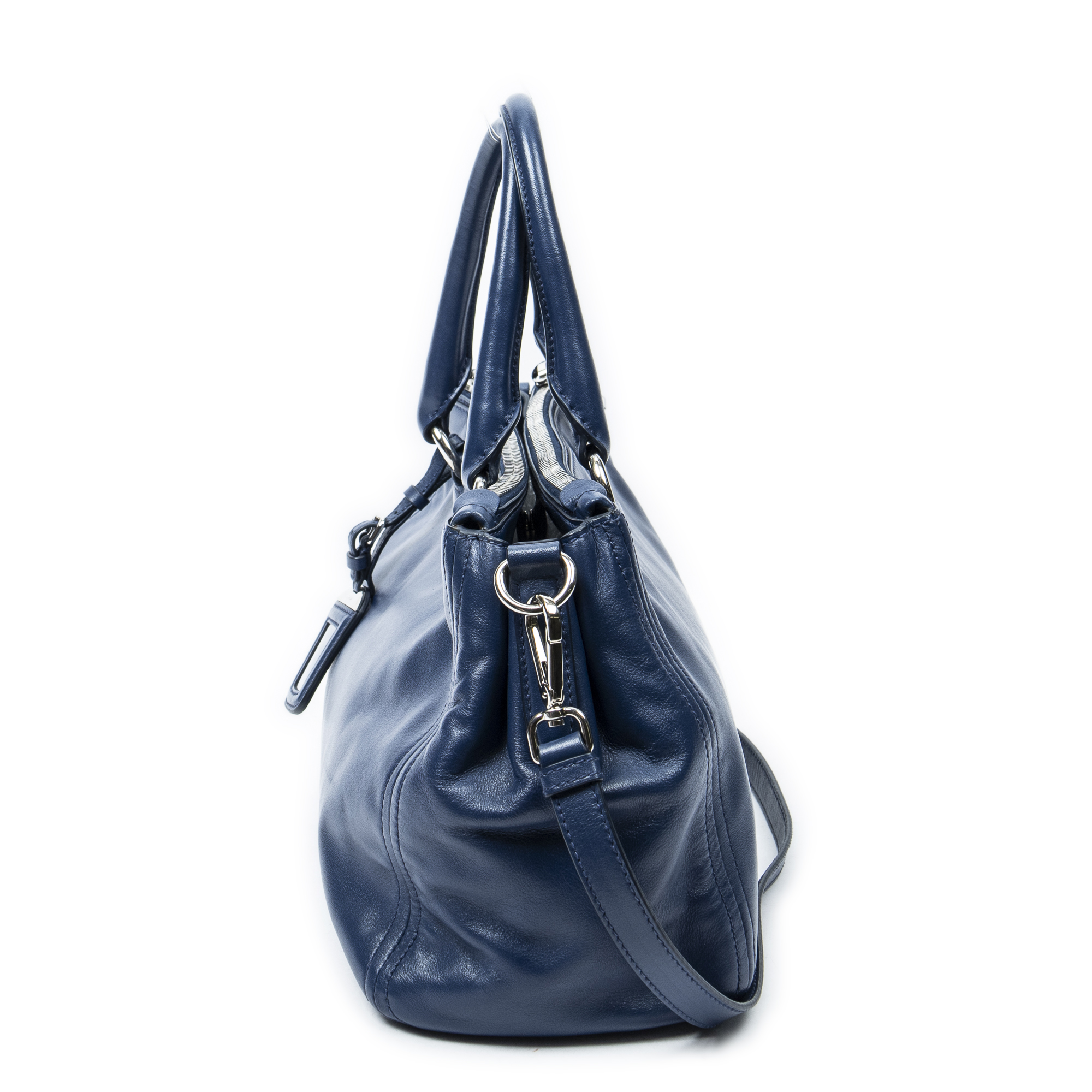 Prada Shoulder Bag Double Zip Shopping Tote in Blue Soft Calfskin Leather and Silver hardware. The product is in Excellent Condition (A).