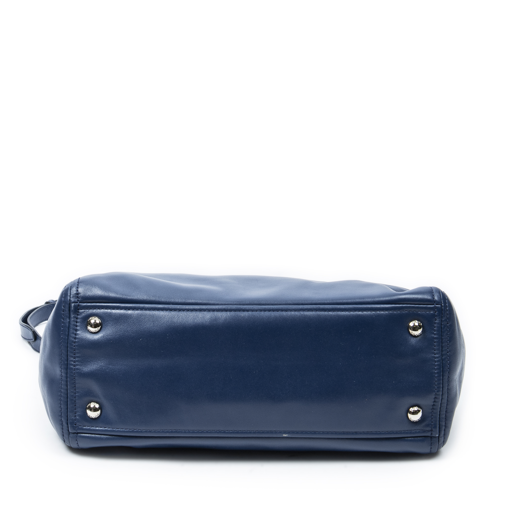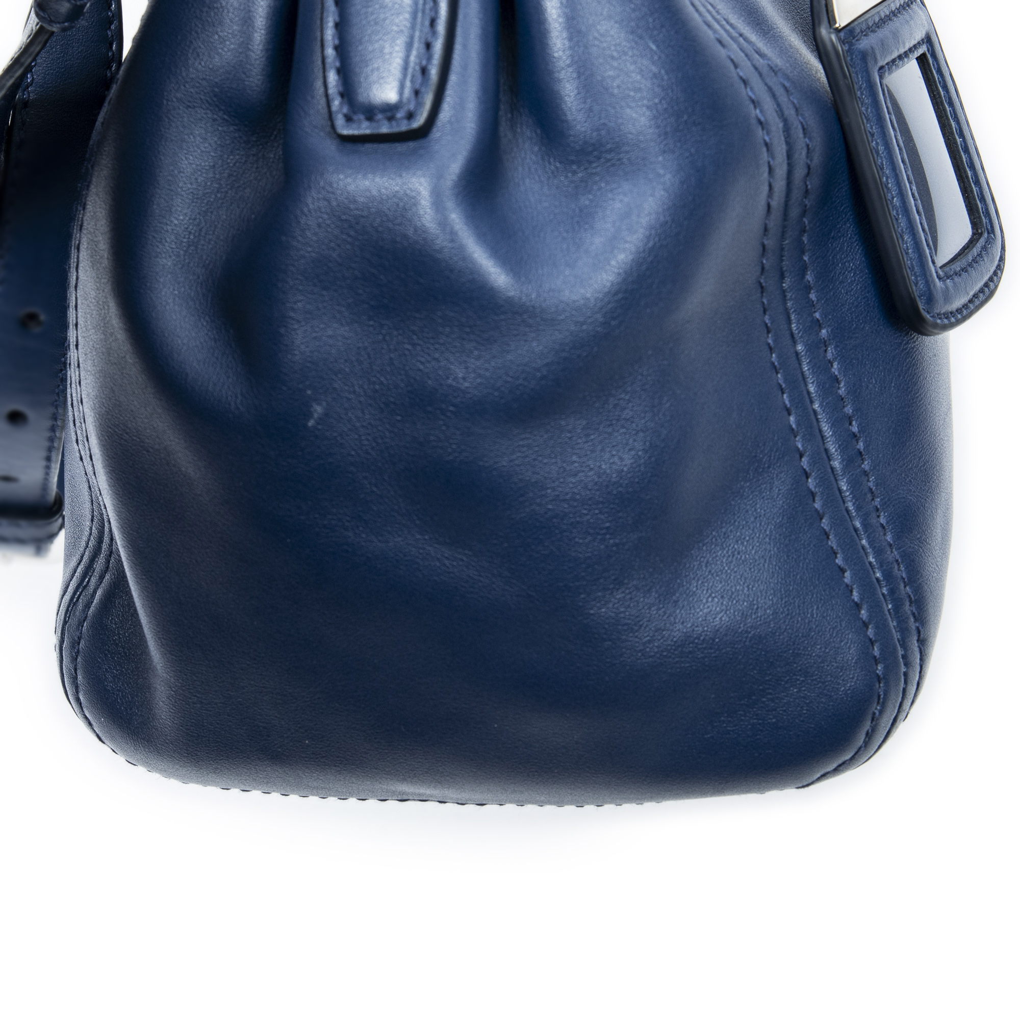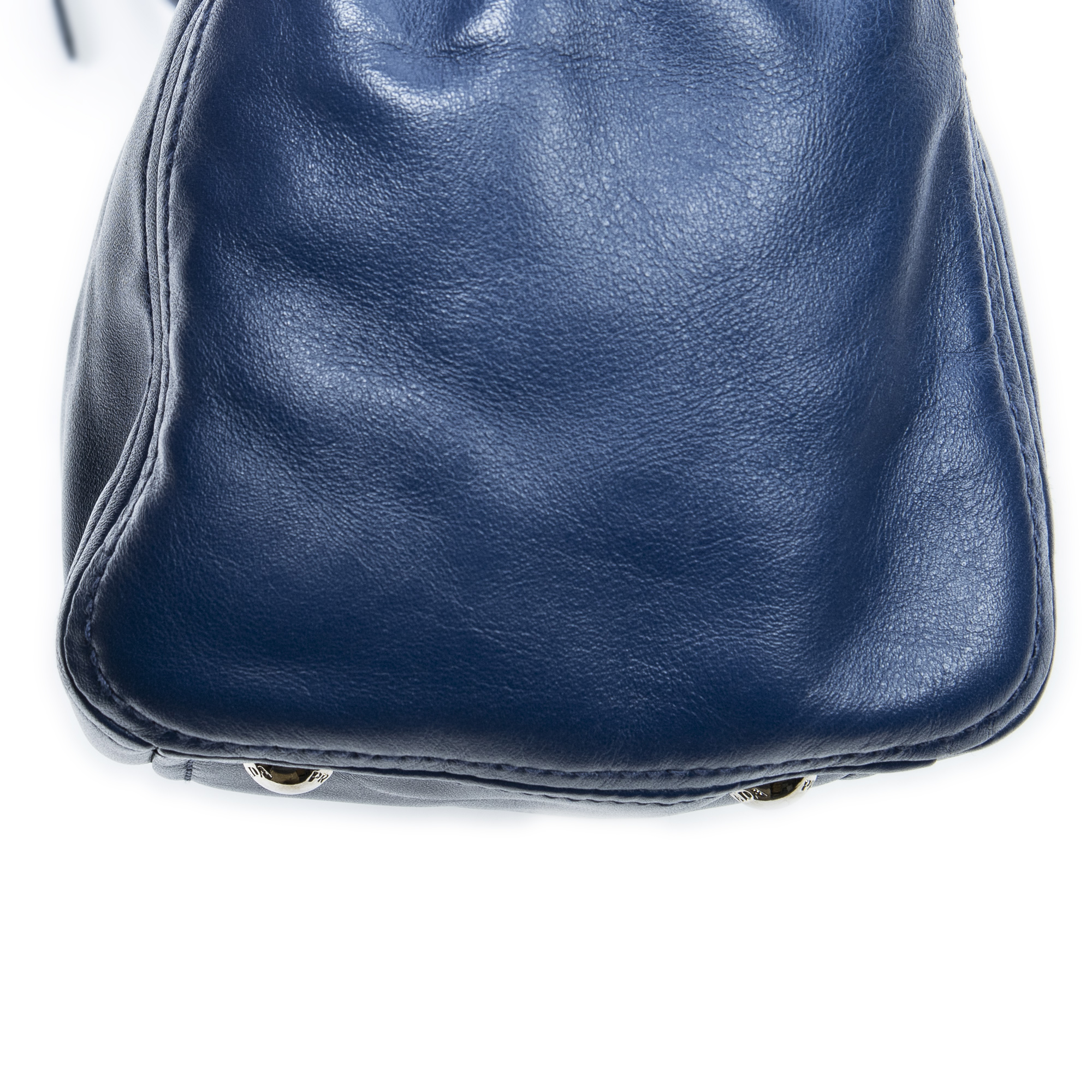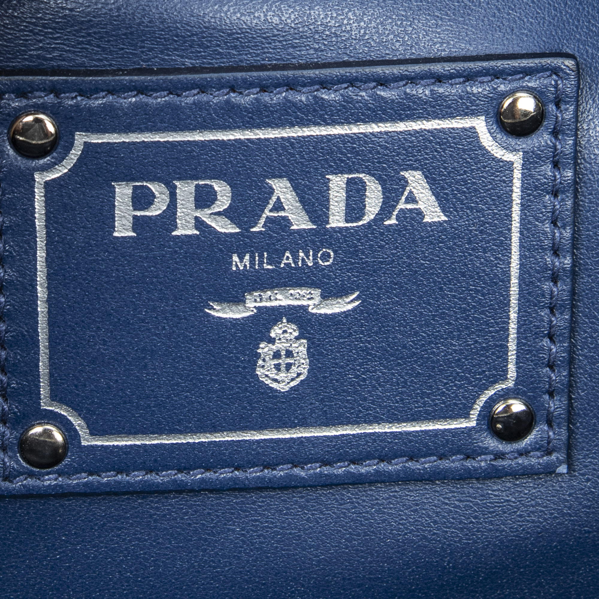 Prada Shoulder Bag Double Zip Shopping Tote in Blue Soft Calfskin Leather and Silver hardware. The product is in Excellent Condition (A).