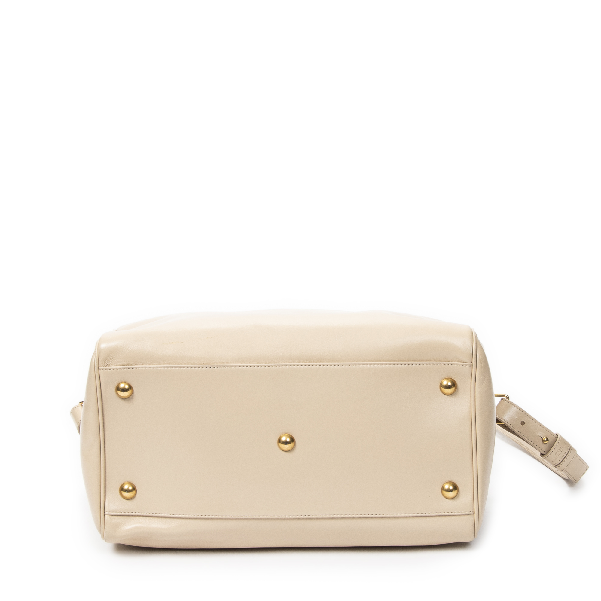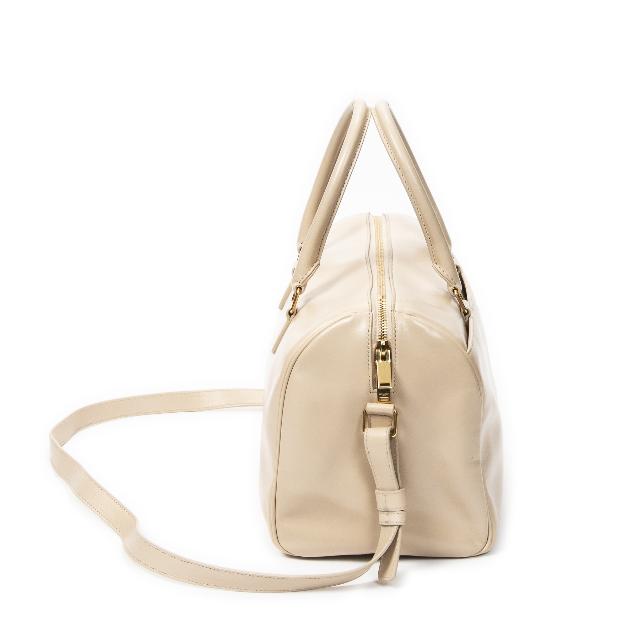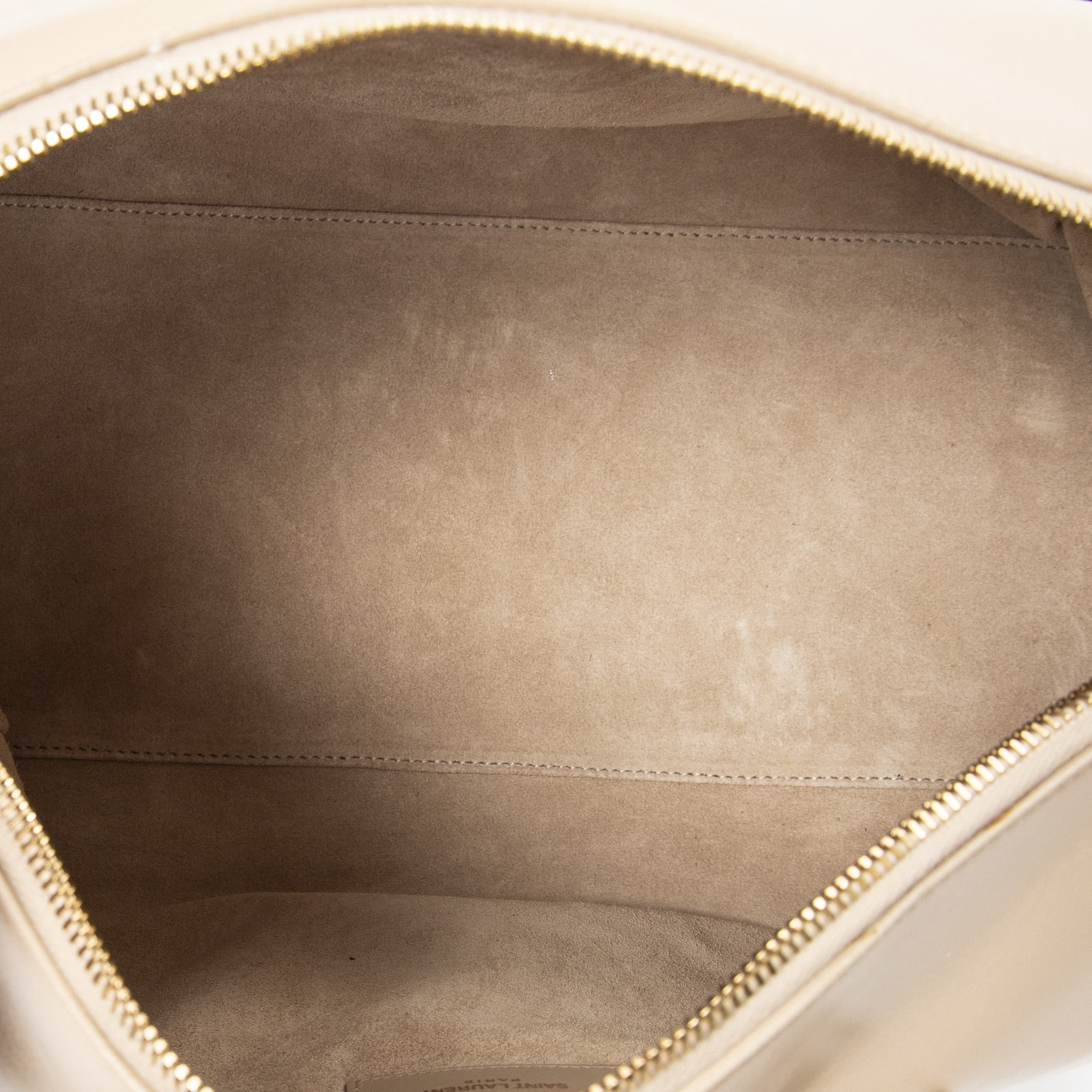Yves Saint Laurent Shoulder Bag Duffle 6 in Beige Calfskin Leather and Gold hardware. The product is in Excellent Condition (A).