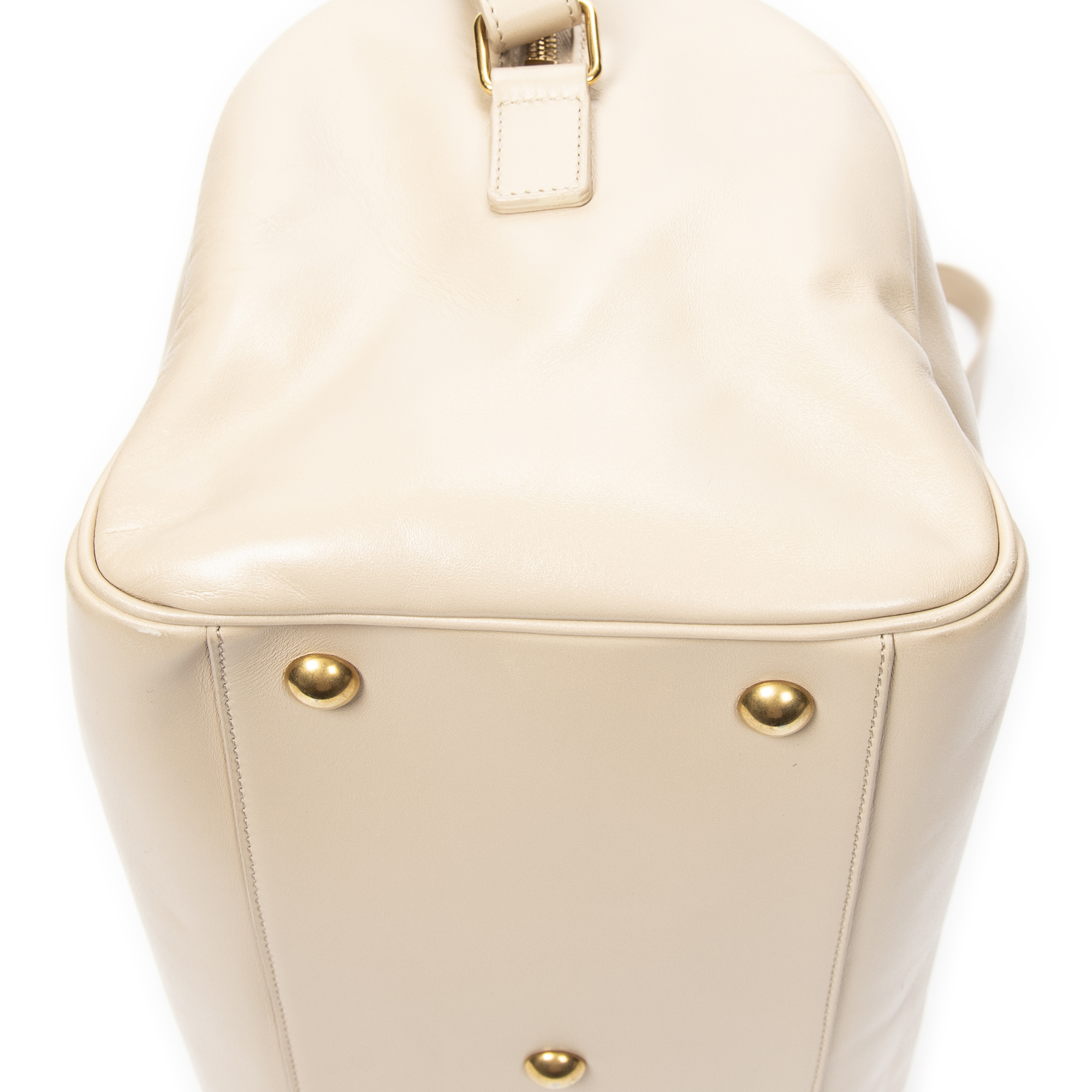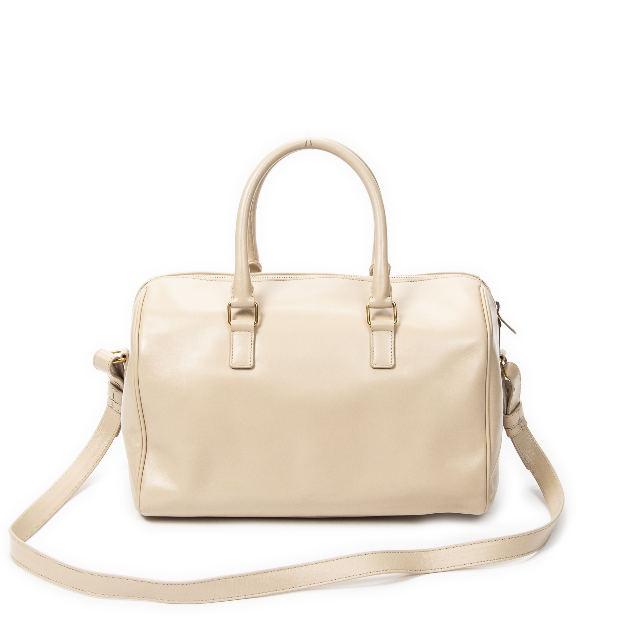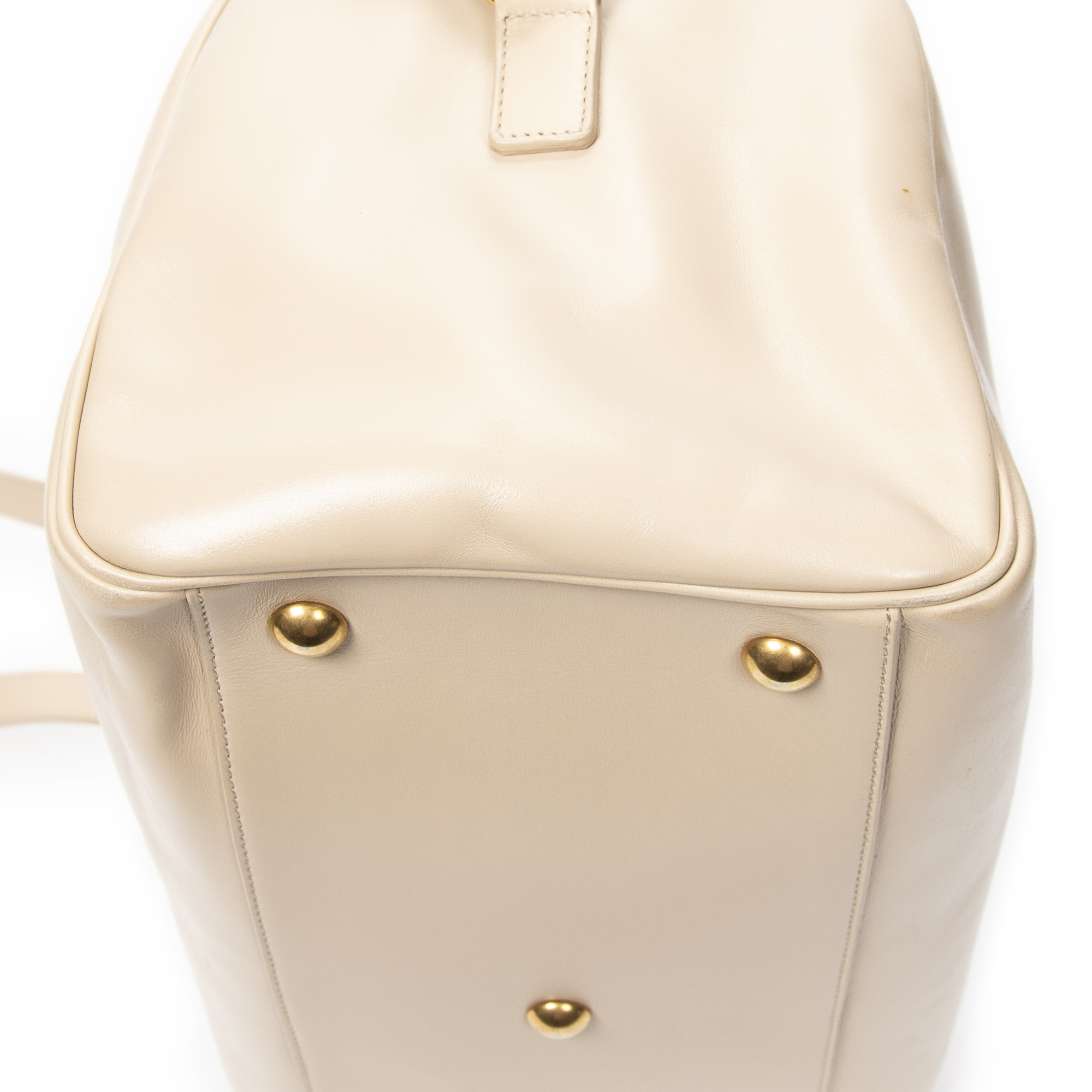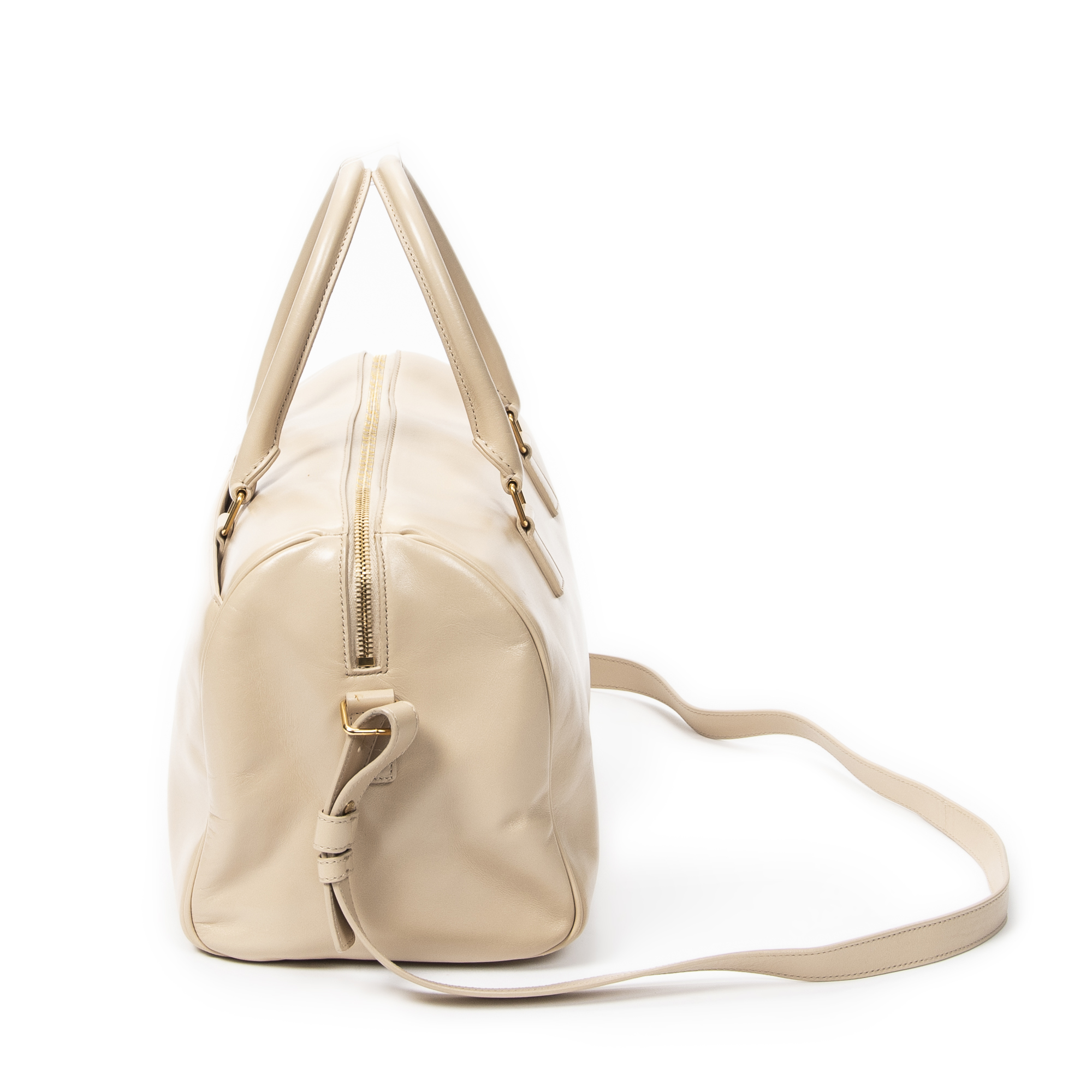 Yves Saint Laurent Shoulder Bag Duffle 6 in Beige Calfskin Leather and Gold hardware. The product is in Excellent Condition (A).