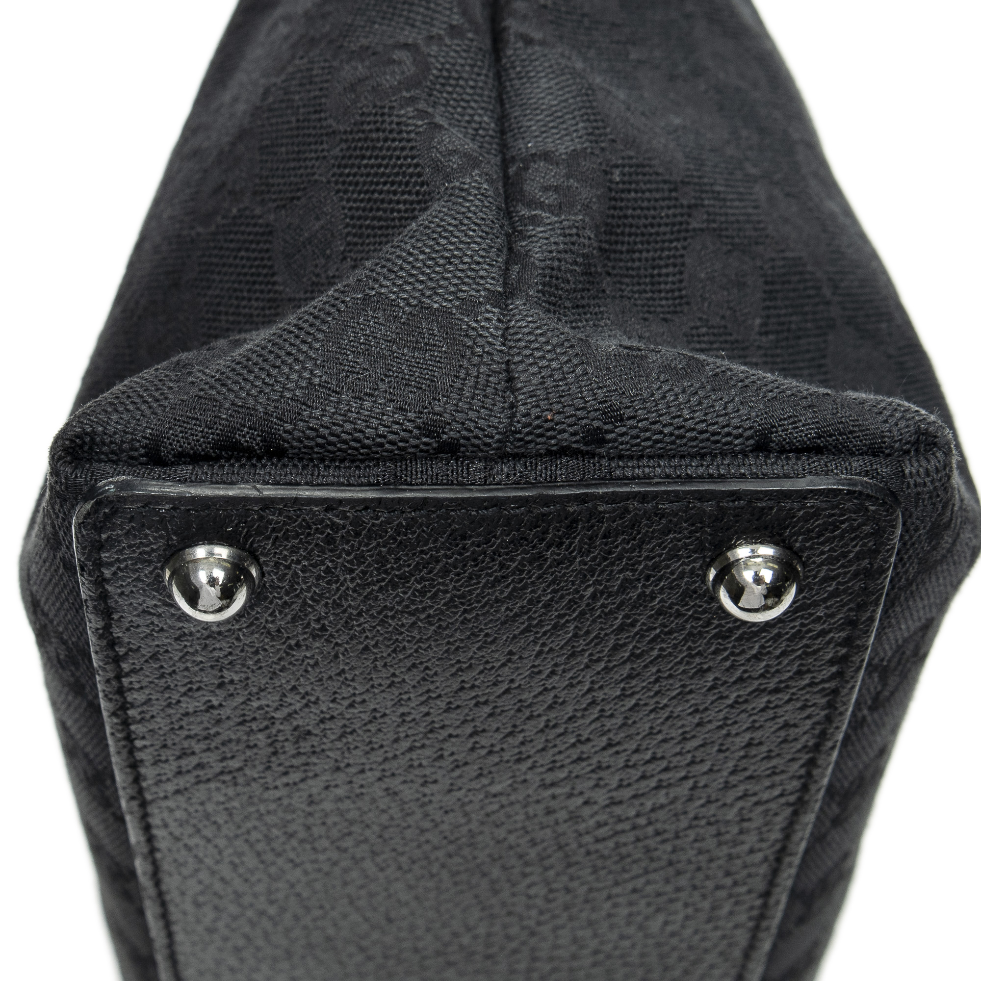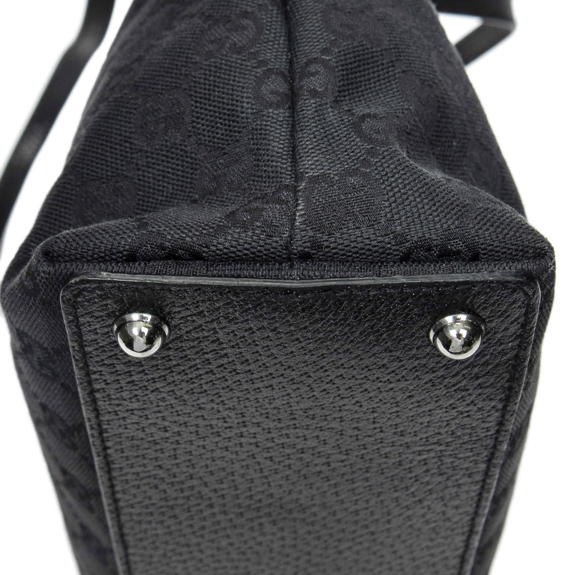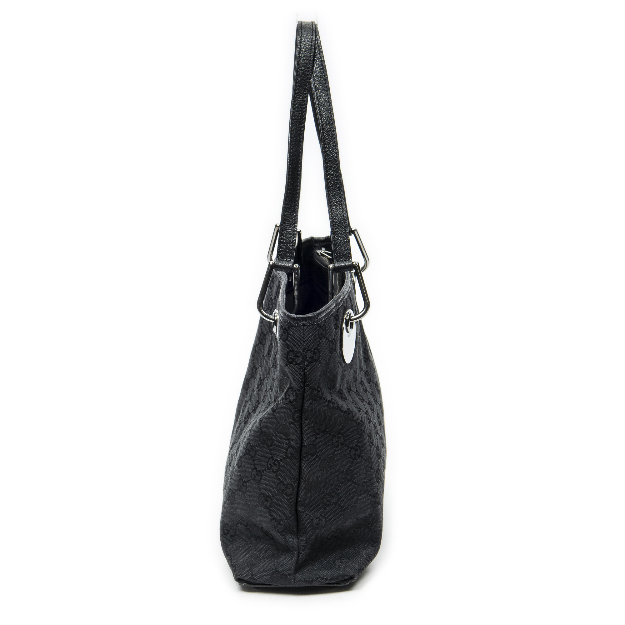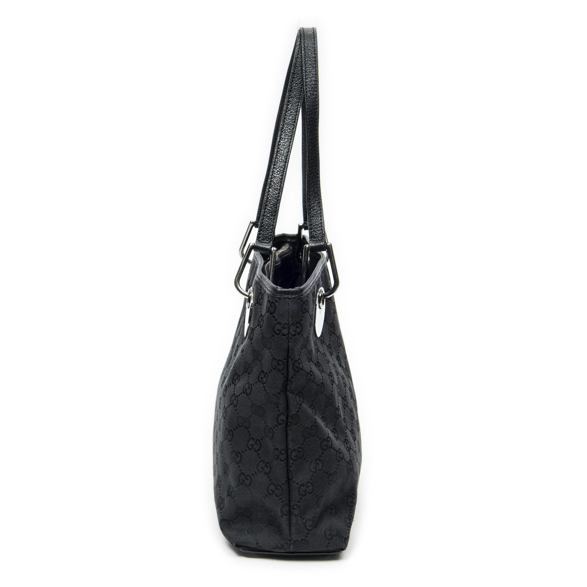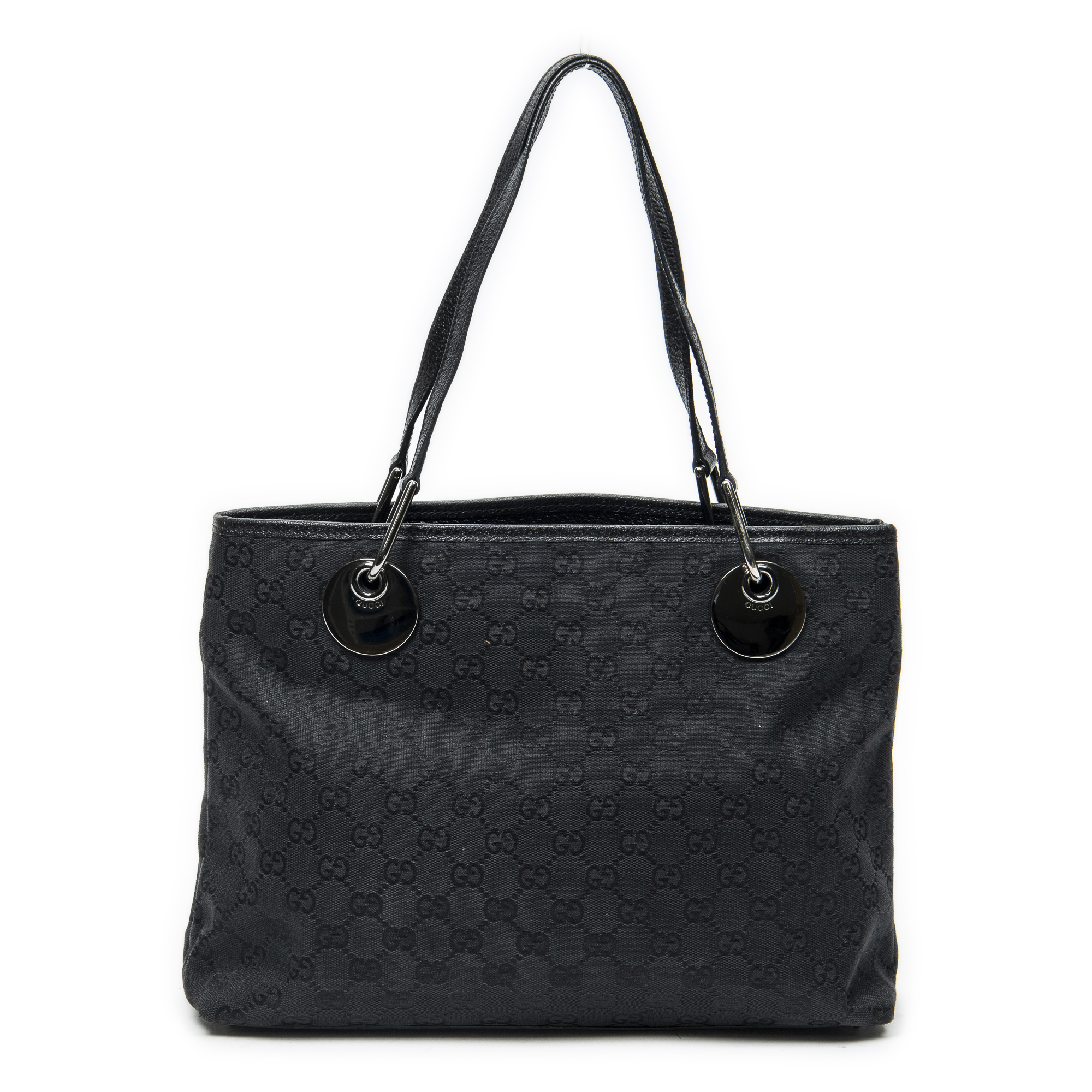 Gucci Shoulder Bag Eclipse Horizontal Tote in Black Monogrammed Canvas and Silver hardware. The product is in Excellent Condition (A).