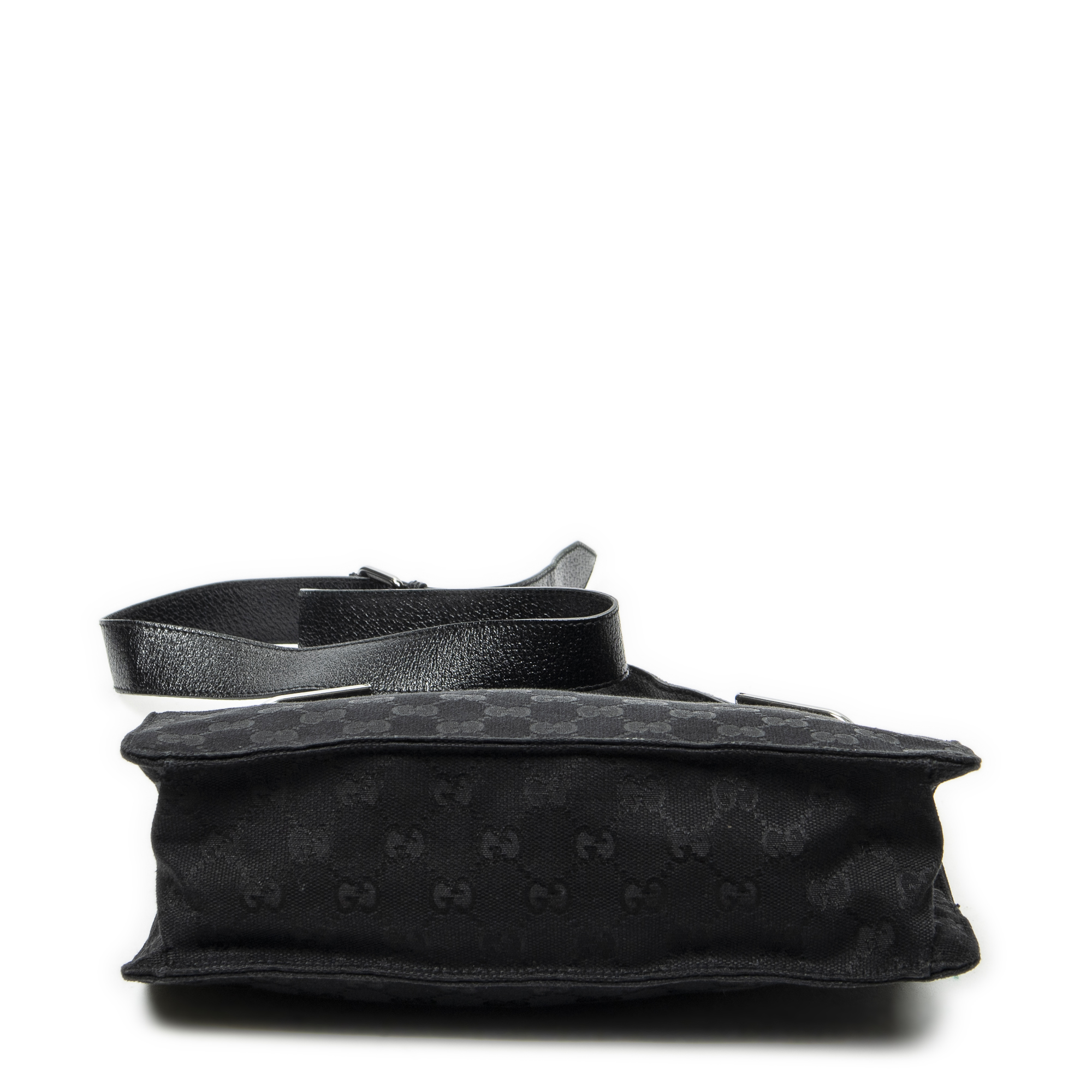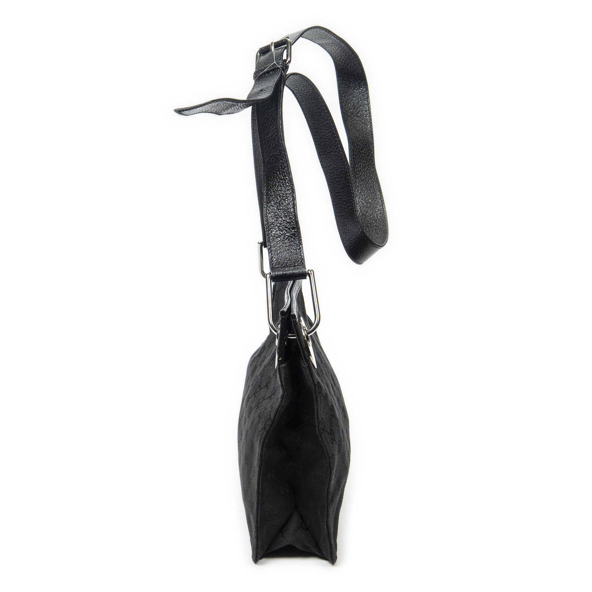 Gucci Shoulder Bag Eclipse Square Crossbody in Black Monogrammed Canvas and Silver hardware. The product is in Excellent Condition (A).