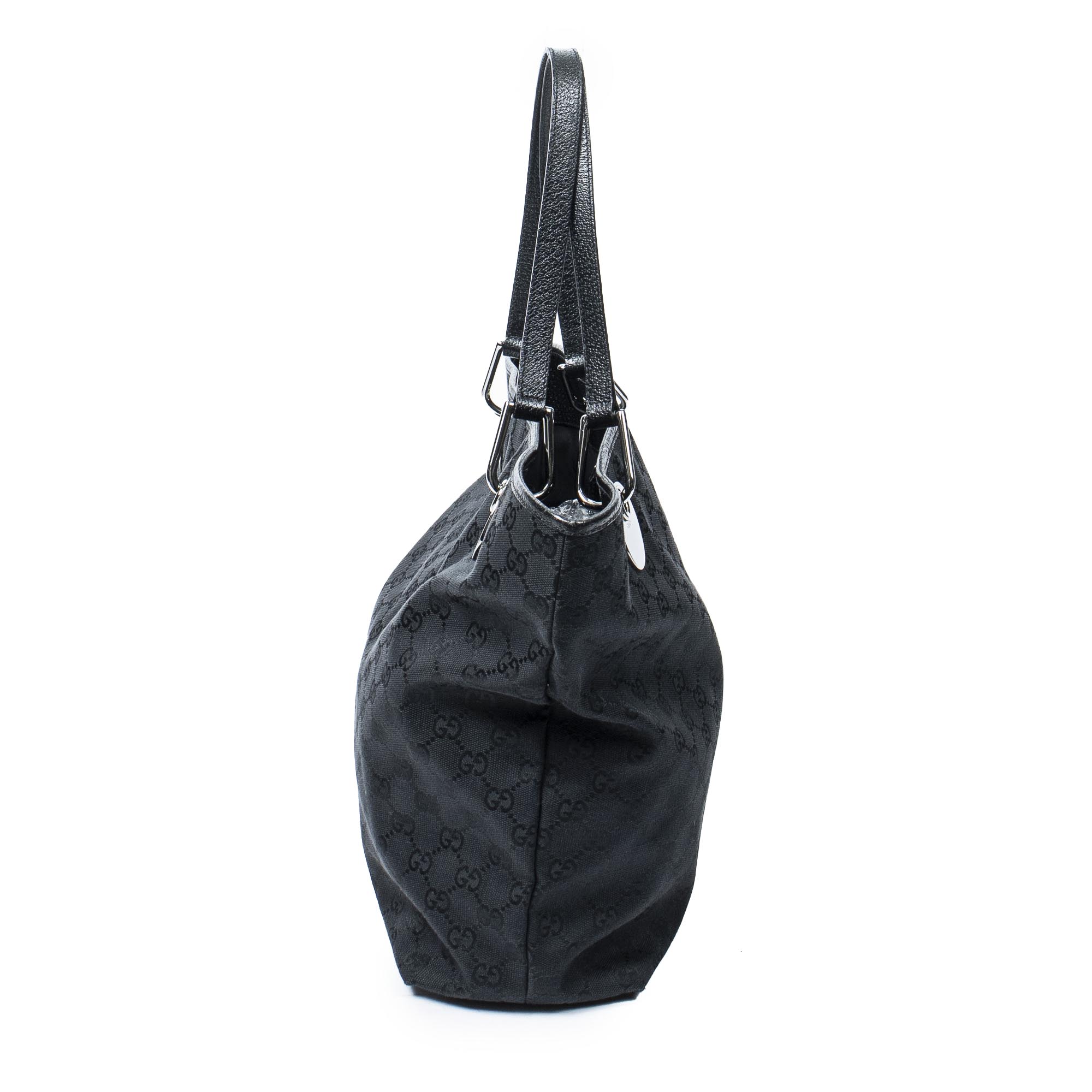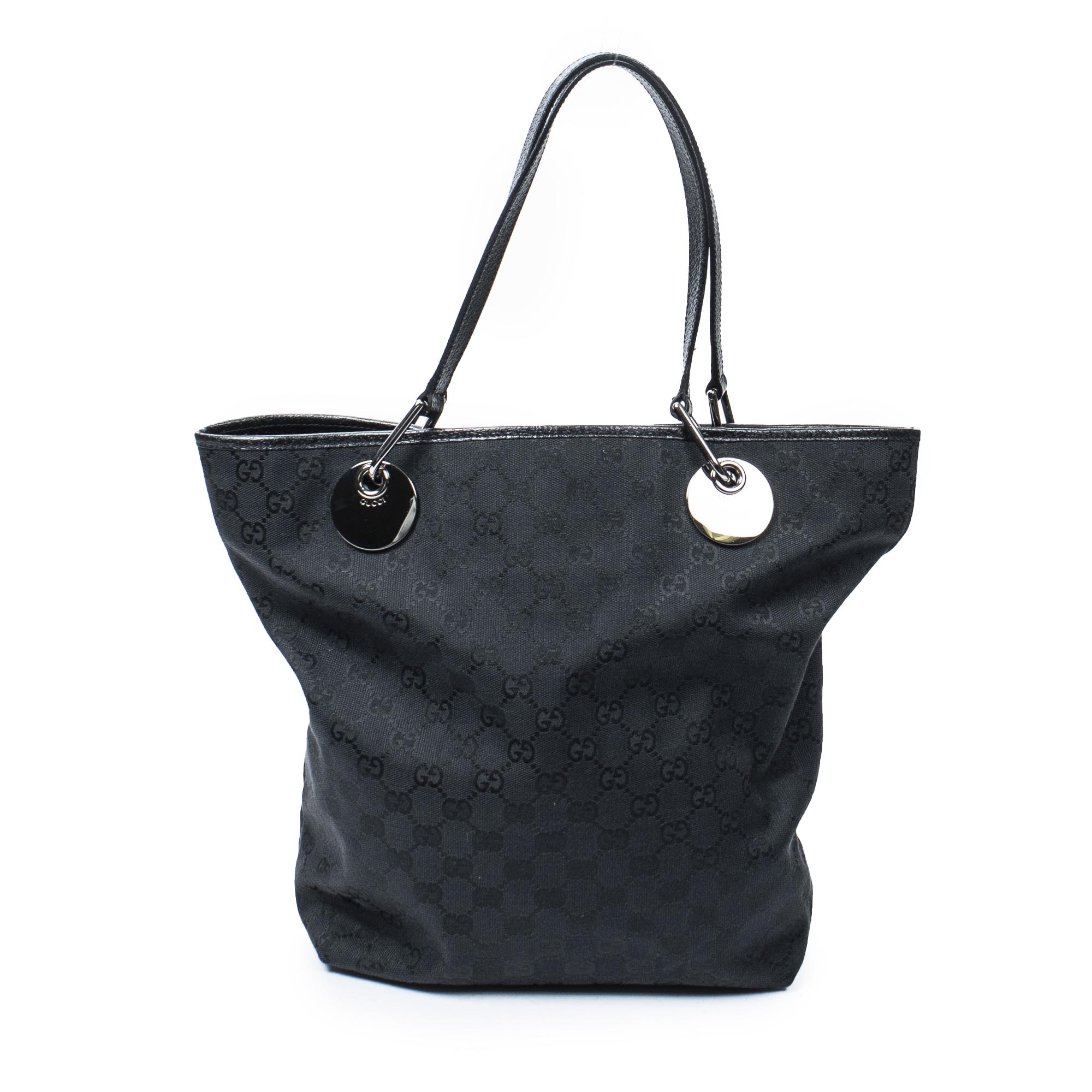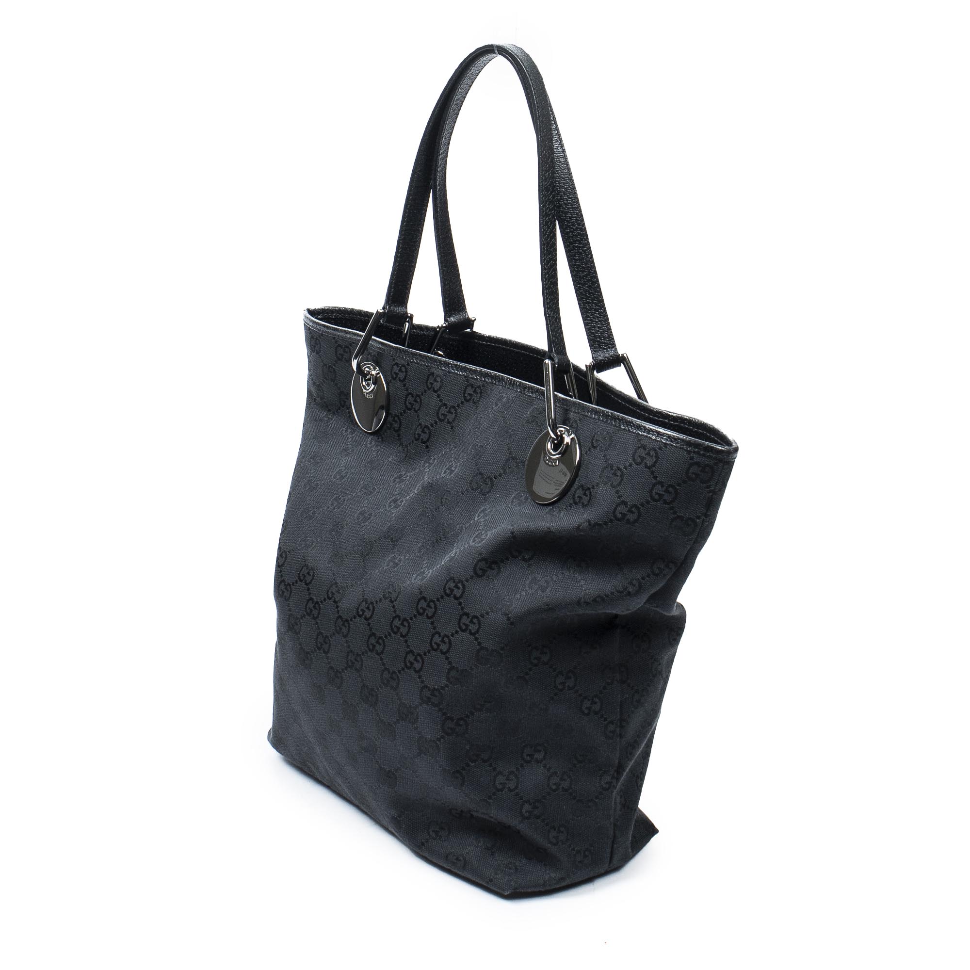 Gucci Shoulder Bag Eclipse Tall Tote in Black Monogrammed Canvas and Silver hardware. The product is in Excellent Condition (A).