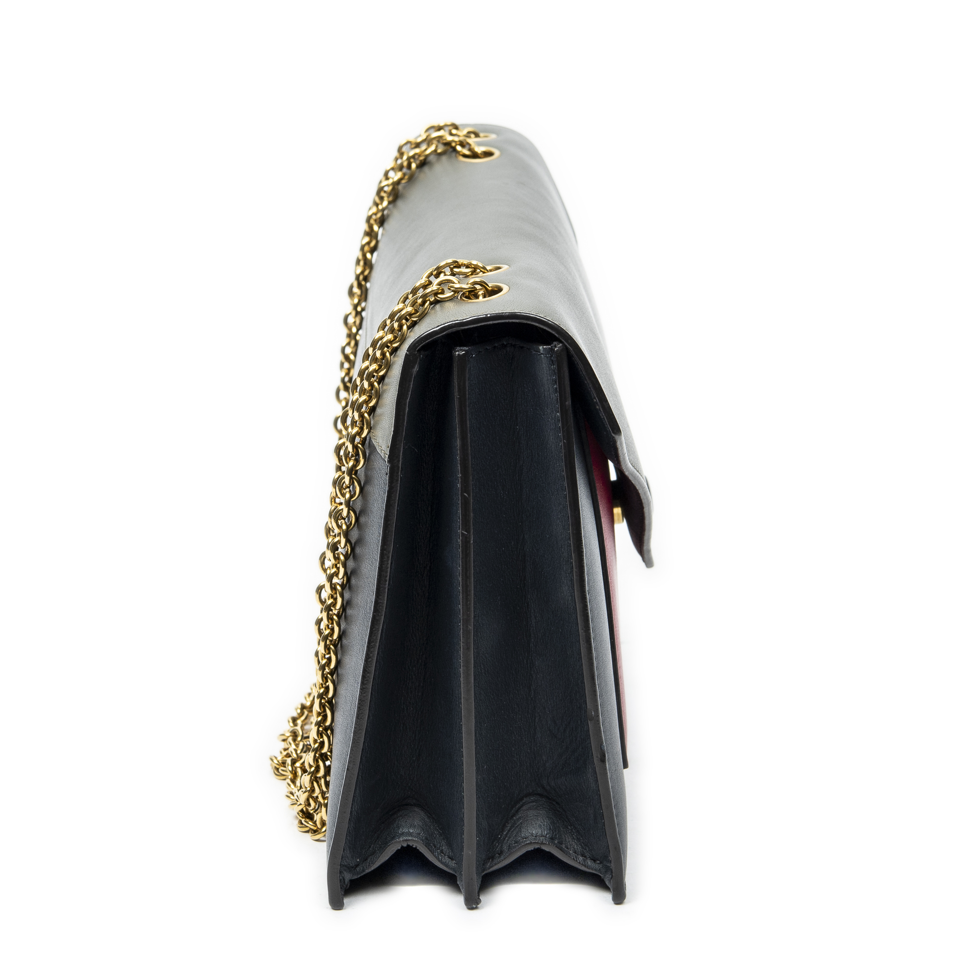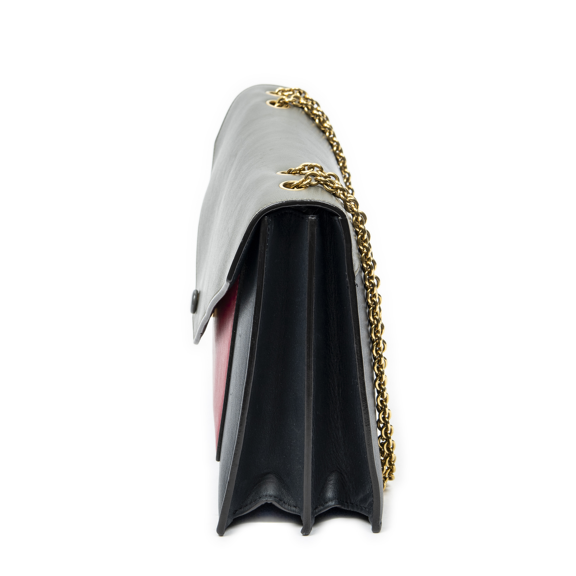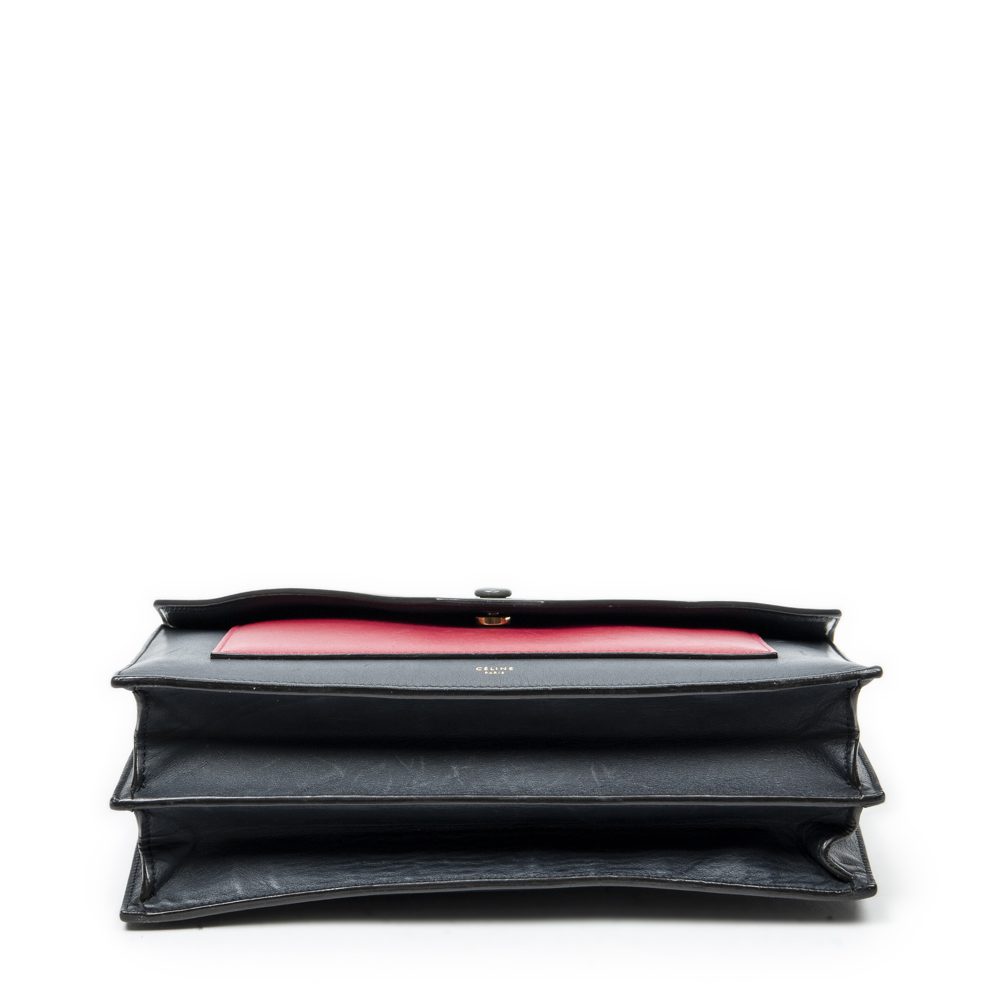 Celine Shoulder Bag Envelope Crossbody in Black/Red/Gray Calfskin Leather and Gold hardware. The product is in Excellent Condition (A).