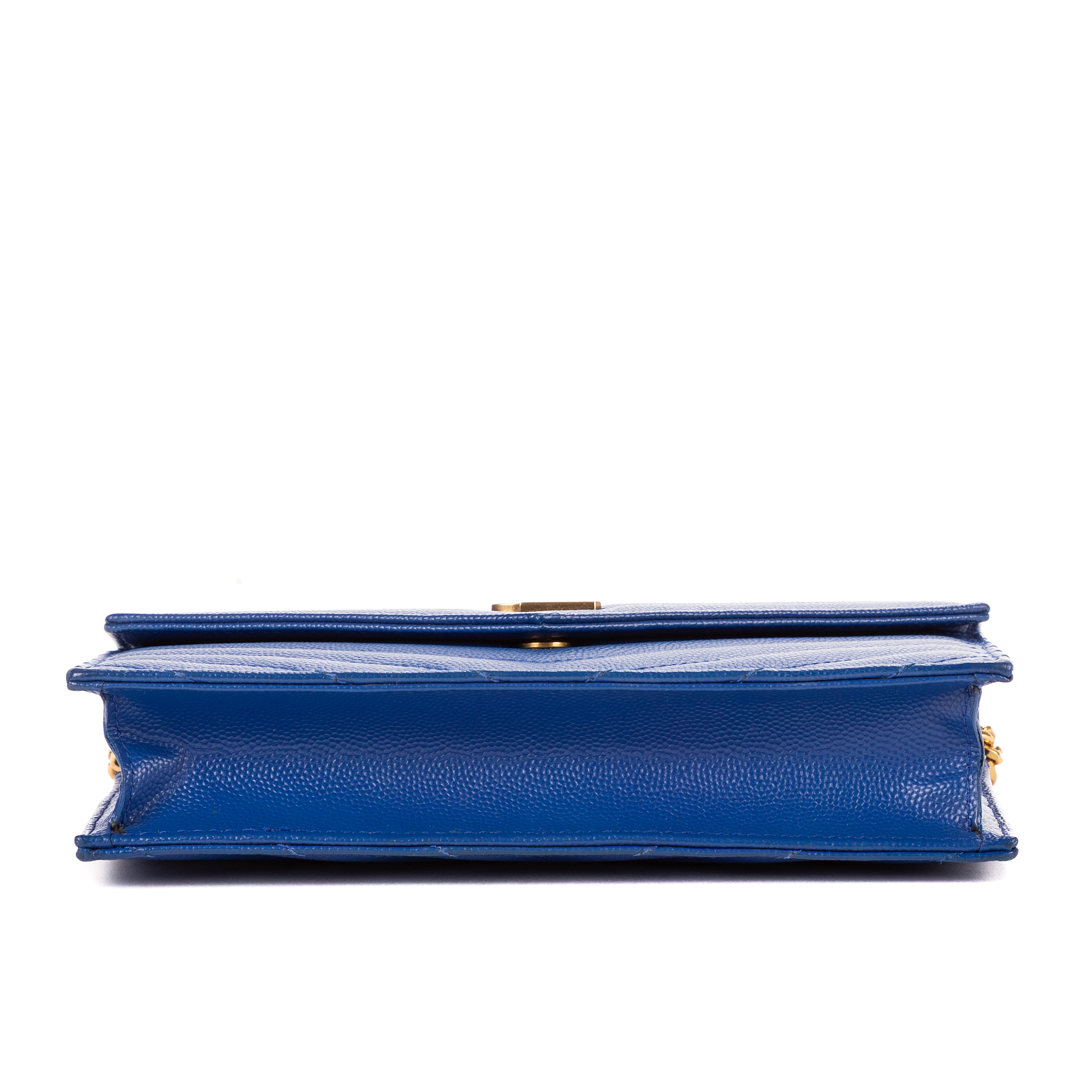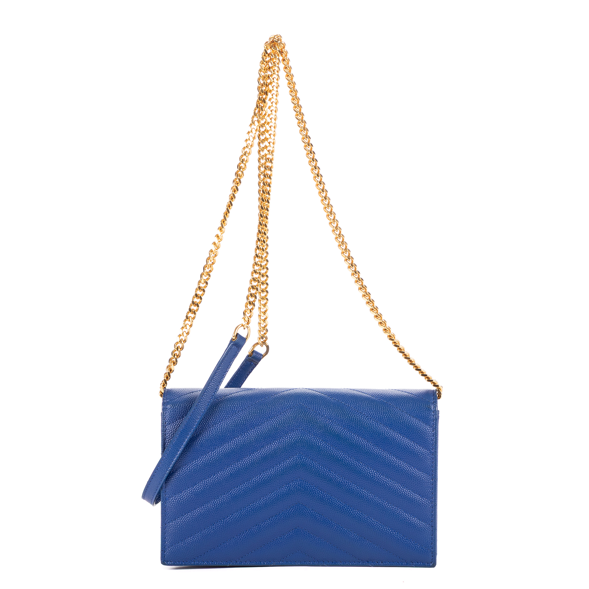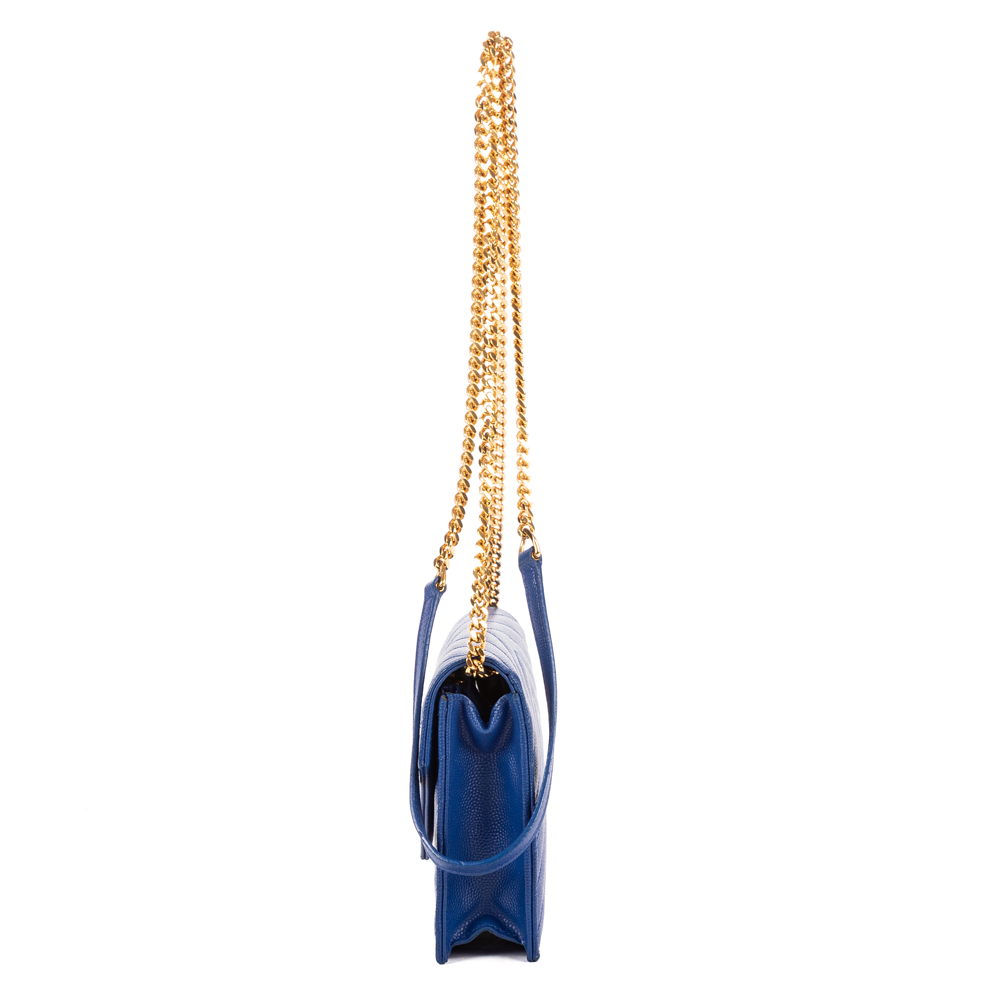Yves Saint Laurent Shoulder Bag Enveloppe Wallet On Chain in Navy Chevron Grain Poudre leather and Gold hardware. The product is in Excellent Condition (A).