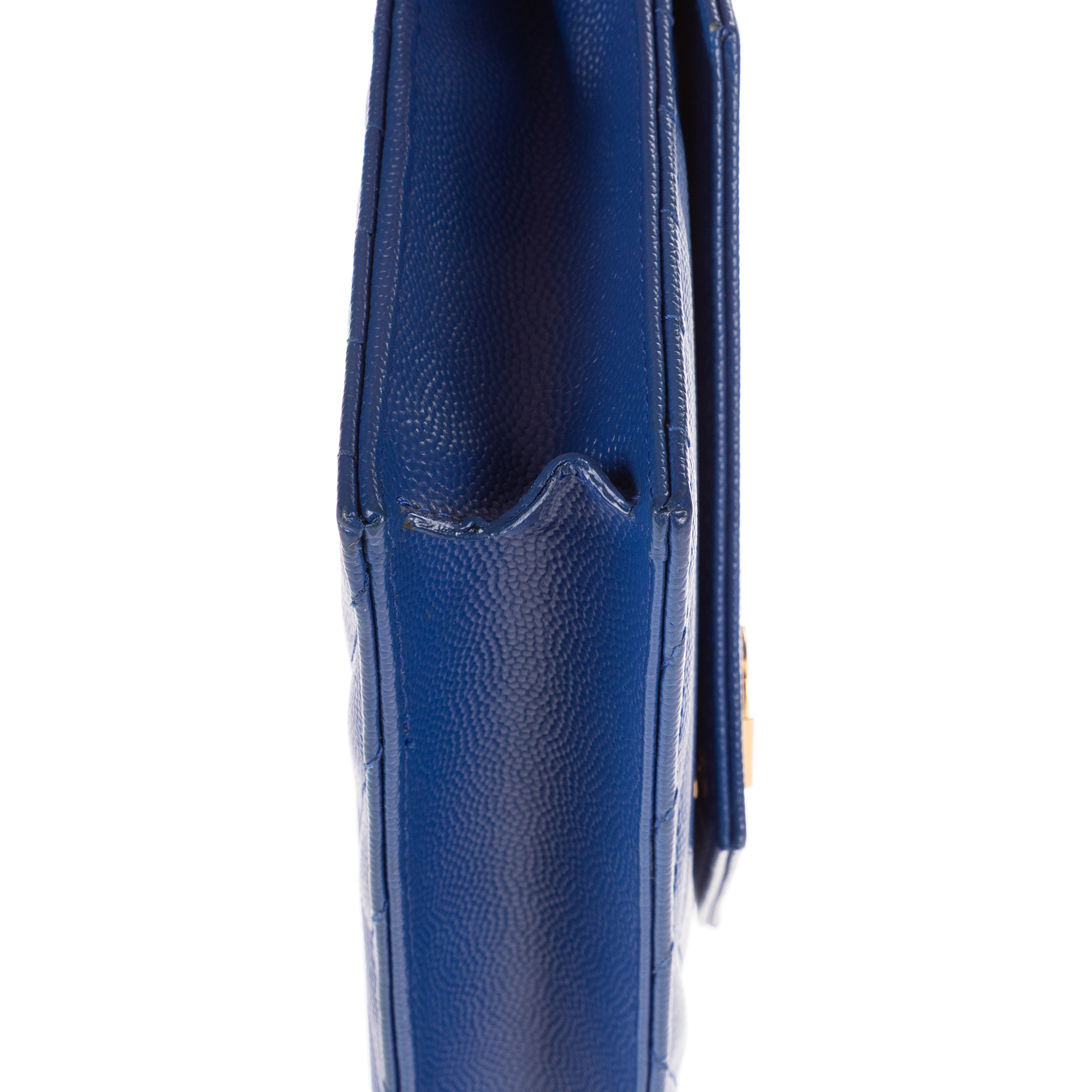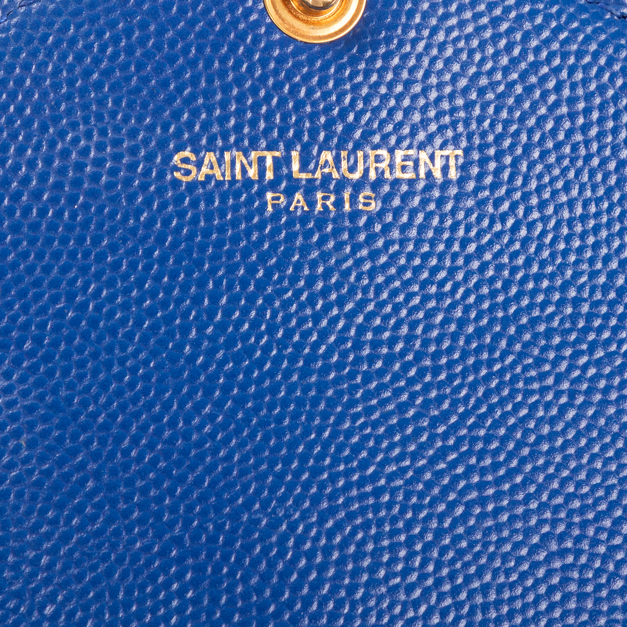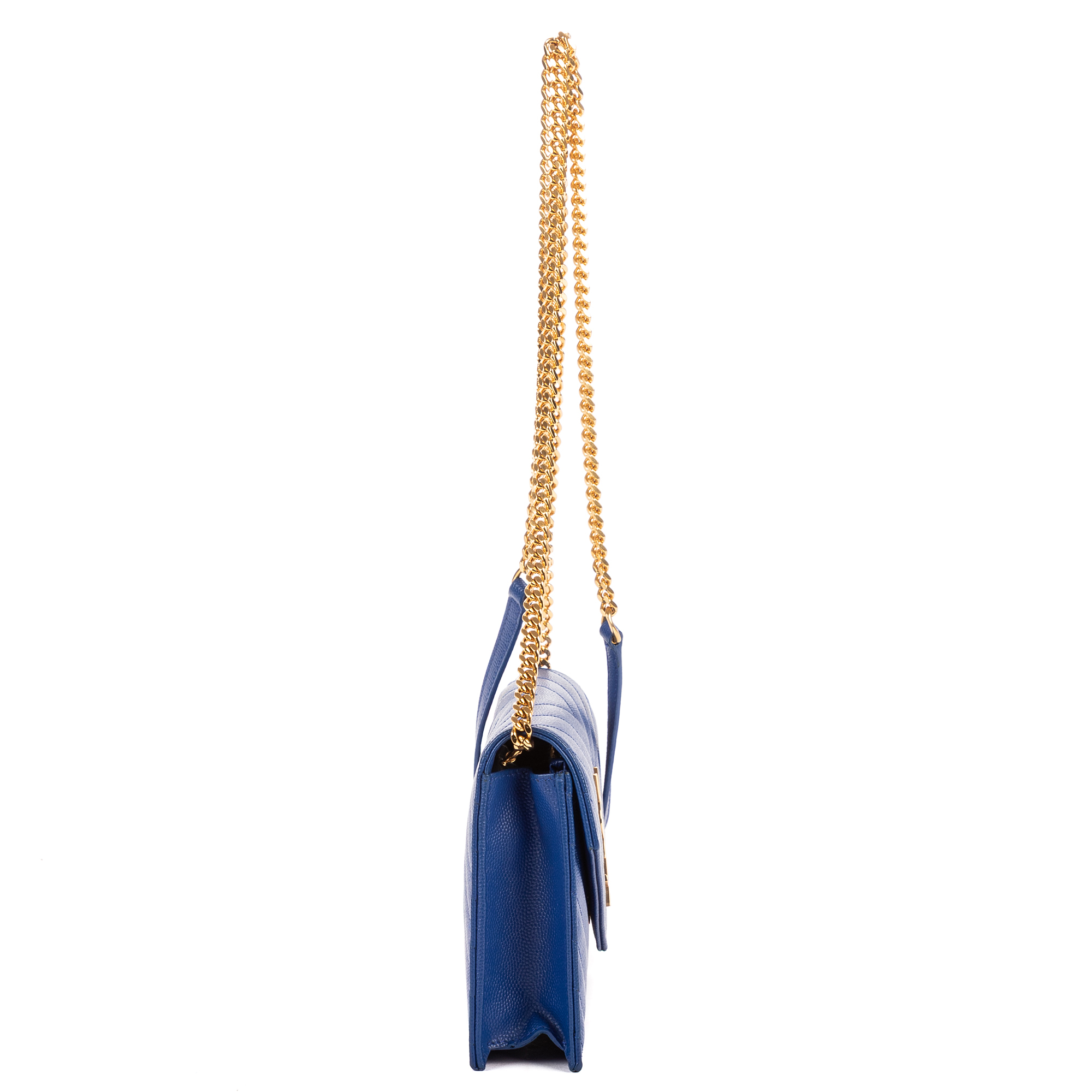 Yves Saint Laurent Shoulder Bag Enveloppe Wallet On Chain in Navy Chevron Grain Poudre leather and Gold hardware. The product is in Excellent Condition (A).