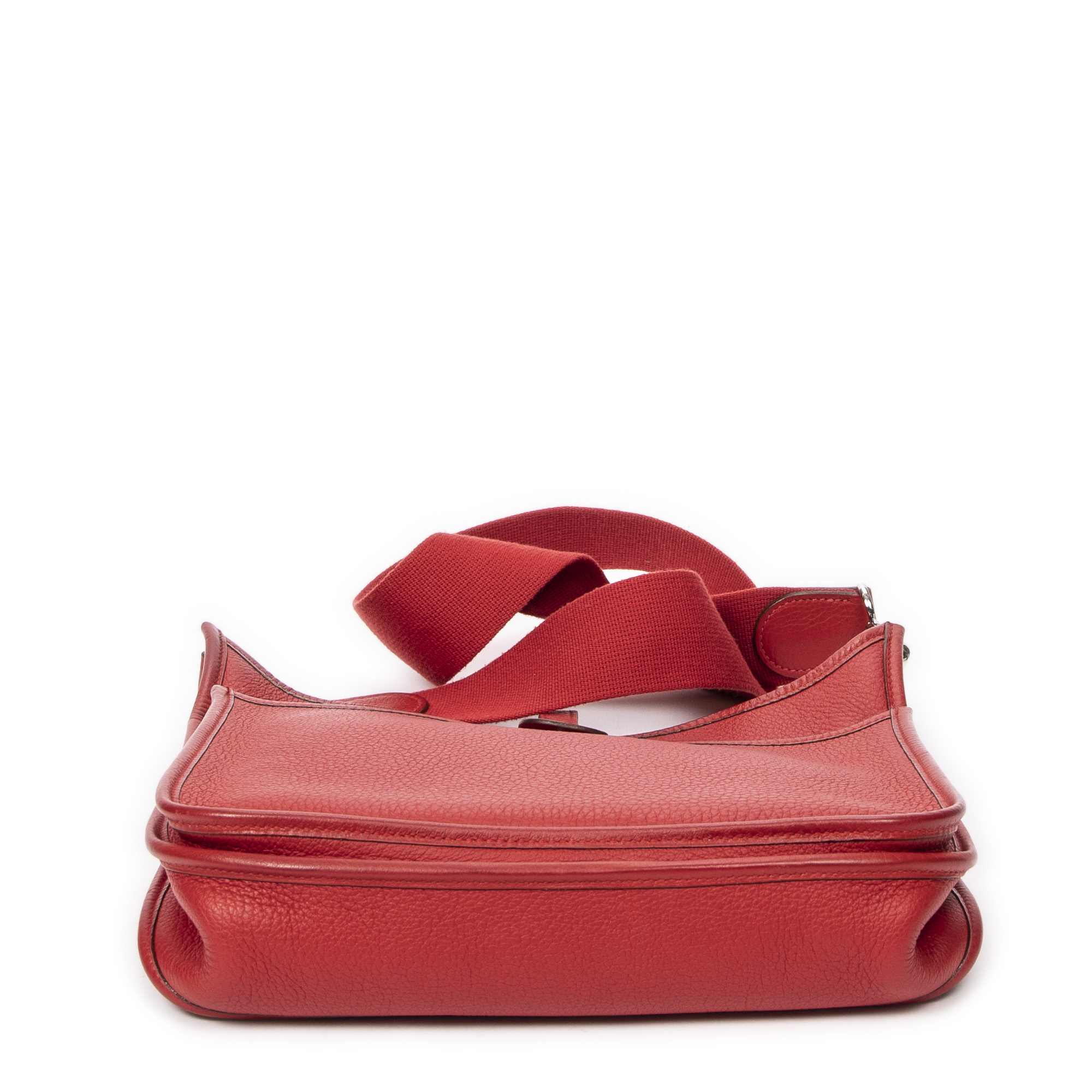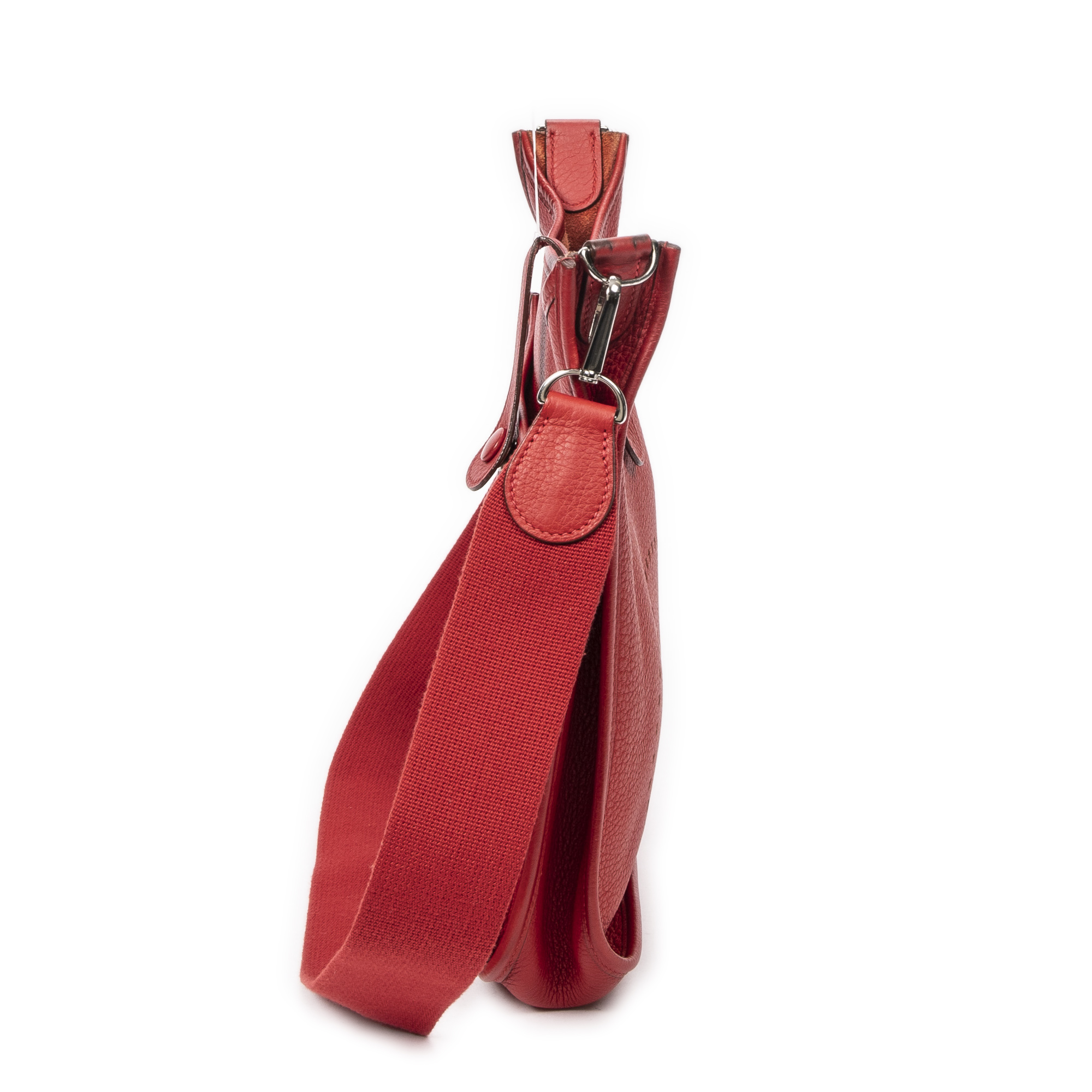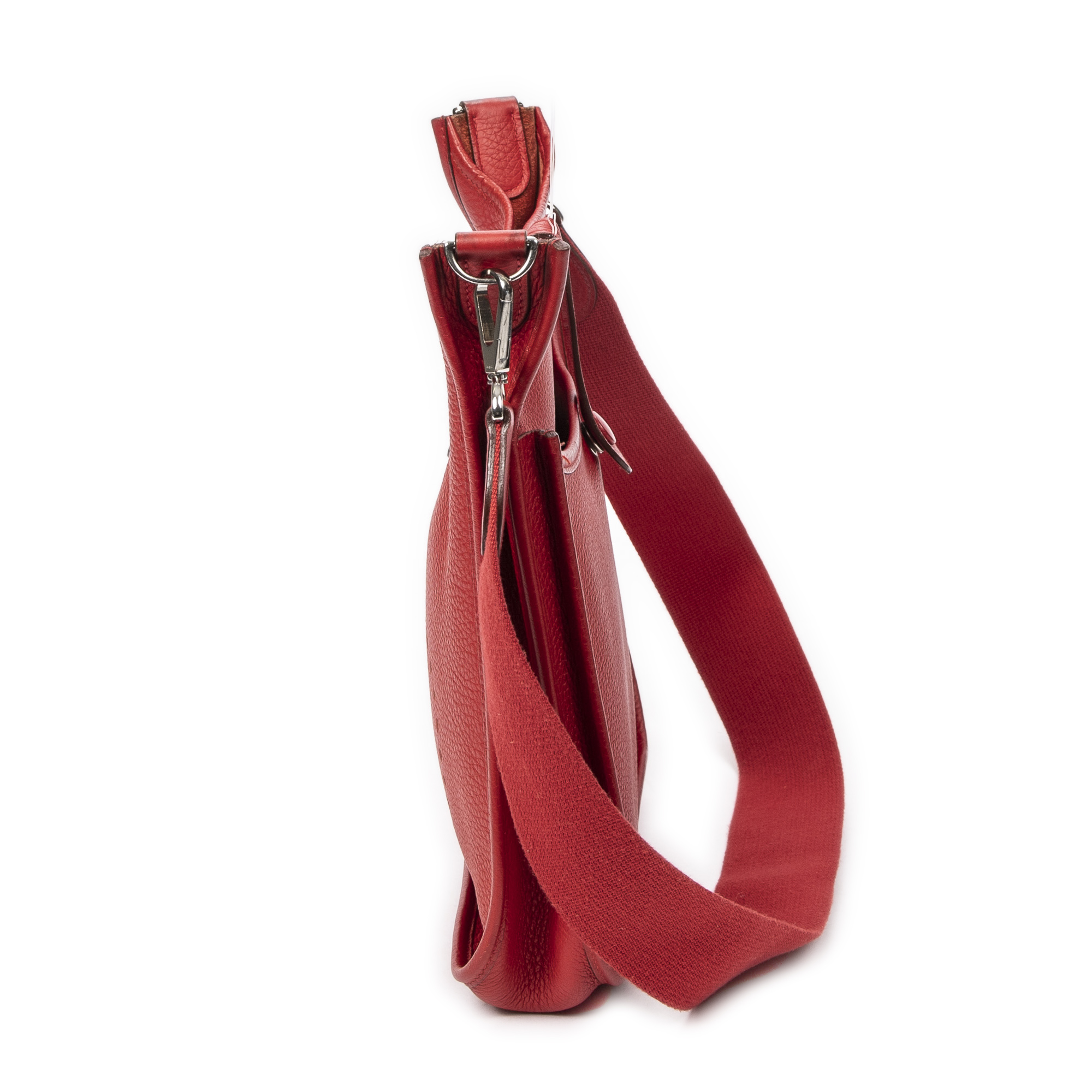 Hermès Shoulder Bag Evelyne II PM in Rouge Clemence Leather and Palladium hardware. The product is in Excellent Condition (A).