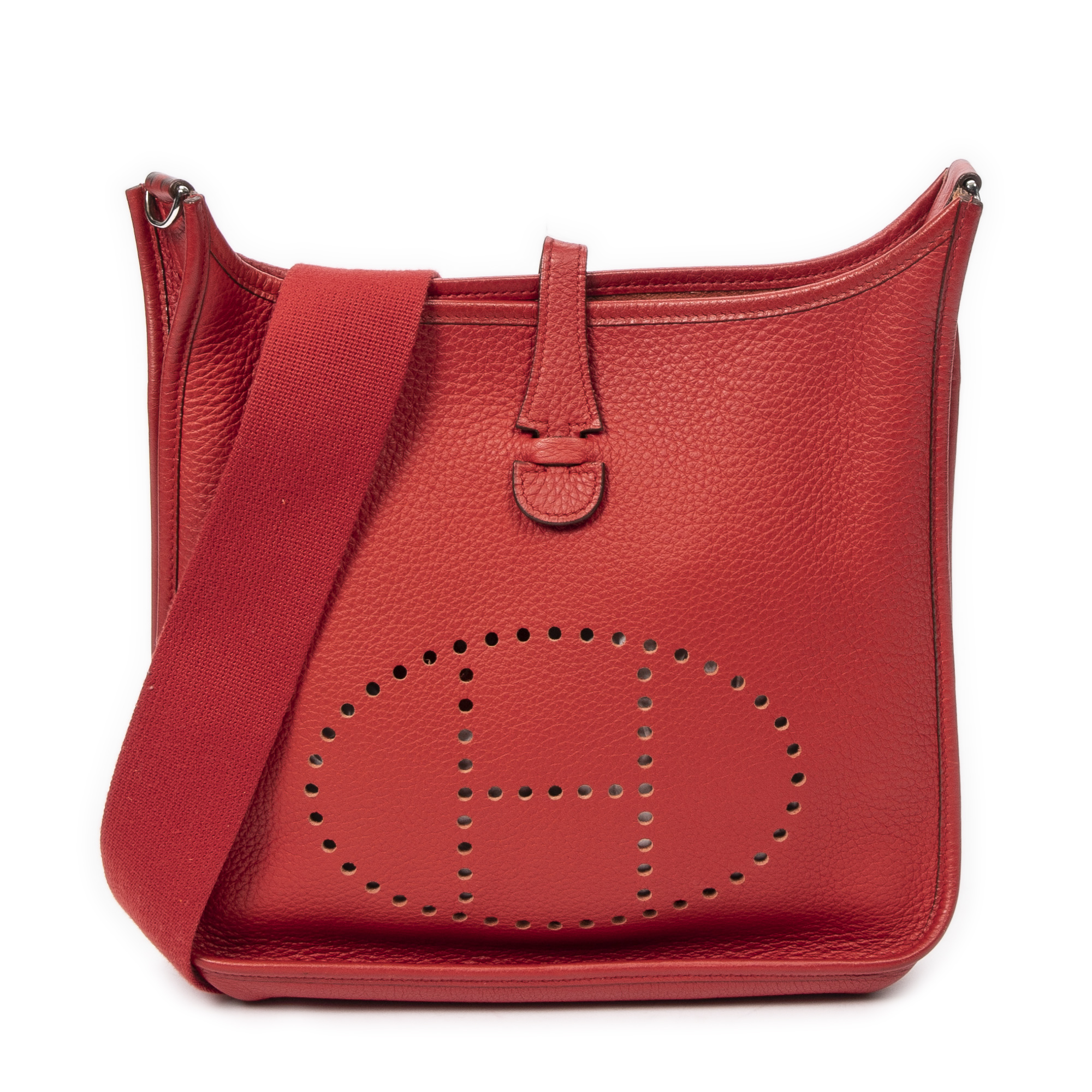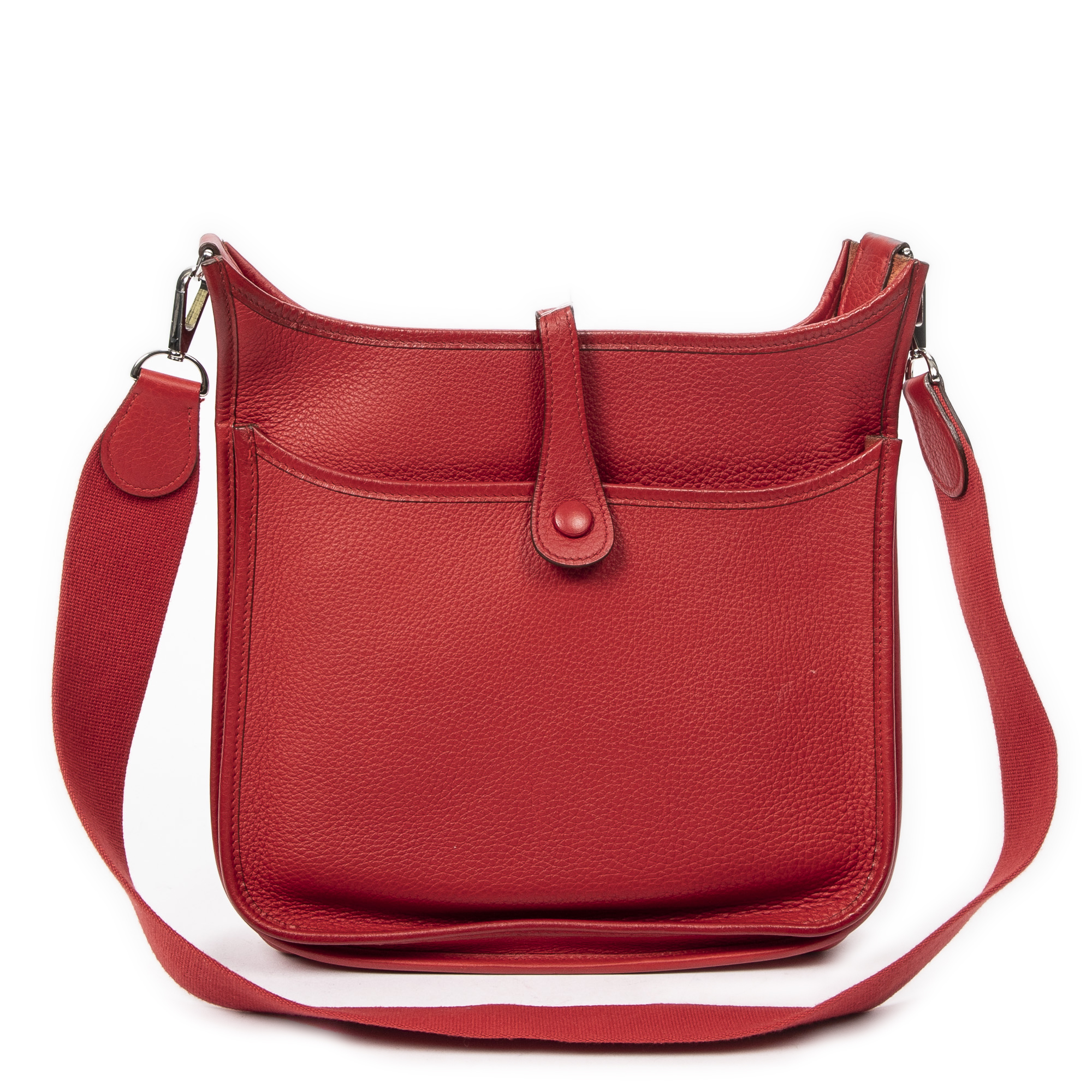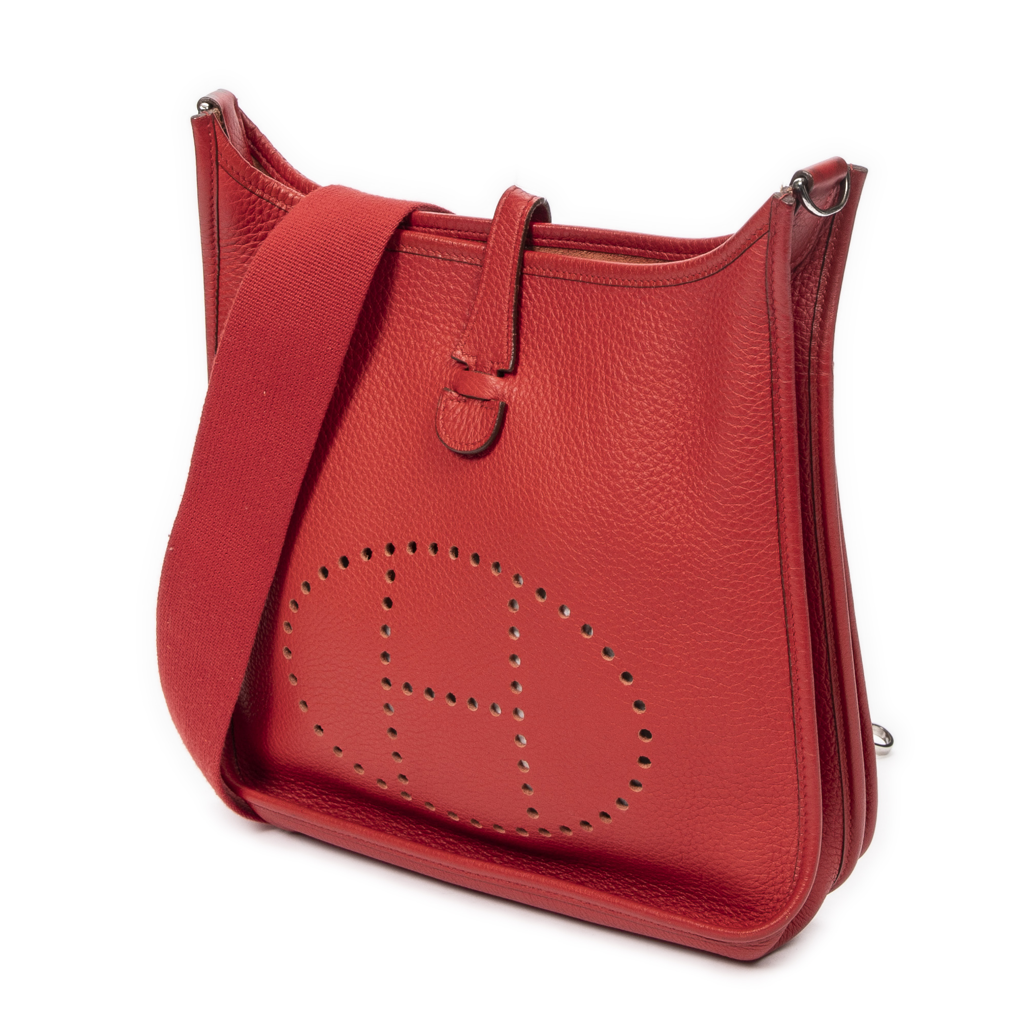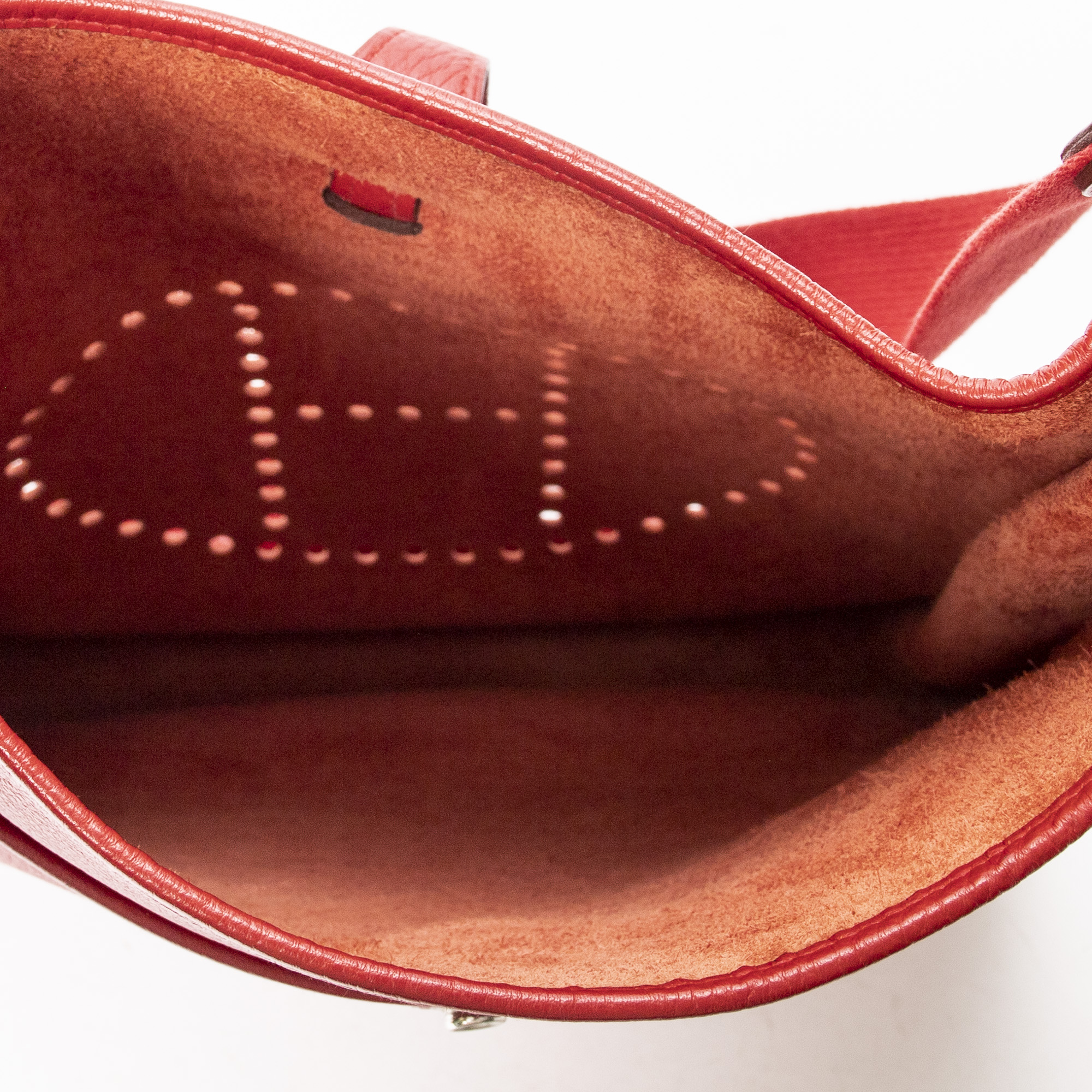Hermès Shoulder Bag Evelyne II PM in Rouge Clemence Leather and Palladium hardware. The product is in Excellent Condition (A).