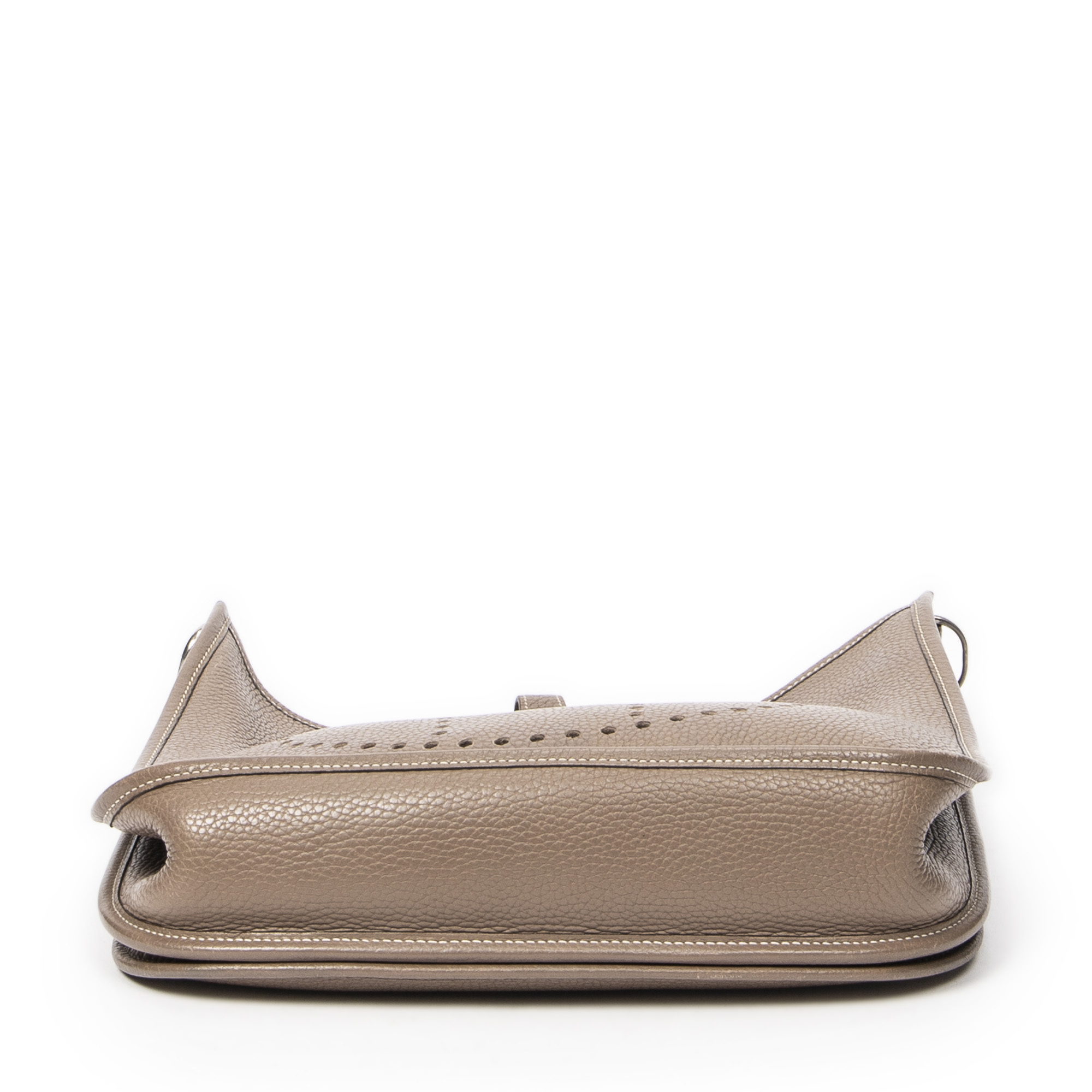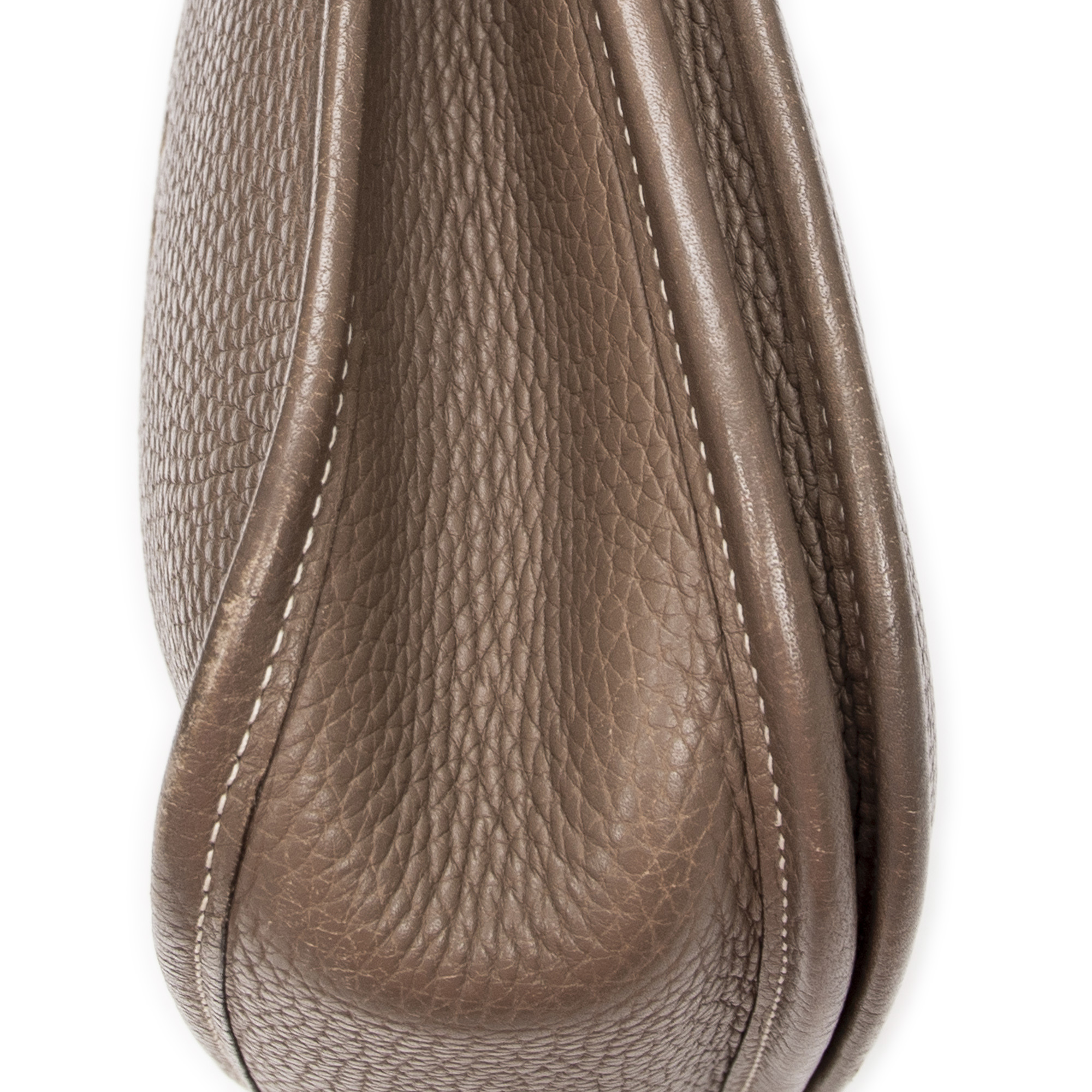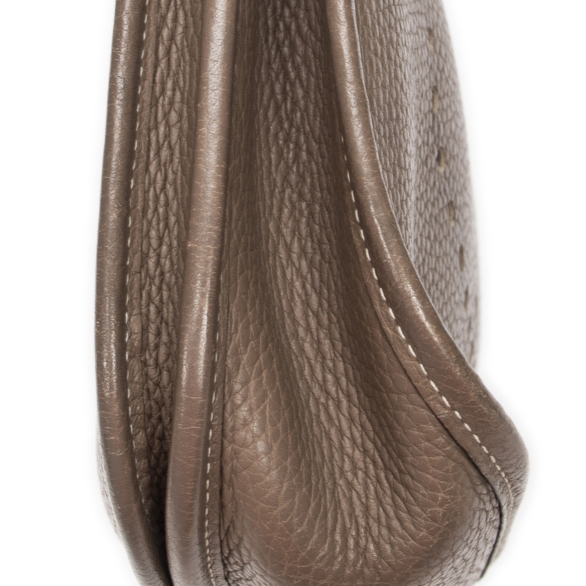 Hermès Shoulder Bag Evelyne II PM in Etoupe Clemence Leather and Palladium hardware. The product is in Excellent Condition (A).