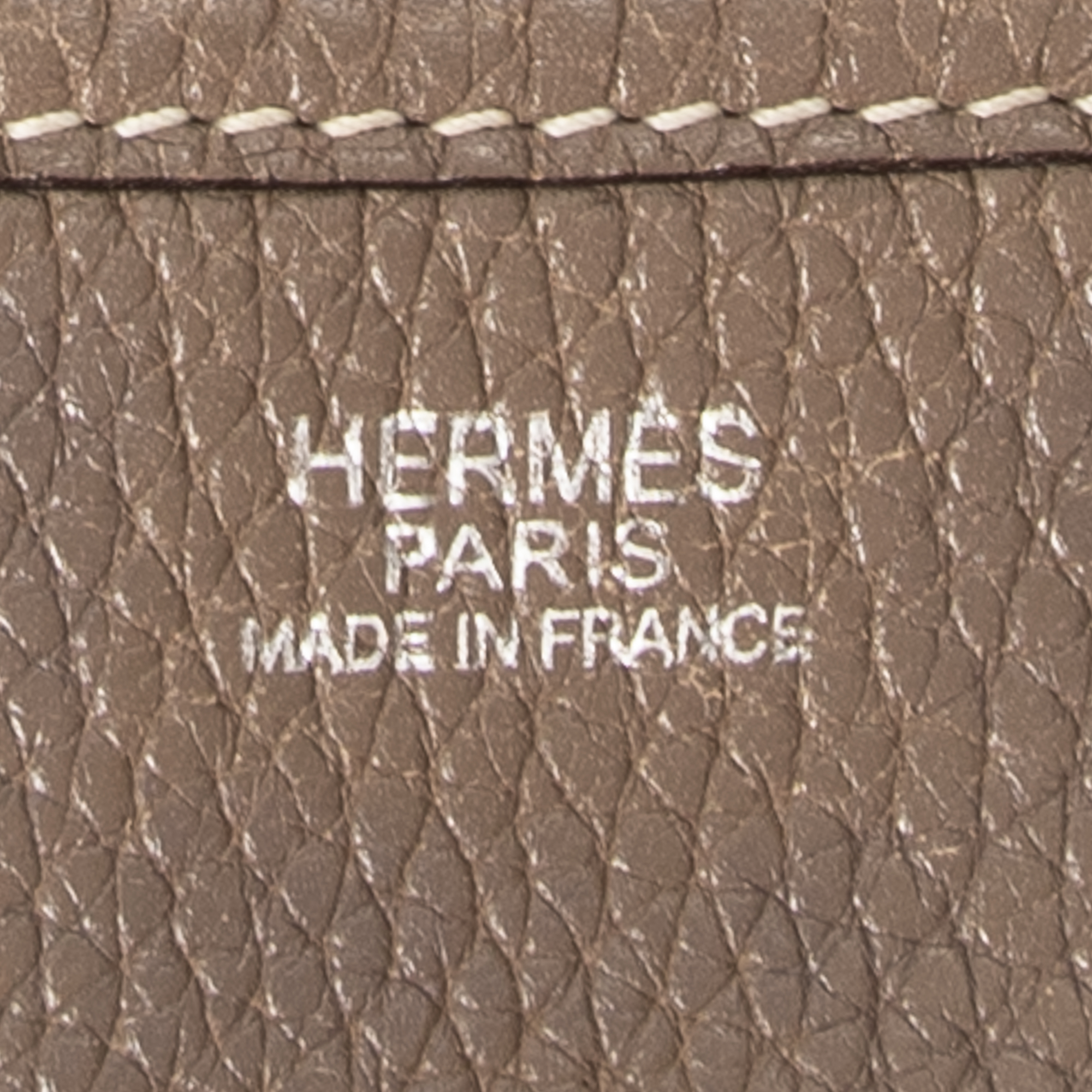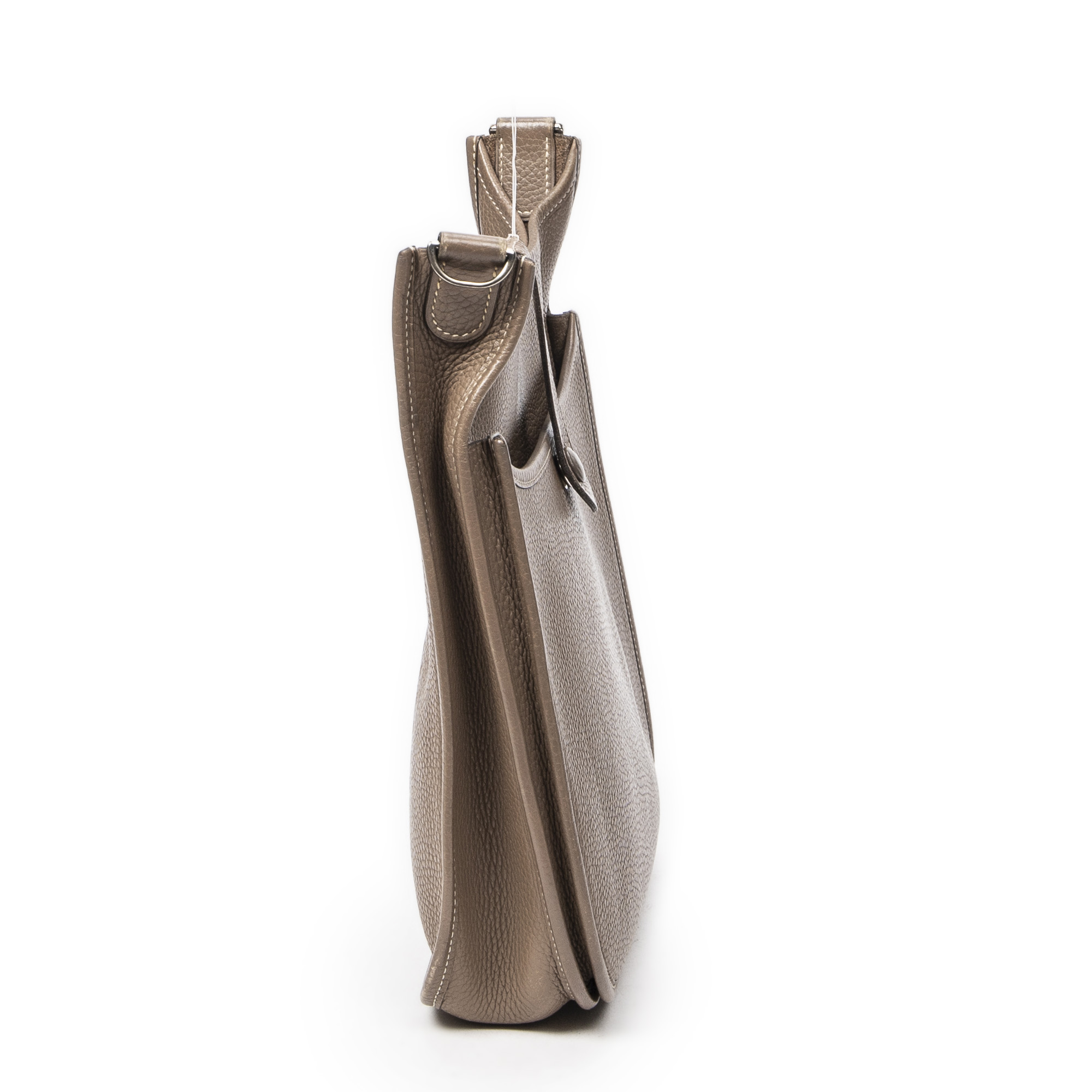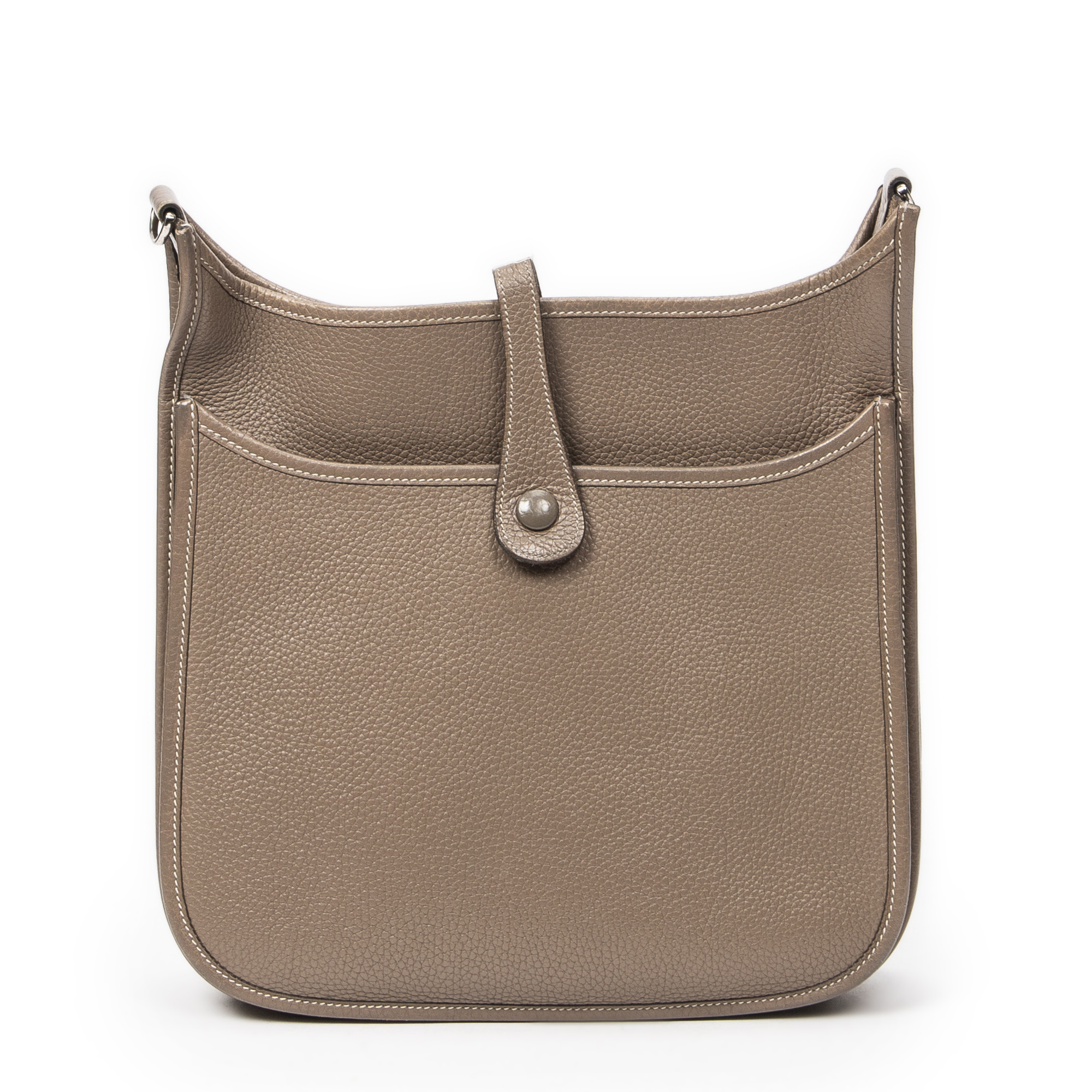 Hermès Shoulder Bag Evelyne II PM in Etoupe Clemence Leather and Palladium hardware. The product is in Excellent Condition (A).
