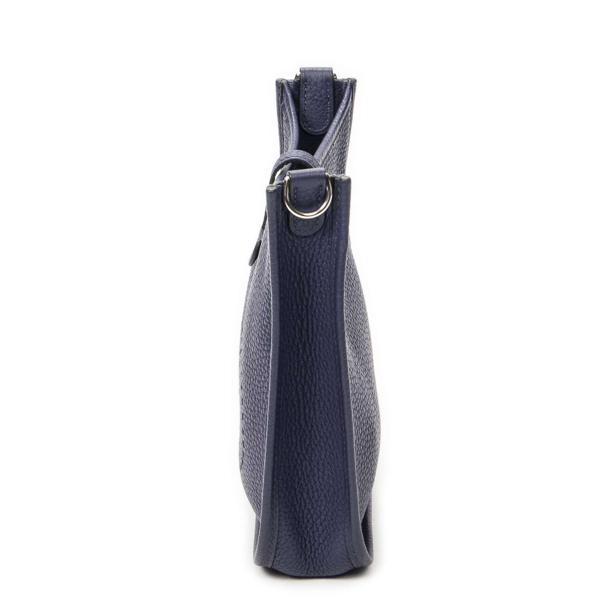 Hermès Shoulder Bag Evelyne TPM in Bleu Encre Clemence Leather and Palladium hardware. The product is in Perfect Condition (AA).