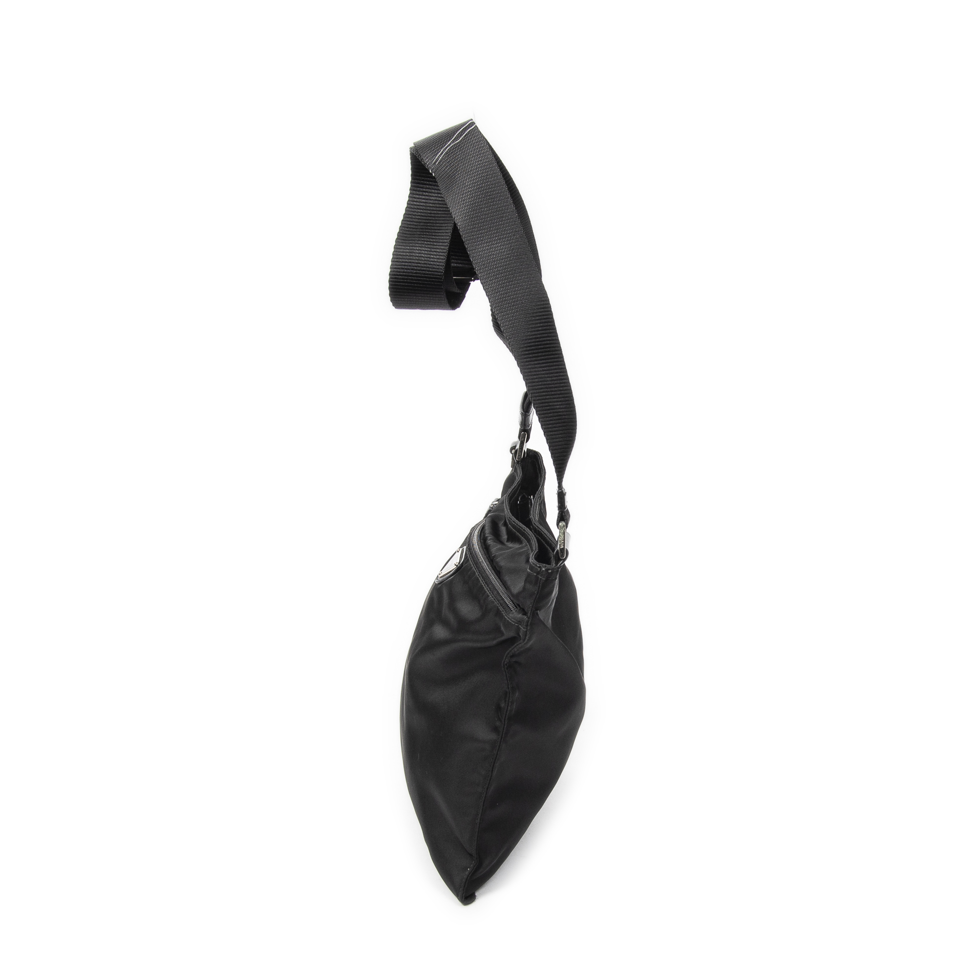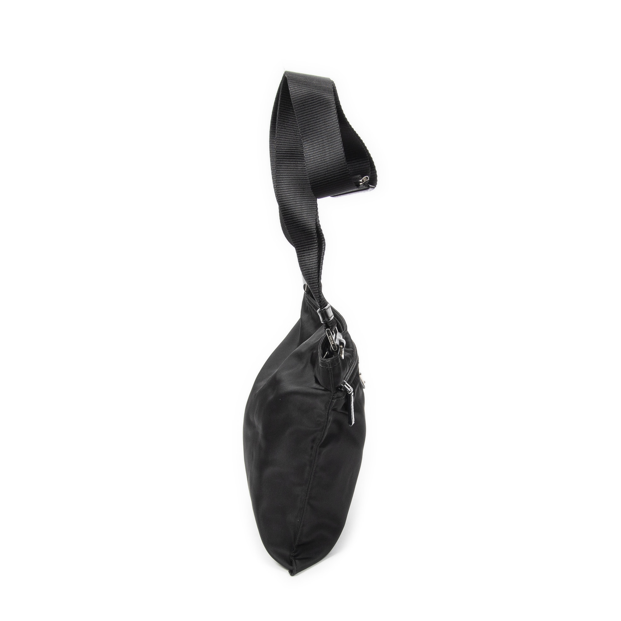 Prada Shoulder Bag Flat Messenger Crossbody in Black Nylon Canvas and Silver hardware. The product is in Excellent Condition (A).