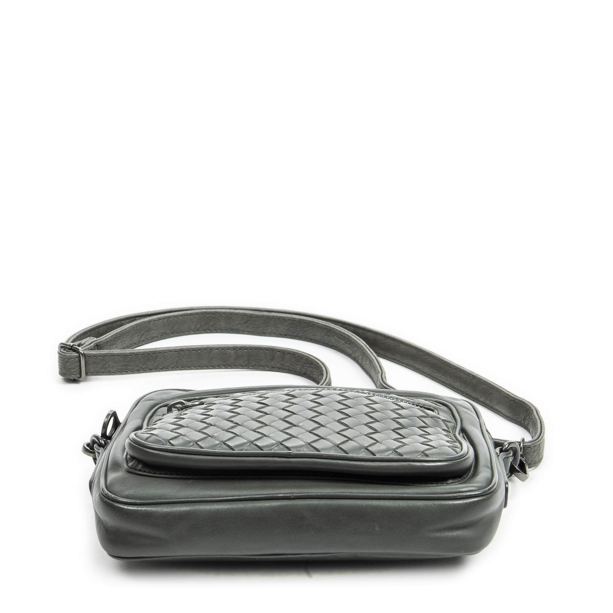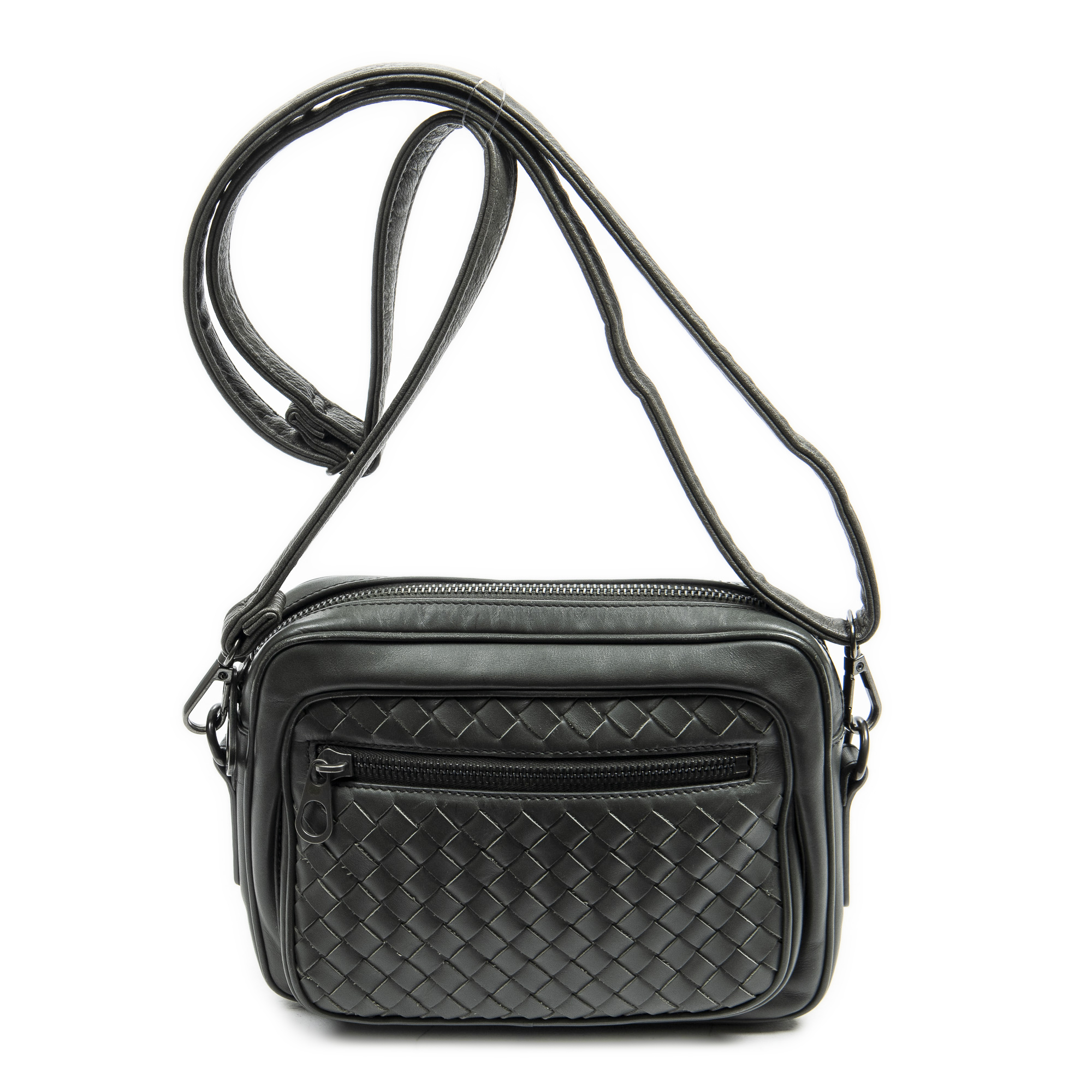 Bottega Veneta Shoulder Bag Front Pocket Camera Bag in Green Smooth Calfskin/Intrecciato Leather and Aged Brass hardware. The product is in Excellent Condition (A).