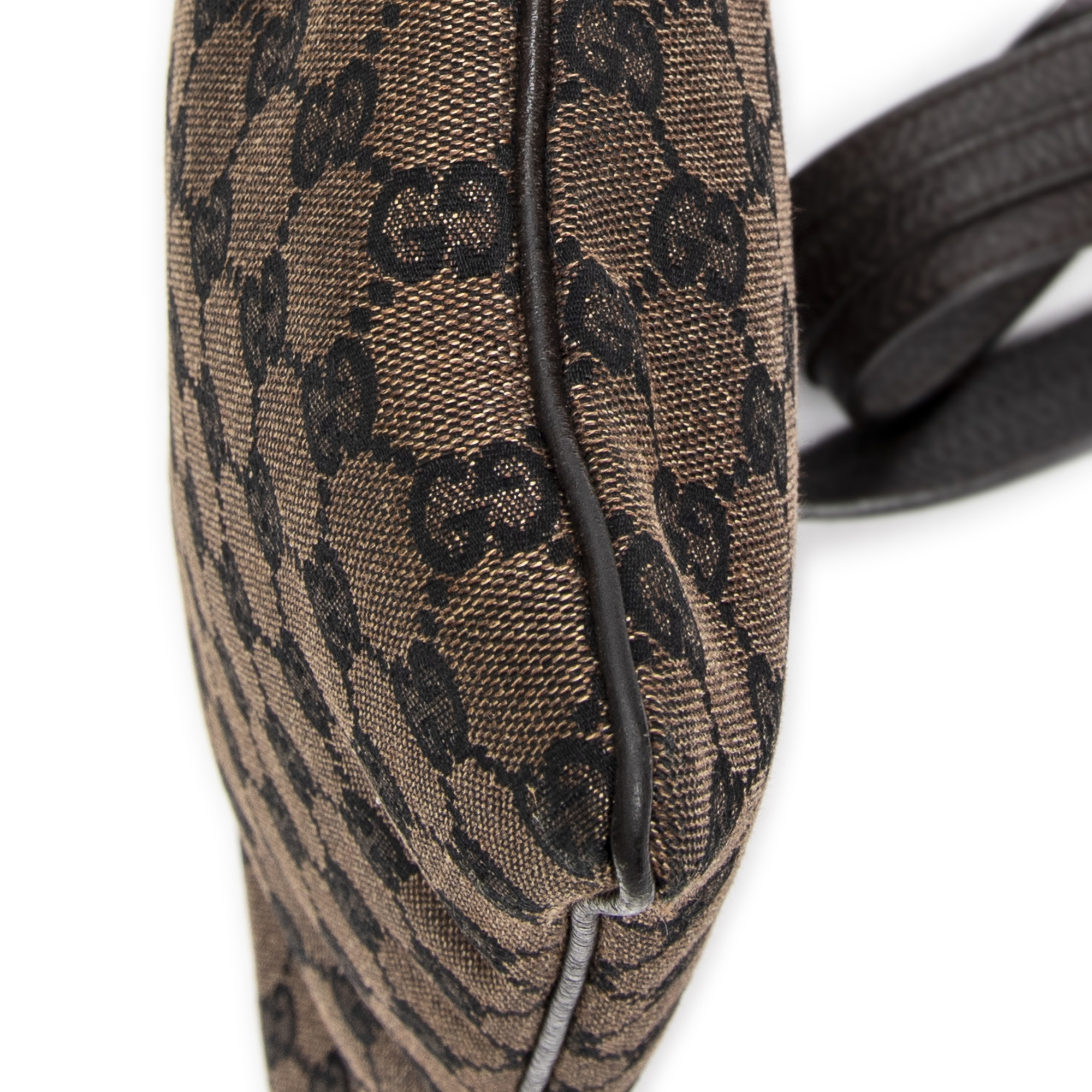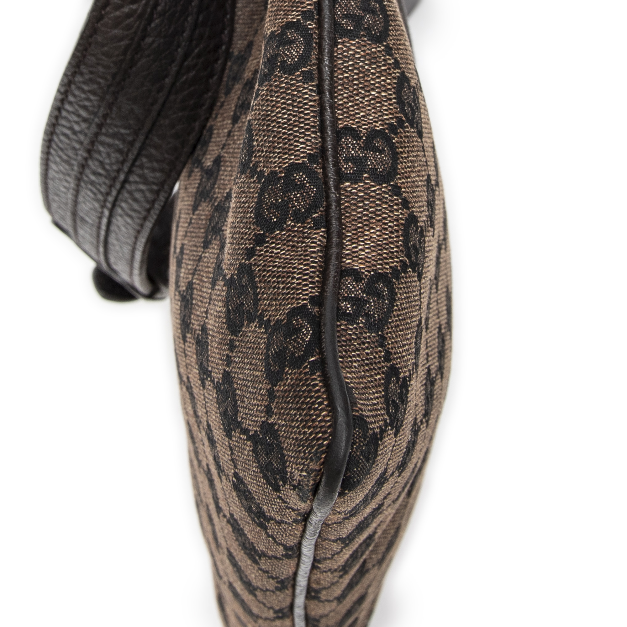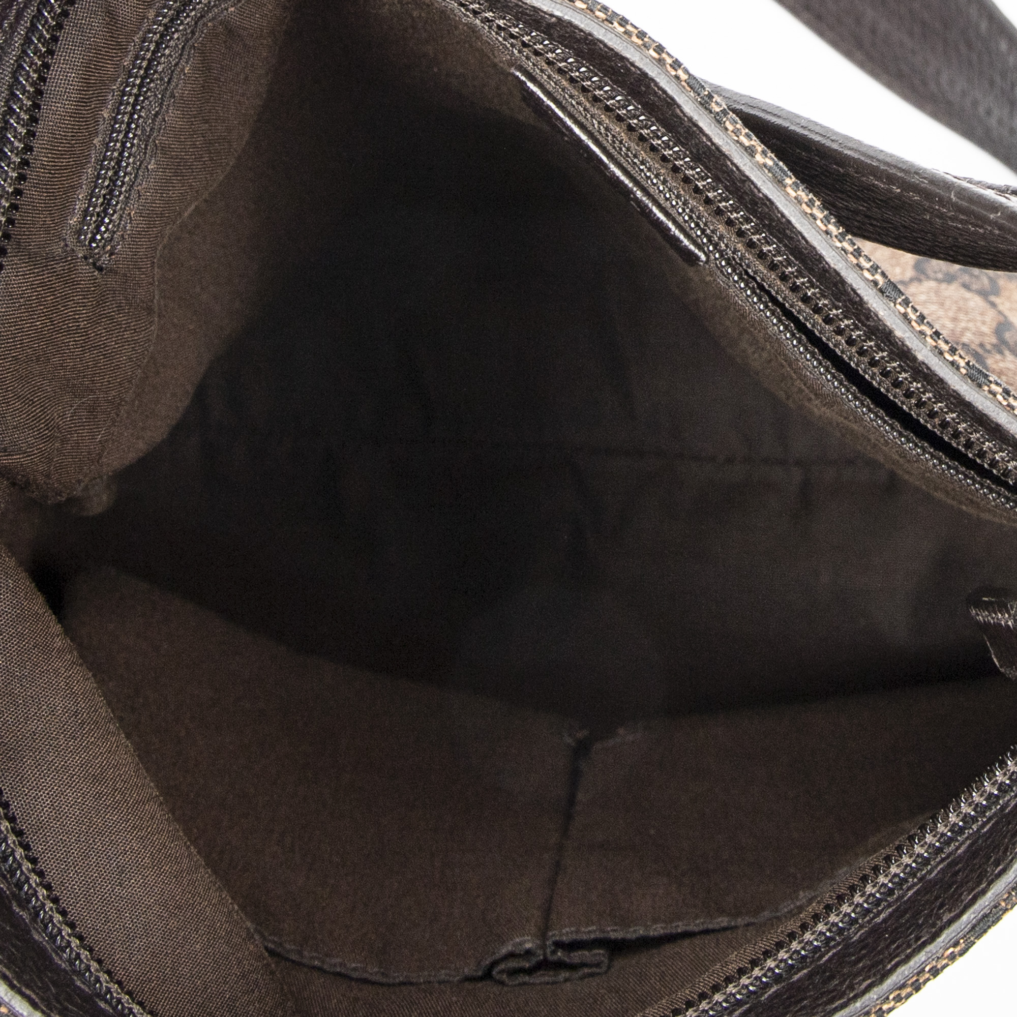 Gucci Shoulder Bag Front Pocket Flat Messenger in Dark Brown Monogrammed Canvas and Silver hardware. The product is in Excellent Condition (A).