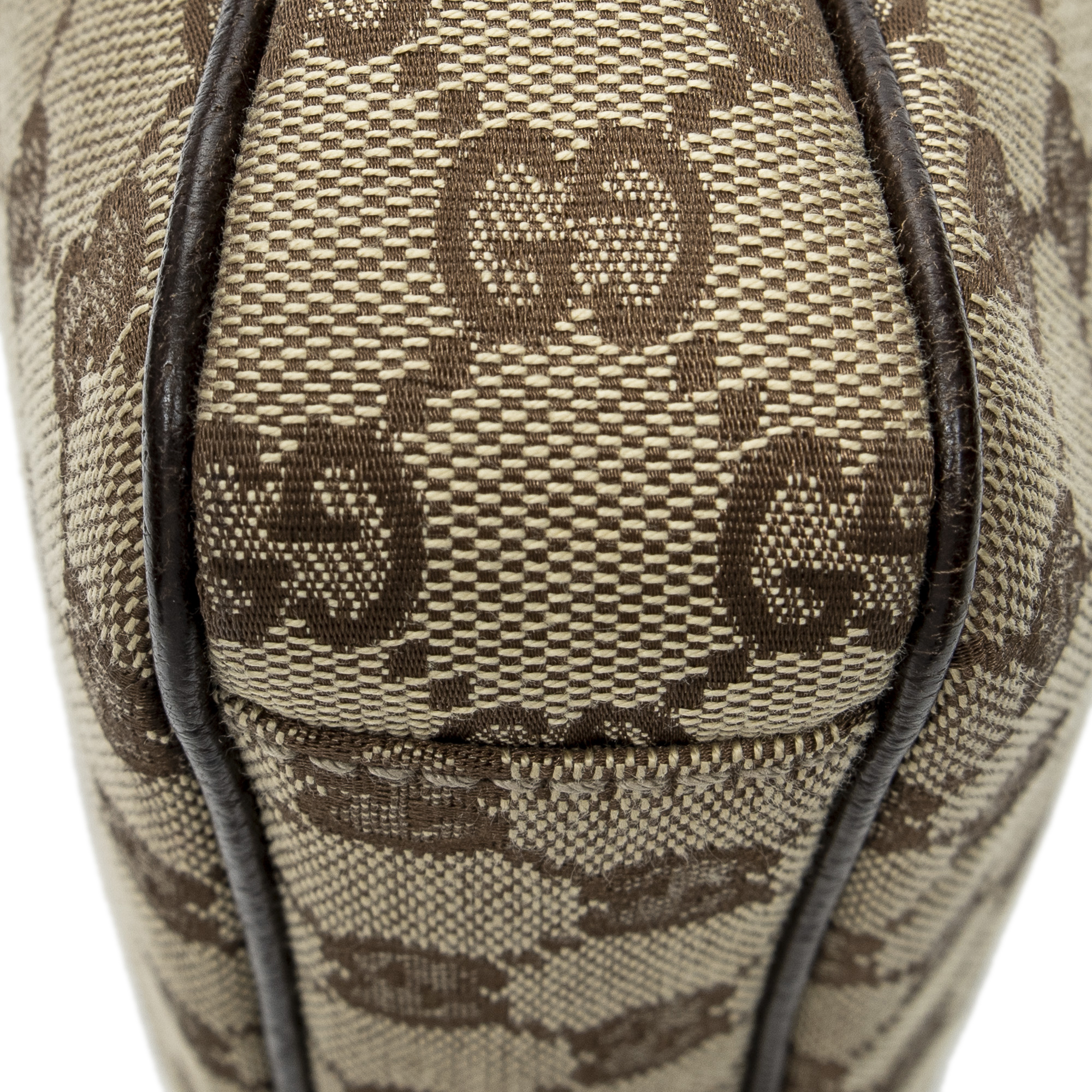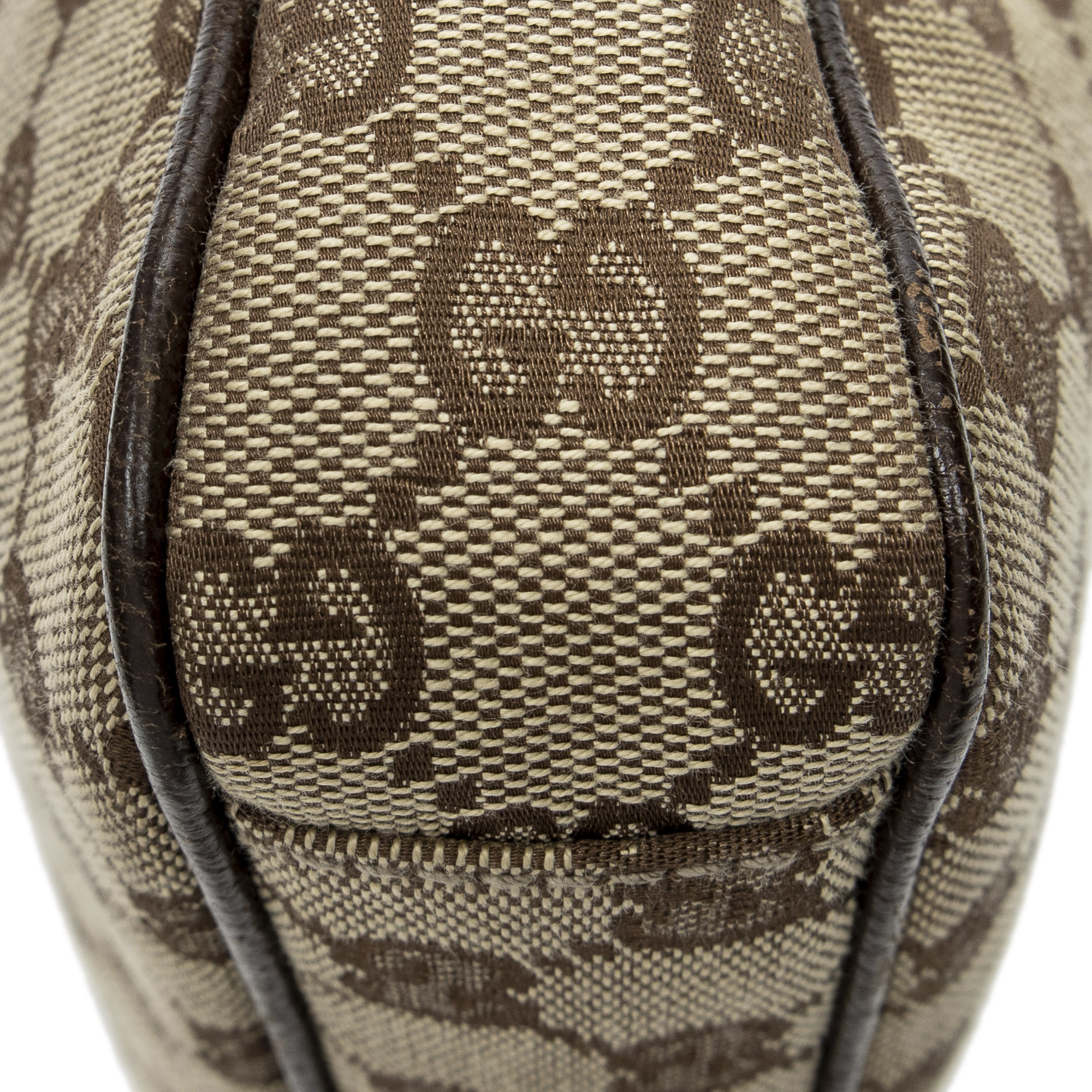 Gucci Shoulder Bag Front Pocket Messenger in Brown/Beige Monogrammed Canvas and Silver hardware. The product is in Excellent Condition (A).