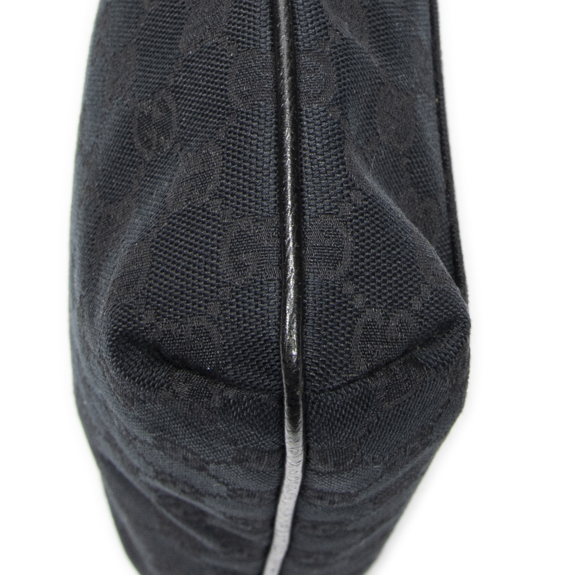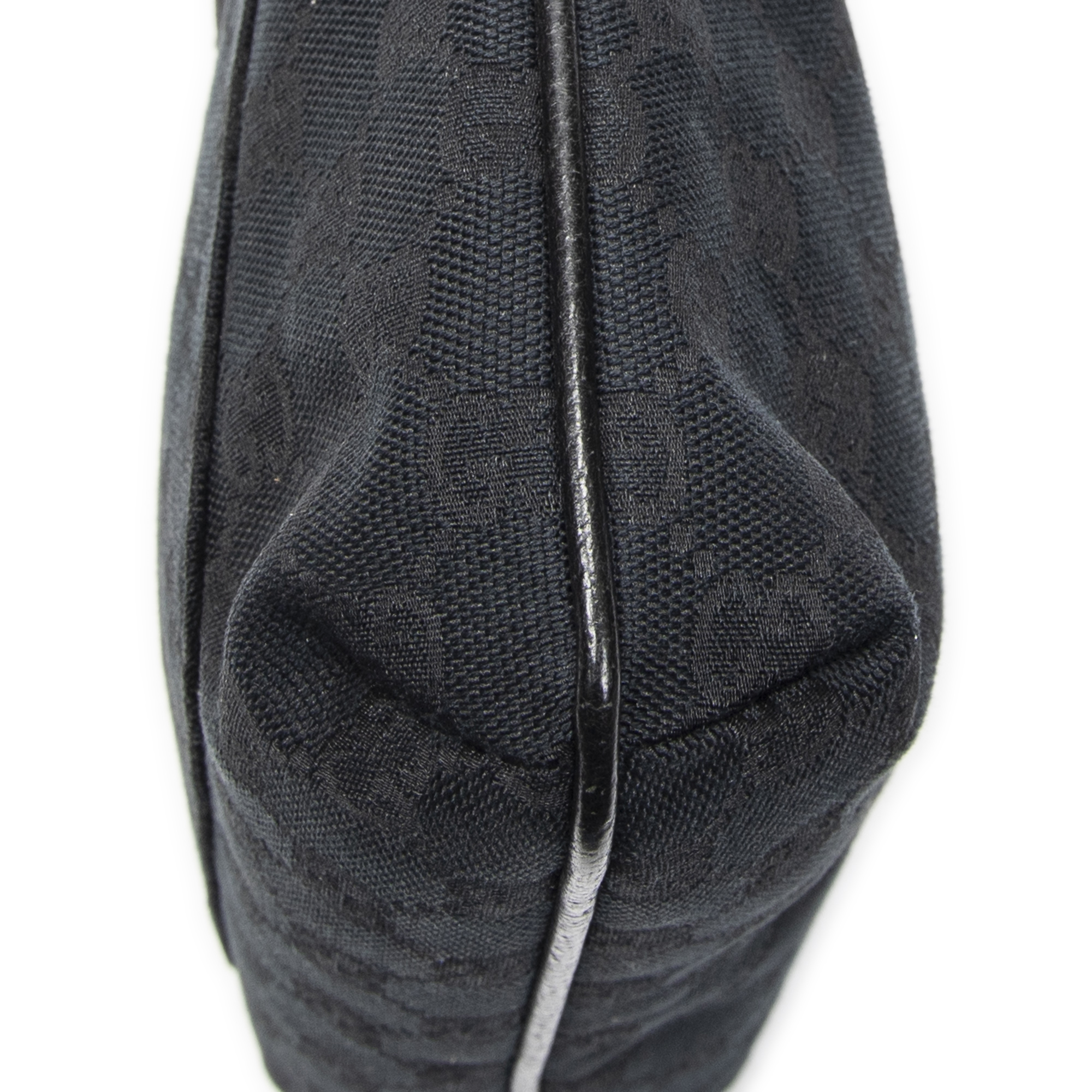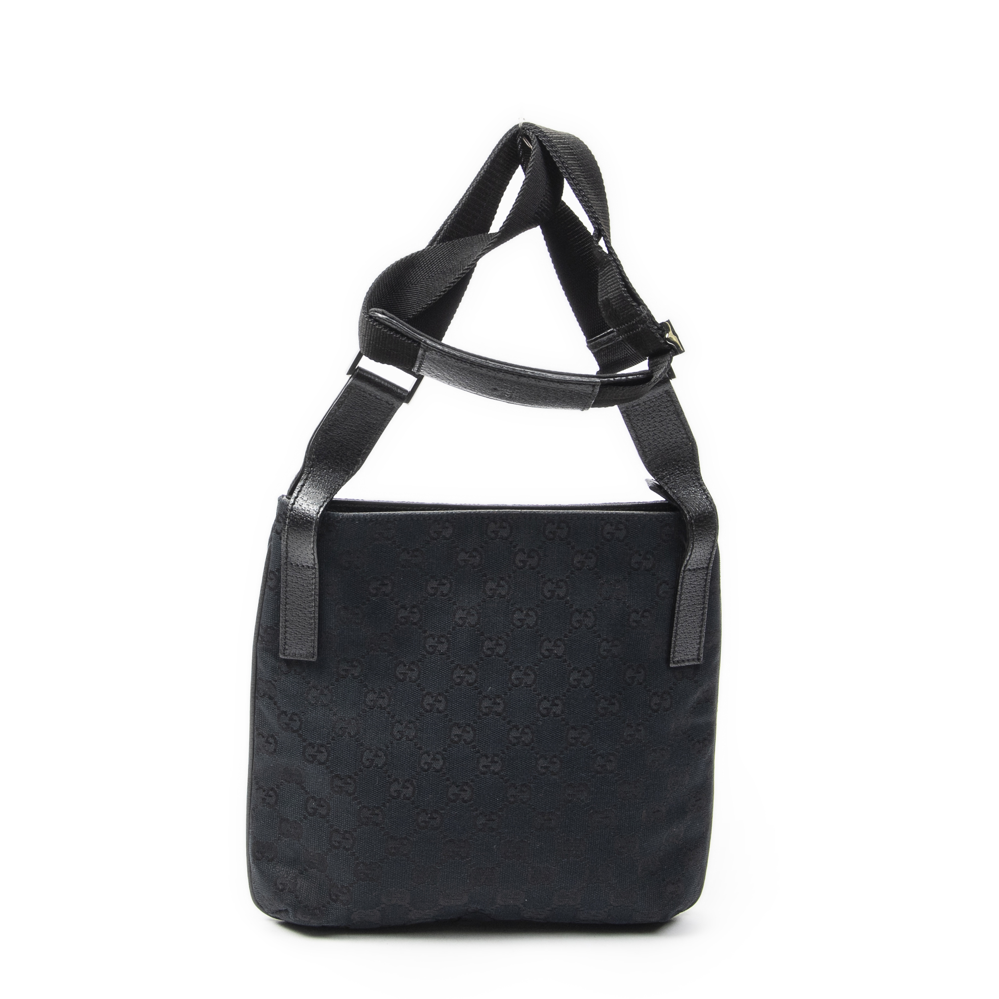 Gucci Shoulder Bag Front Slip Pocket Crossbody in Black Monogrammed Canvas and Silver hardware. The product is in Excellent Condition (A).