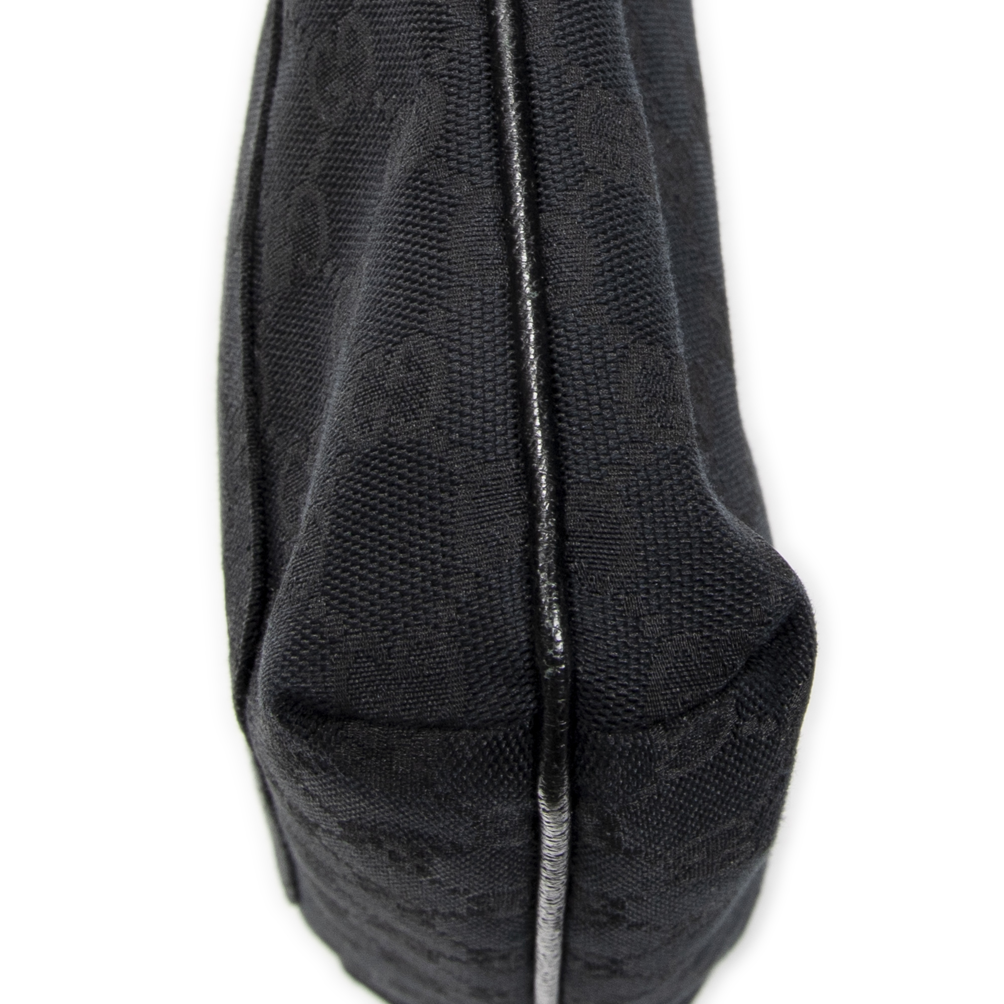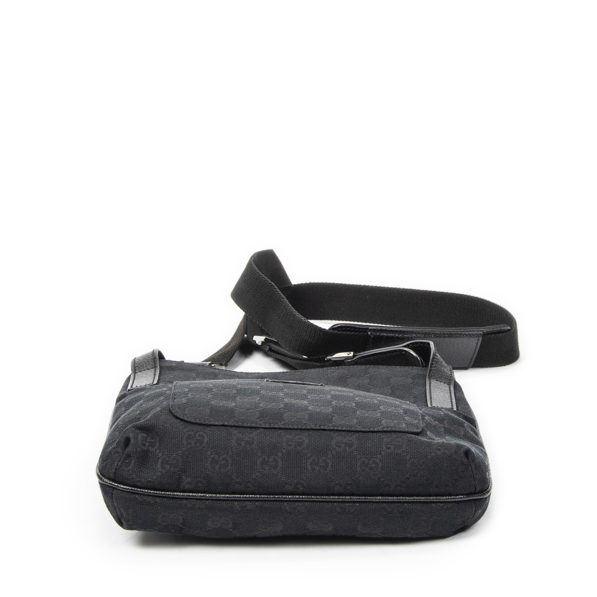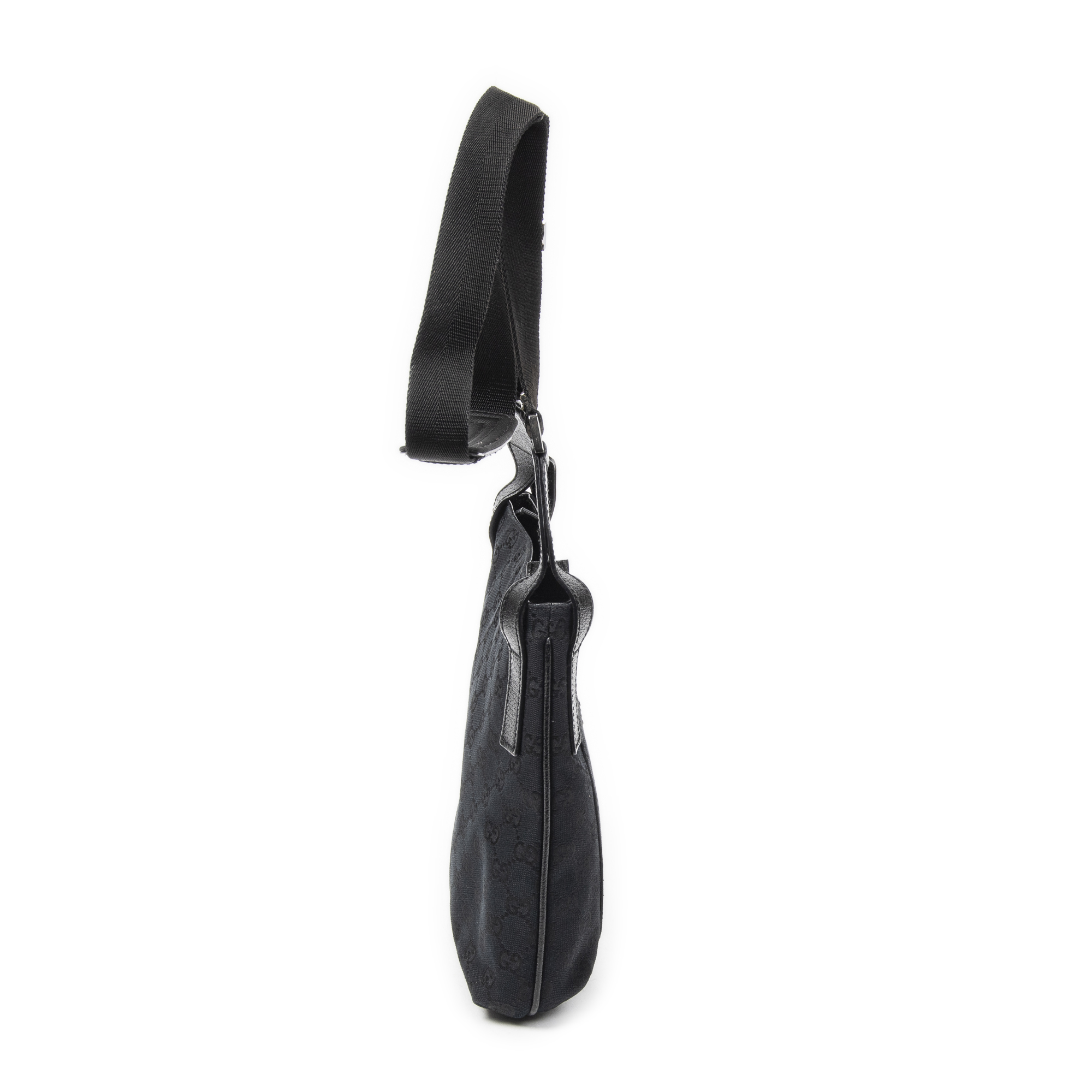 Gucci Shoulder Bag Front Slip Pocket Crossbody in Black Monogrammed Canvas and Silver hardware. The product is in Perfect Condition (AA).
