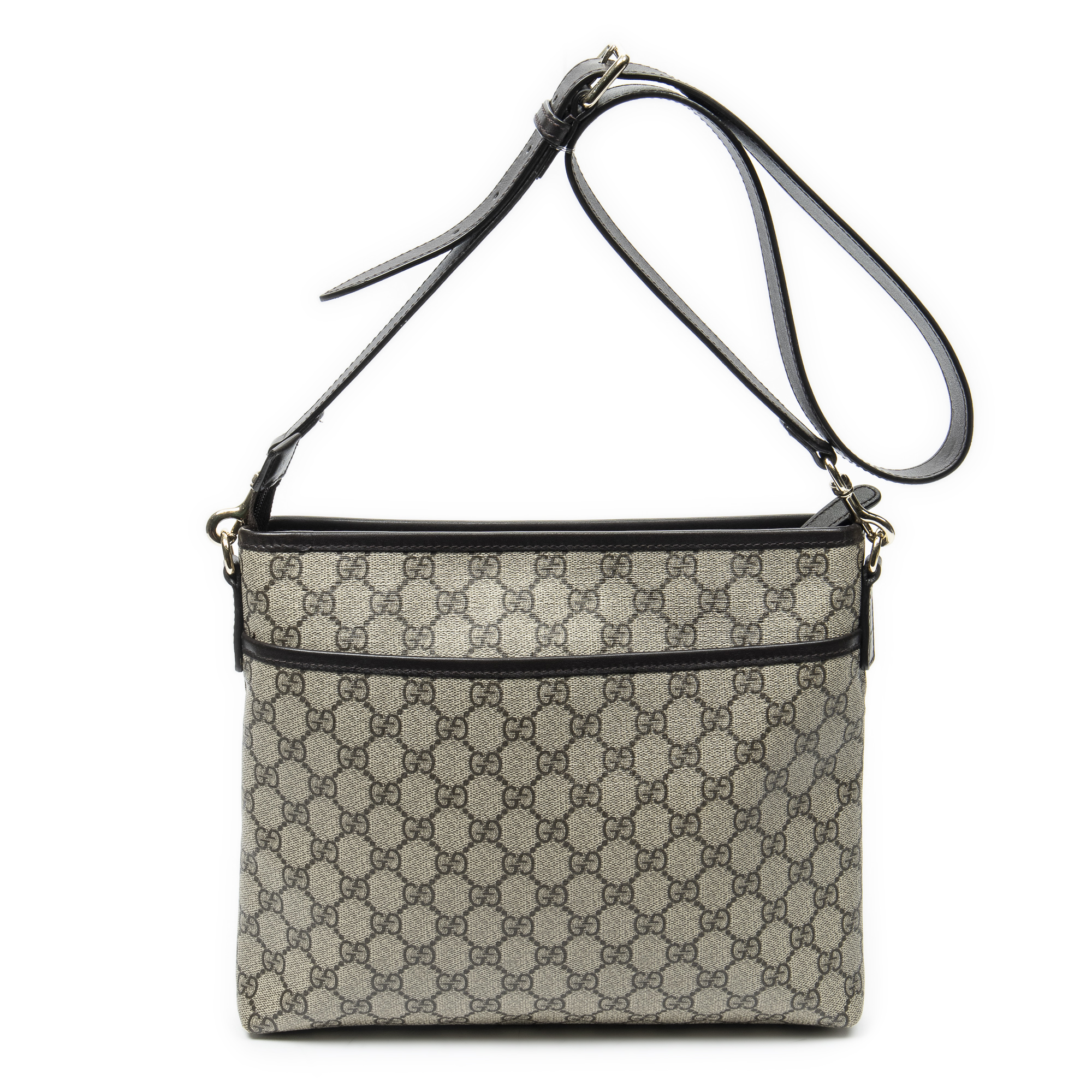 Gucci Shoulder Bag Front Slip Pocket Messenger in Dark Brown/Beige Supreme Coated Canvas and Gold hardware. The product is in Excellent Condition (A).