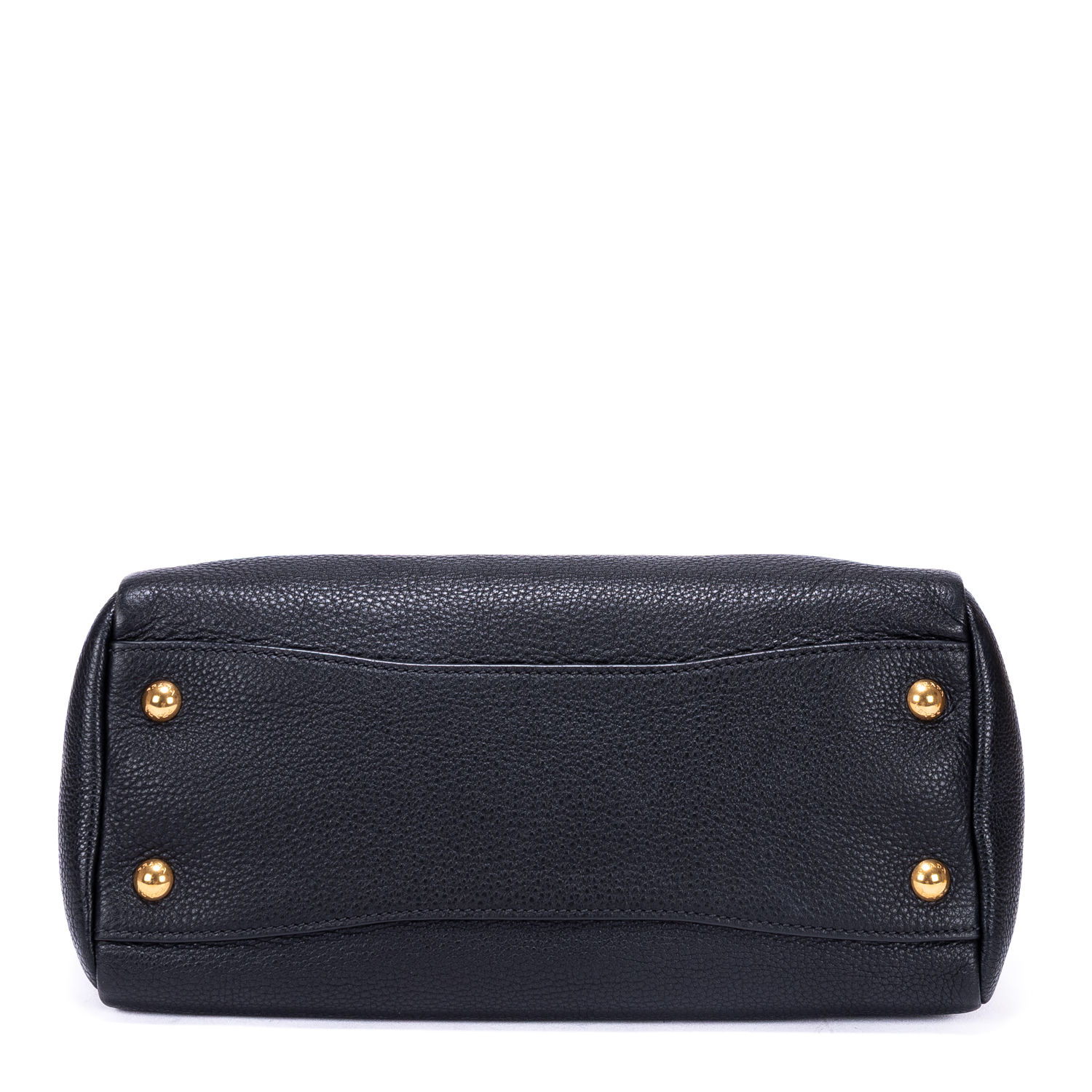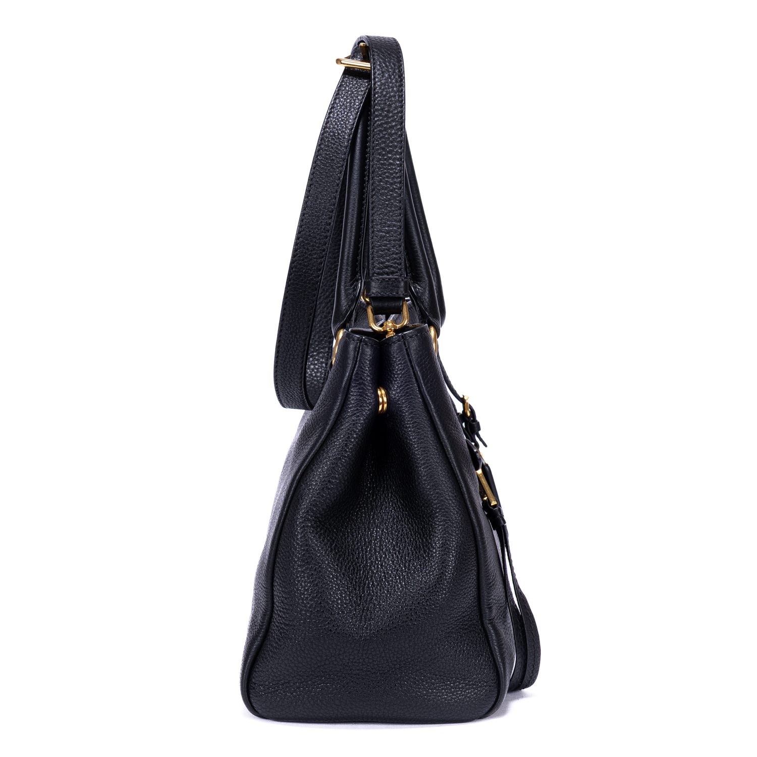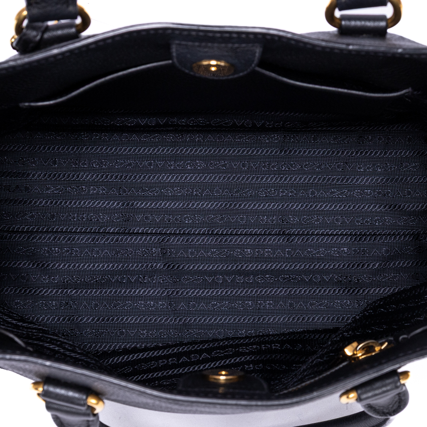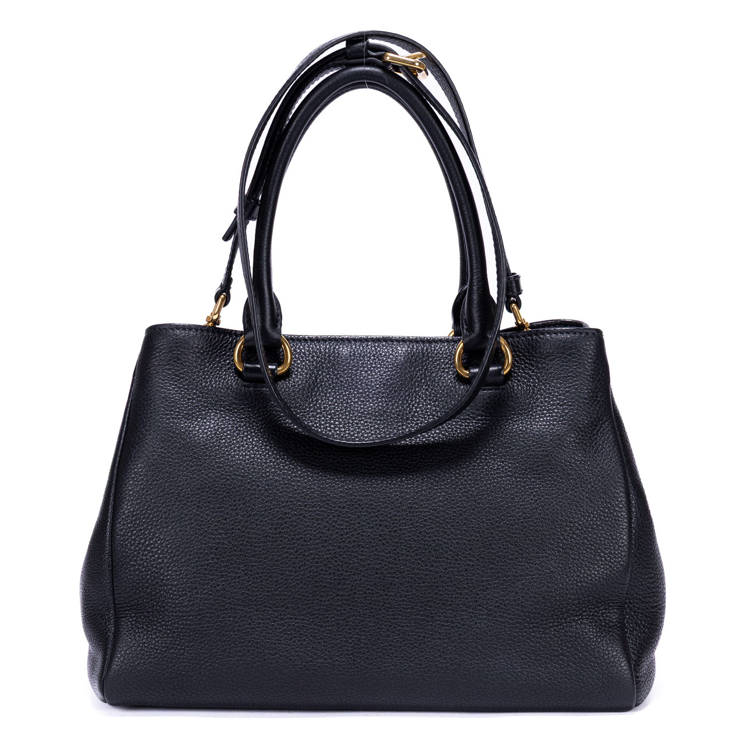 Prada Shoulder Bag Front Zip Pocket Shopping Tote in Black Vitello Phenix Leather and Gold hardware. The product is in Perfect Condition (AA).