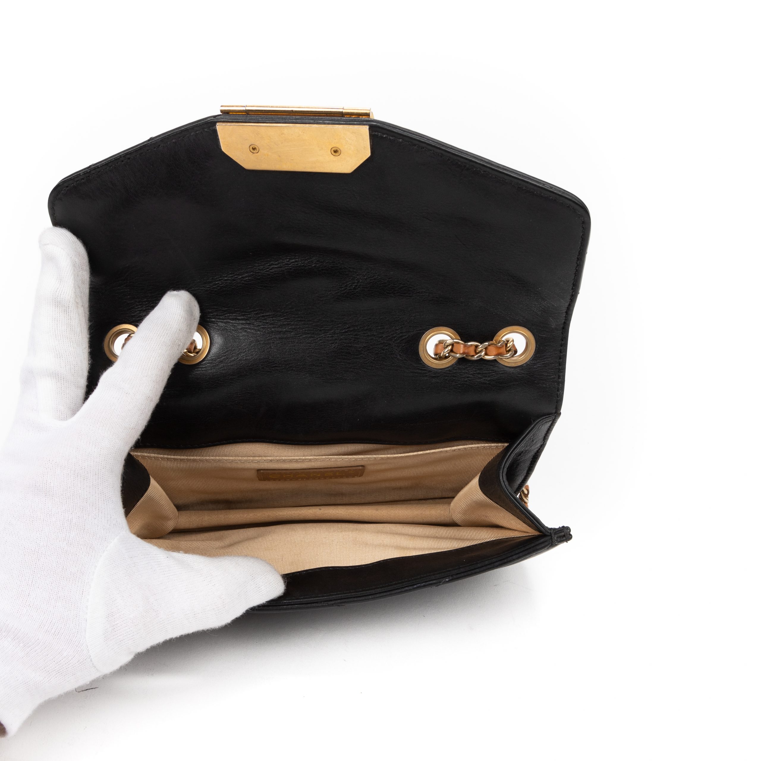 Description : Chanel Shoulder Bag Gabrielle Flap Small in Black Chevron Leather and Gold hardware. The product is in Very Good Condition (AB). Dimensions: 21x13x6 cm SKU: EAG6173 Serial number: 15660808 Accessories Included: Dustbag Delivery: We have a 5 to 7 business days delivery policy, hassle-free and duties/tariffs included! BrandCo Paris finds rare and top condition items at great deals, they are worth your patience! Shop with confidence - All BrandCo Paris items are carefully selected and authenticated by our team of experts. All the items come with an authenticity certificate and packaging delivered by BrandCo Paris. Item Condition Grading Table N (Like New) AA (Perfect Condition) A (Excellent Condition) AB (Very Good Condition) B (Good/Fair)