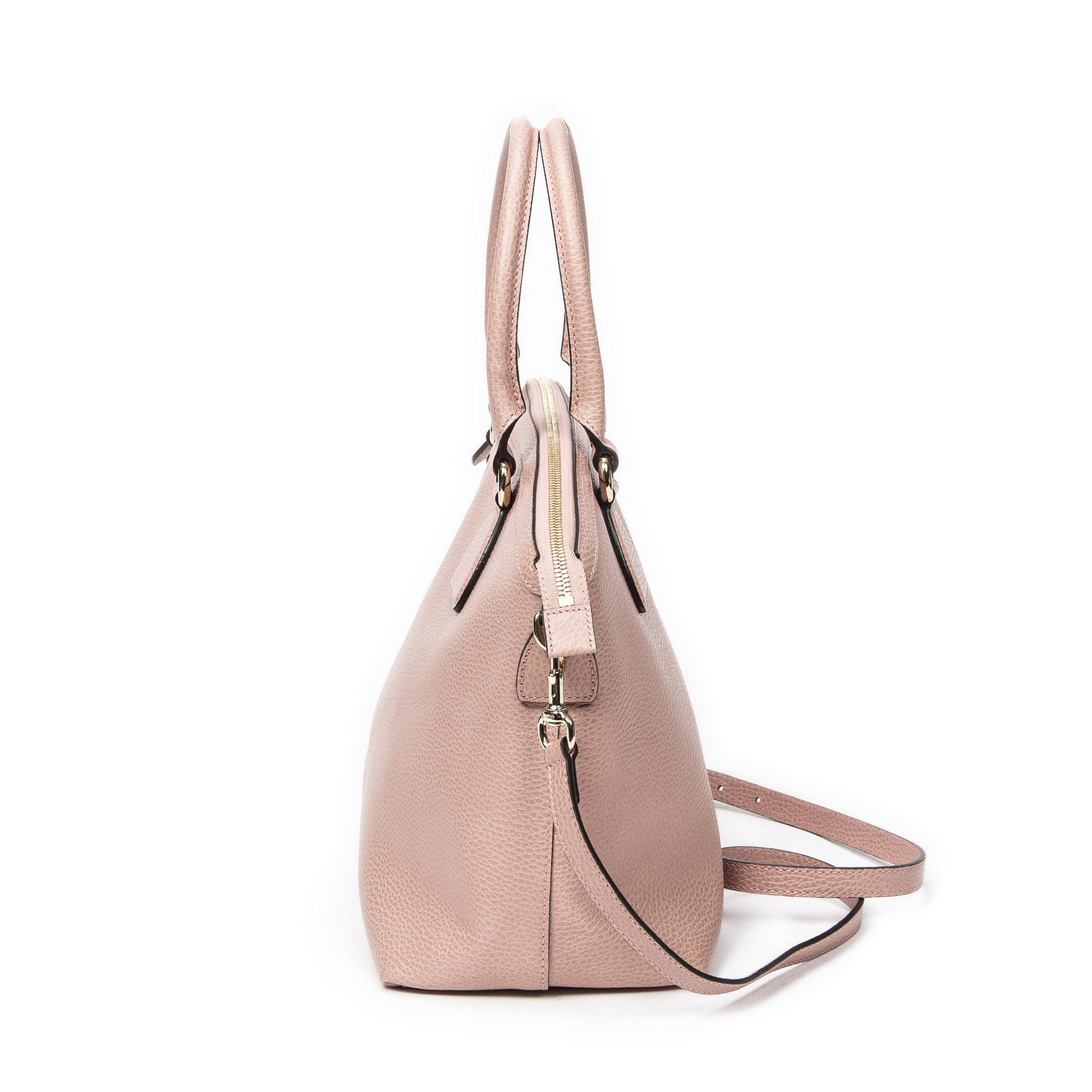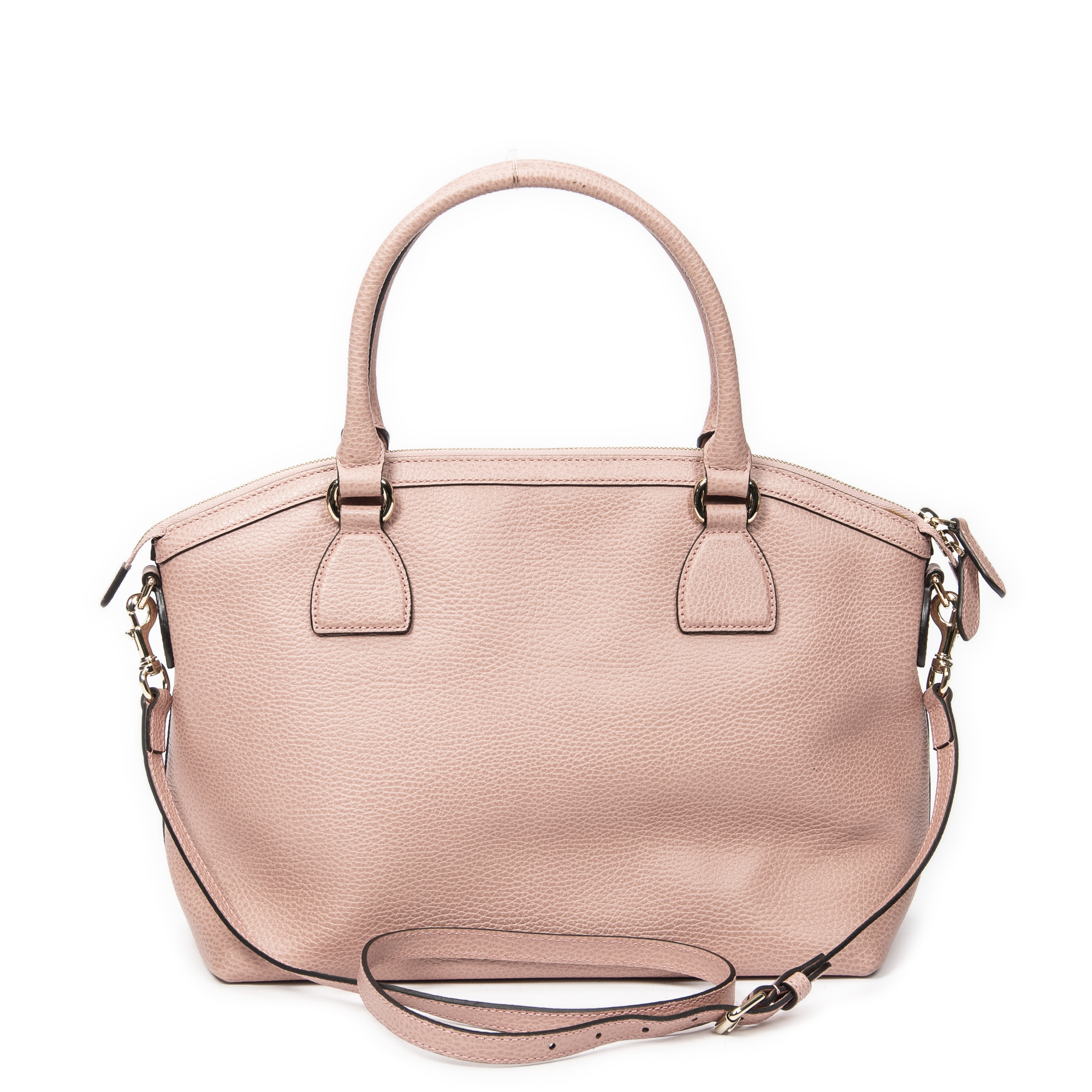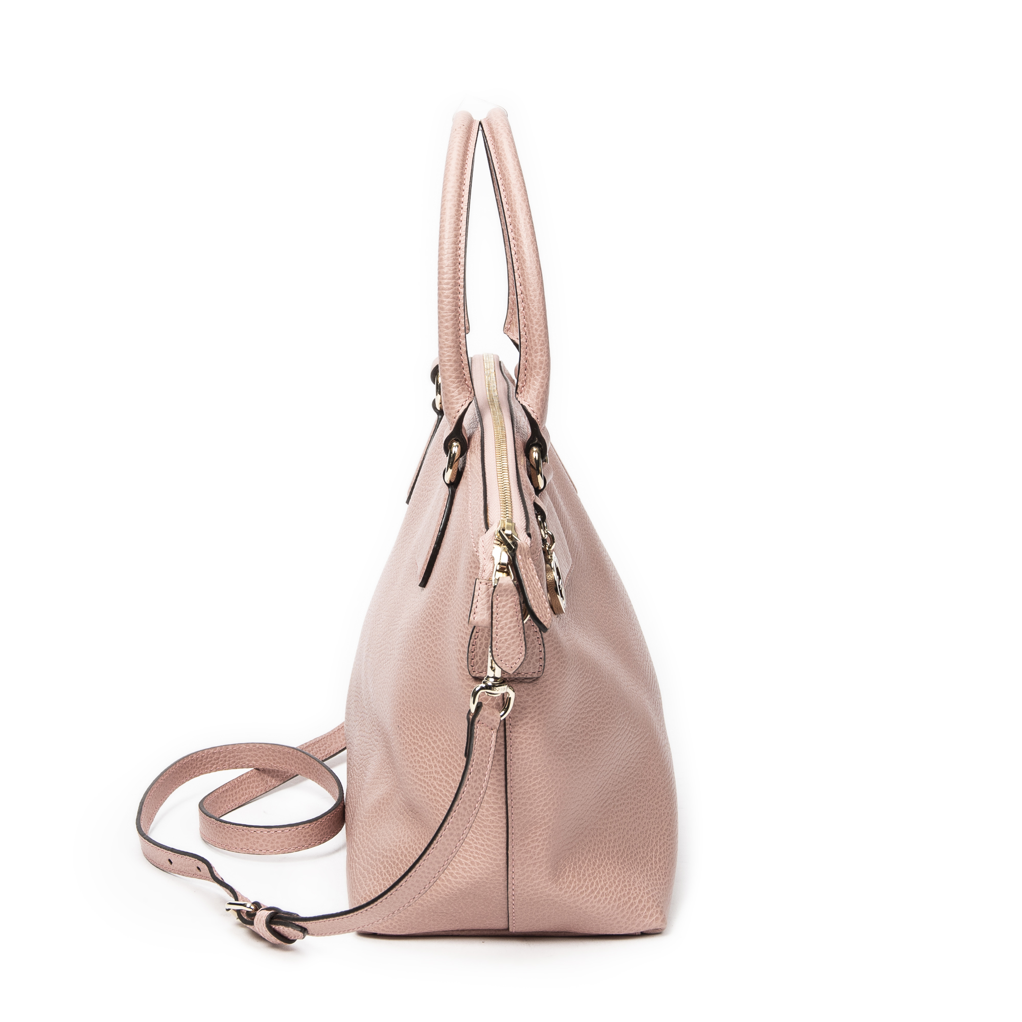 Gucci Shoulder Bag GG Charm Dome Tote in Pink Grained Calfskin Leather and Gold hardware. The product is in Excellent Condition (A).