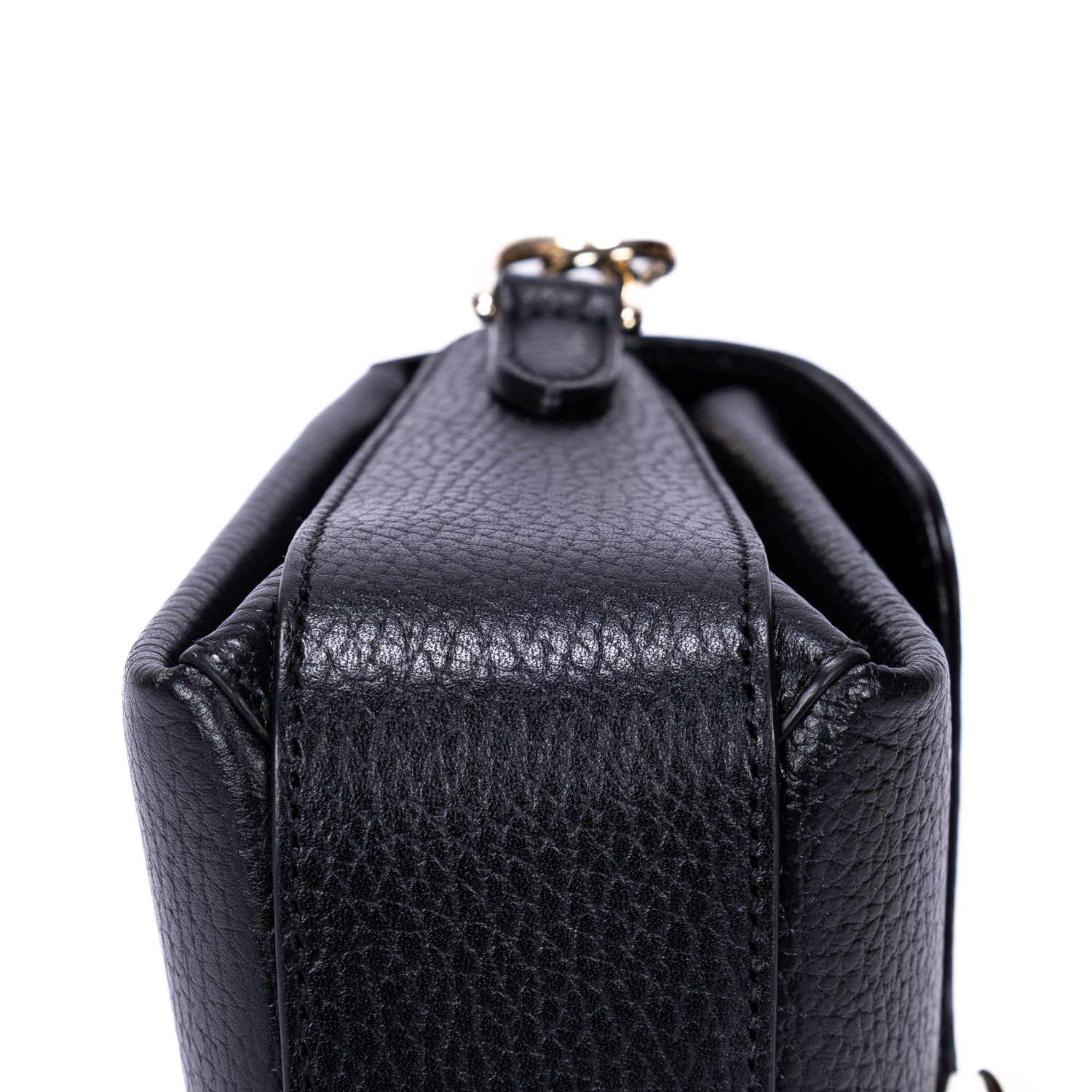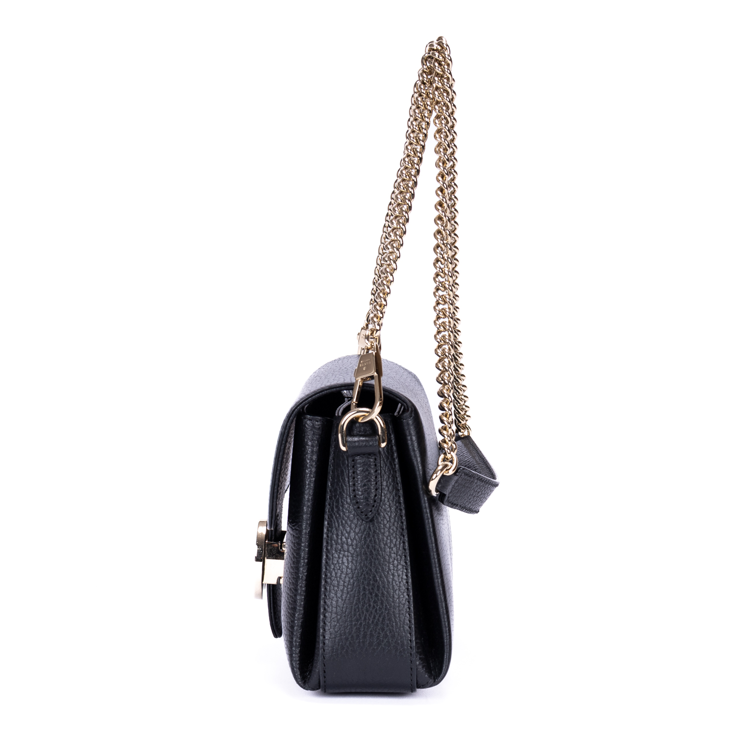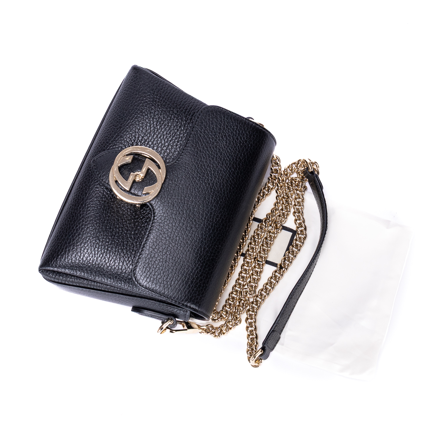 Gucci Shoulder Bag GG Interlocking Crossbody Mini in Black Calfskin Grained Leather and Gold hardware. The product is in Perfect Condition (AA).