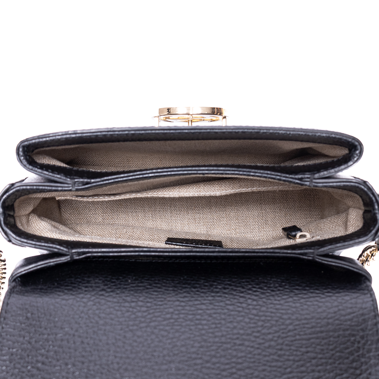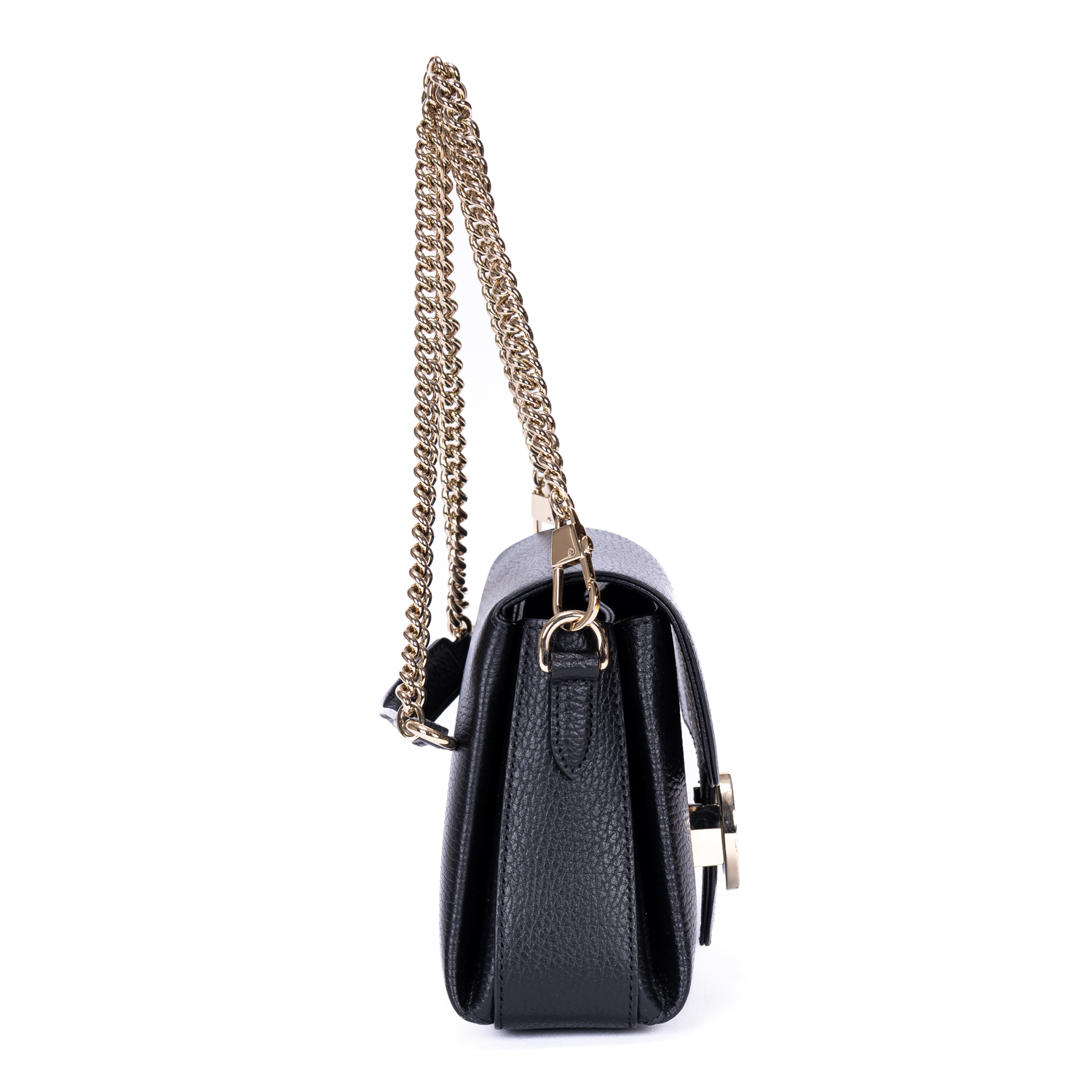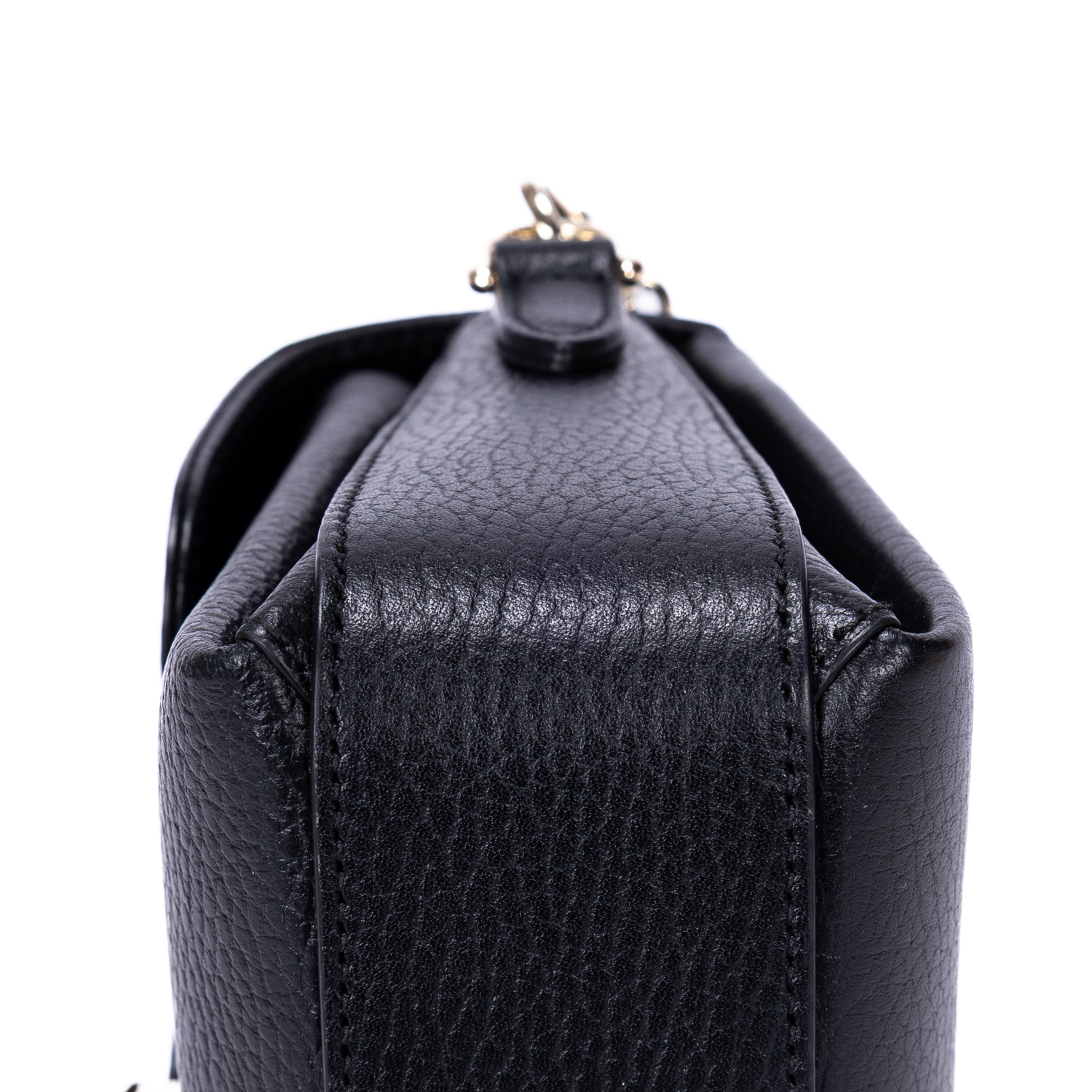 Gucci Shoulder Bag GG Interlocking Crossbody Mini in Black Calfskin Grained Leather and Gold hardware. The product is in Perfect Condition (AA).