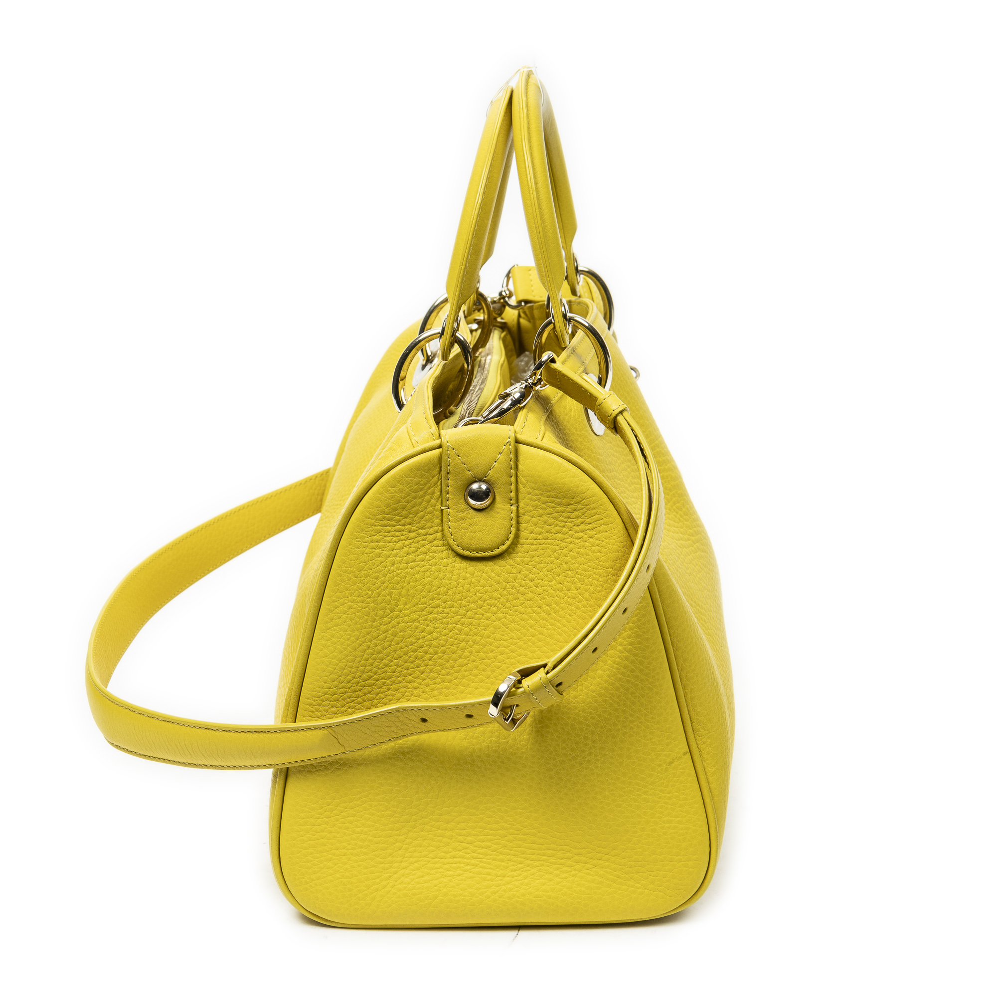 Description : Dior Shoulder Bag Granville Polochon in Yellow Grained Calfskin Leather and Silver hardware. The product is in Excellent Condition (A). Dimensions: 31x21x18 cm SKU: ABC2954 Serial number: 09-BO-0173 Accessories Included: Long Strap; Charms Delivery: We have a 5 to 7 business days delivery policy, hassle-free and duties/tariffs included! BrandCo Paris finds rare and top condition items at great deals, they are worth your patience! Shop with confidence - All BrandCo Paris items are carefully selected and authenticated by our team of experts. All the items come with an authenticity certificate and packaging delivered by BrandCo Paris. Item Condition Grading Table N (Like New) AA (Perfect Condition) A (Excellent Condition) AB (Very Good Condition) B (Good/Fair)