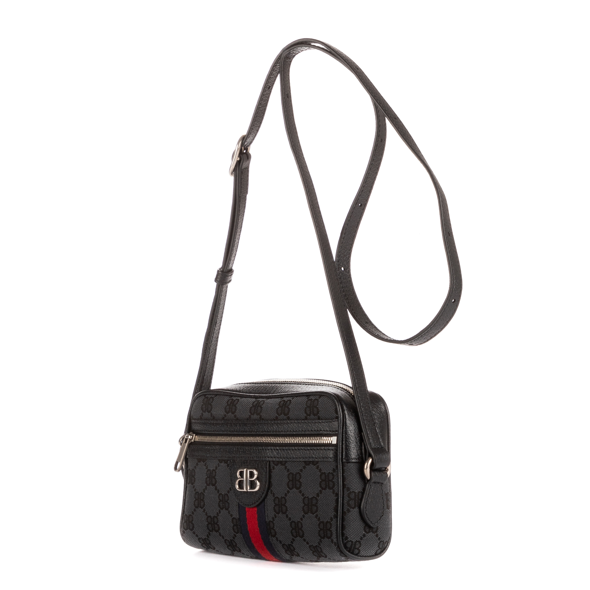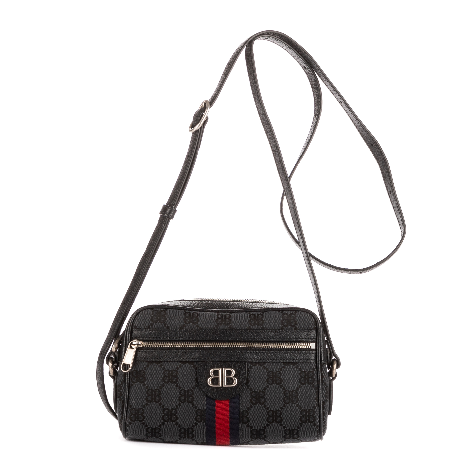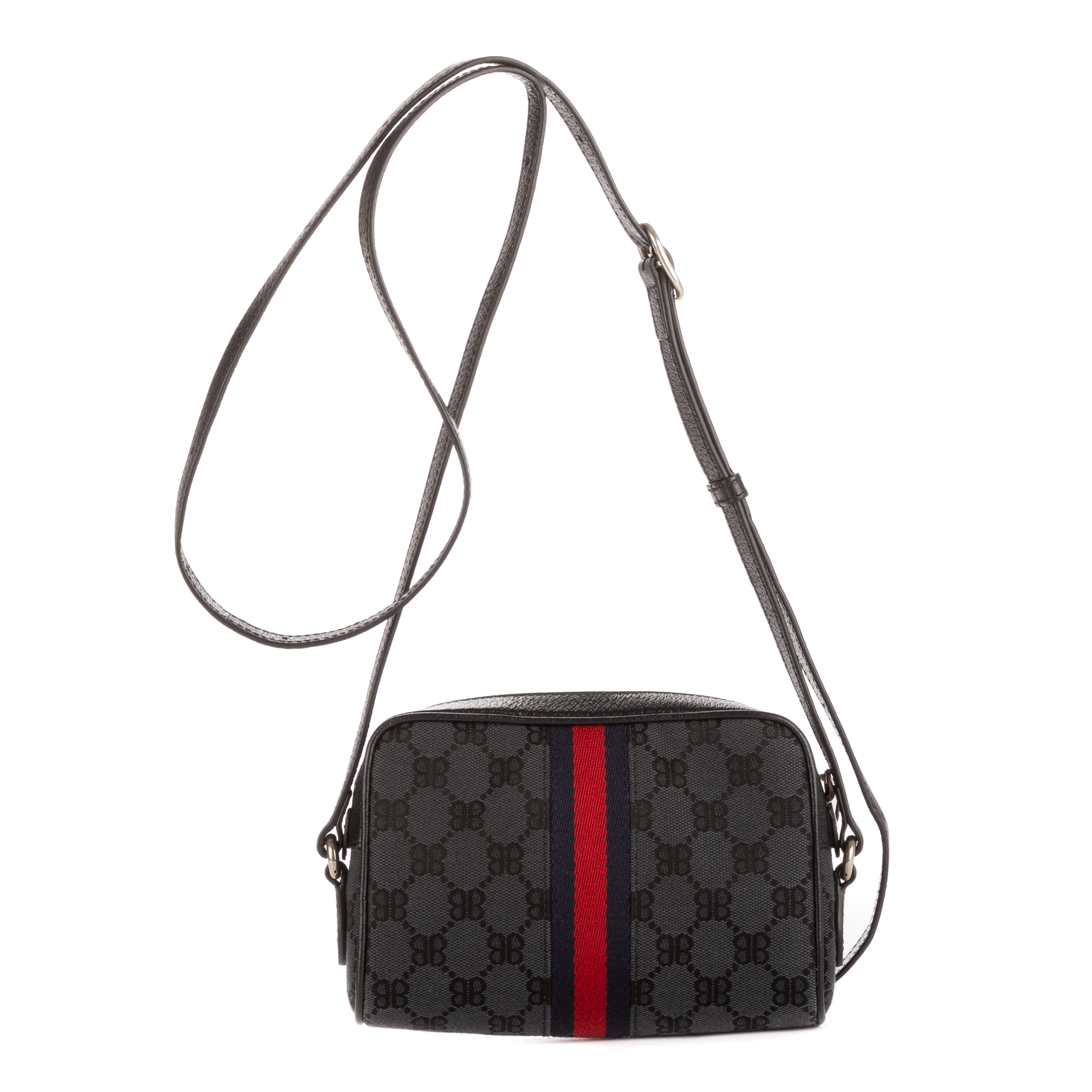 Balenciaga Shoulder Bag Hacker Project Ophidia in Navy Blue Monogram Jacquard Canvas and Silver hardware. The product is in Perfect Condition (AA).