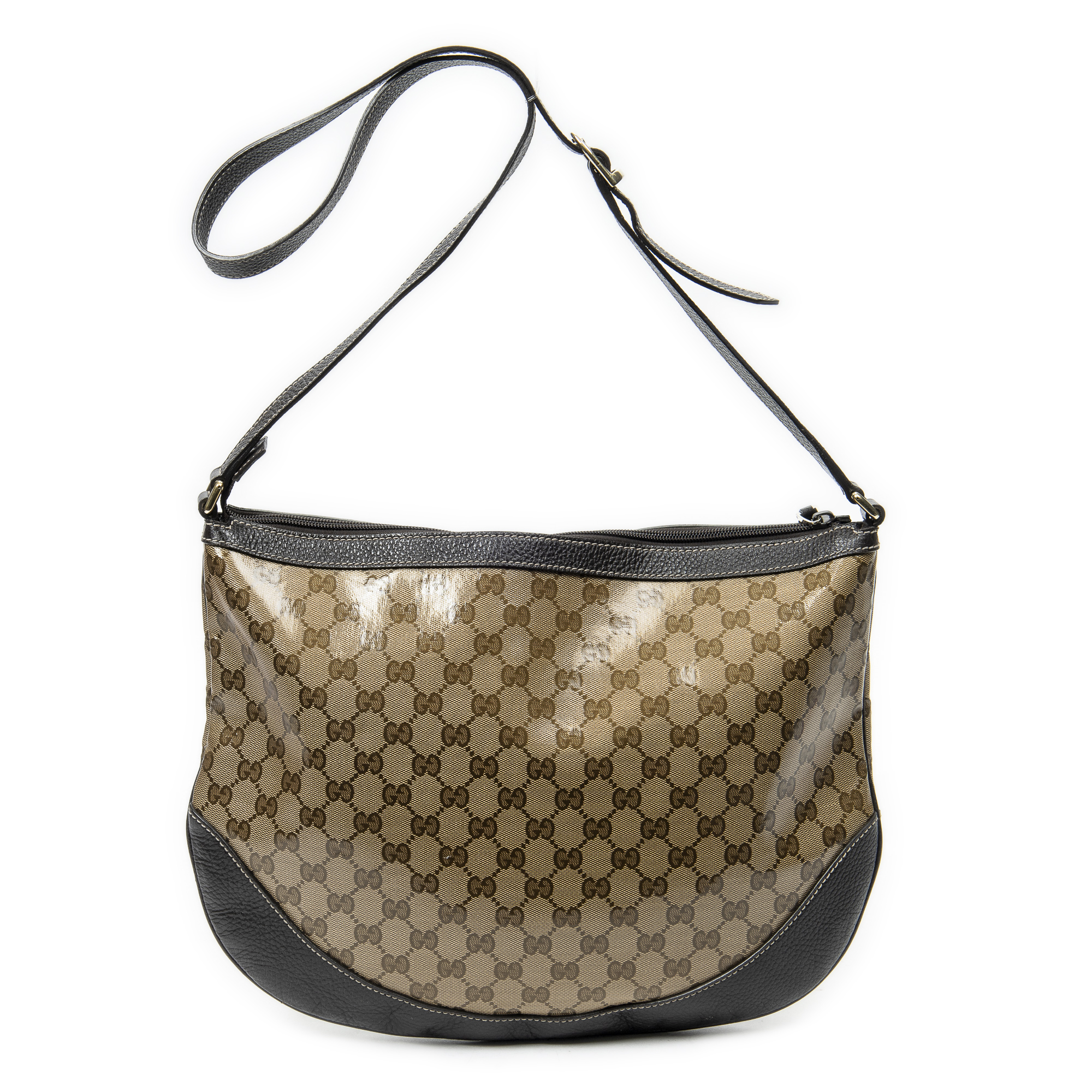 Description : Gucci Shoulder Bag Half Moon Messenger in Dark Brown/Beige Monogrammed Crystal Coated Canvas and Gold hardware. The product is in Perfect Condition (AA). Dimensions: 40x30x3 cm SKU: ABC4002 Serial number: 272380-521753-08 Accessories Included: None Condition Outlet Product Delivery: We have a 5 to 7 business days delivery policy, hassle-free and duties/tariffs included! BrandCo Paris finds rare and top condition items at great deals, they are worth your patience! Shop with confidence - All BrandCo Paris items are carefully selected and authenticated by our team of experts. All the items come with an authenticity certificate and packaging delivered by BrandCo Paris. Item Condition Grading Table N (Like New) AA (Perfect Condition) A (Excellent Condition) AB (Very Good Condition) B (Good/Fair)
