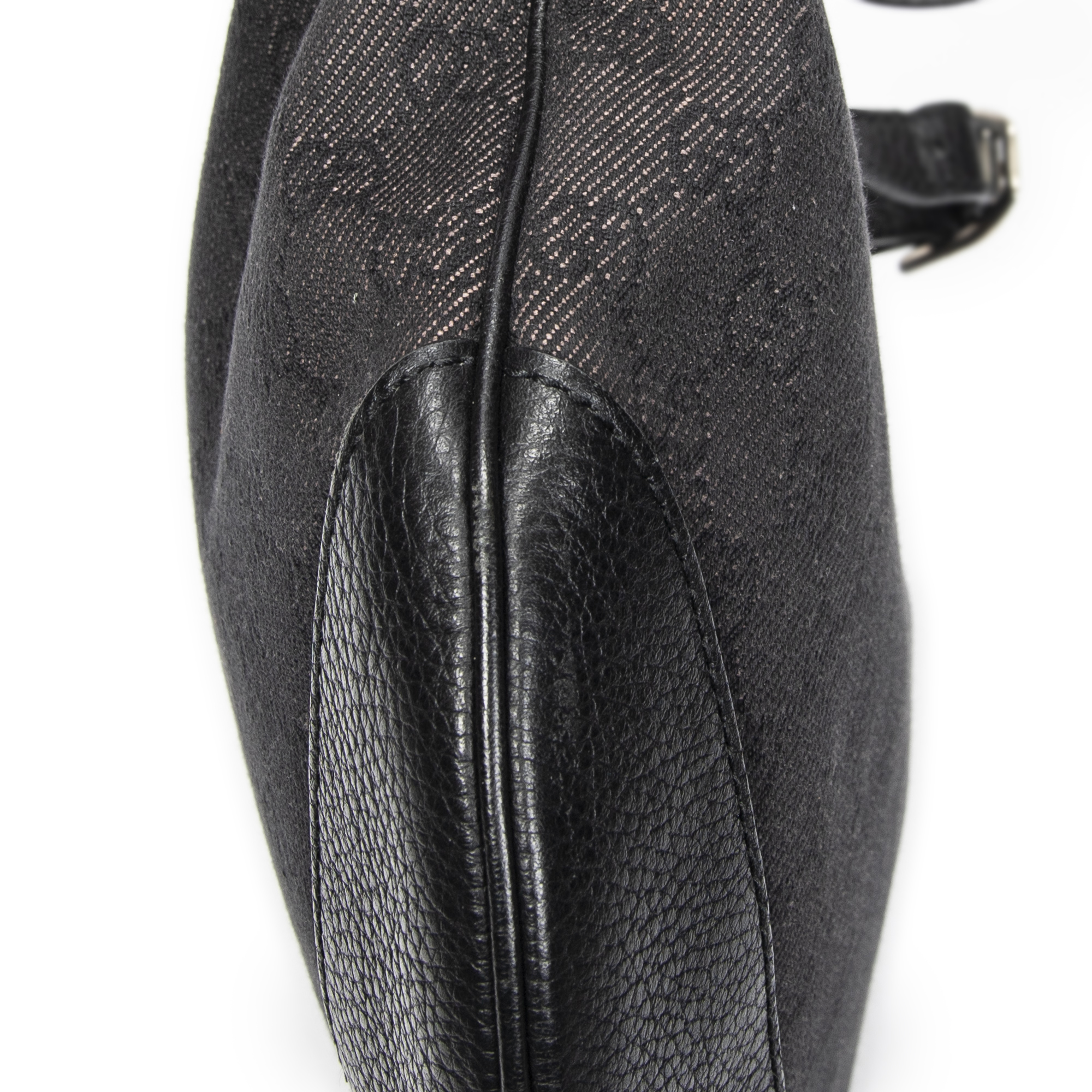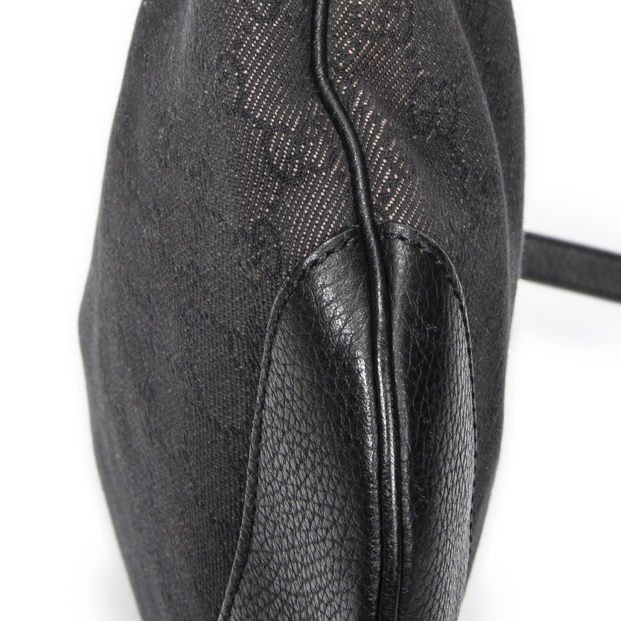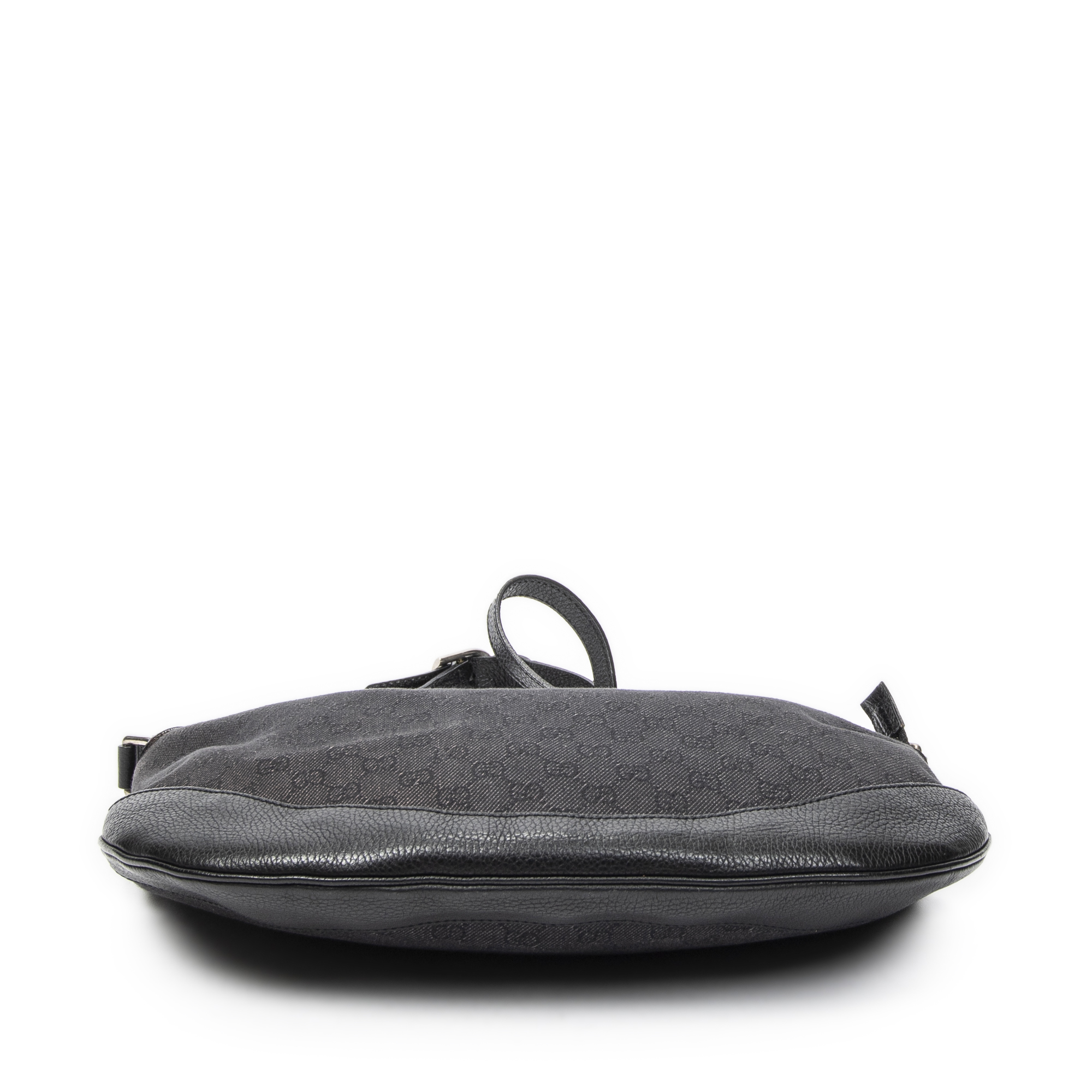Gucci Shoulder Bag Half Moon Messenger in Black Monogrammed Denim Canvas and Silver hardware. The product is in Excellent Condition (A).