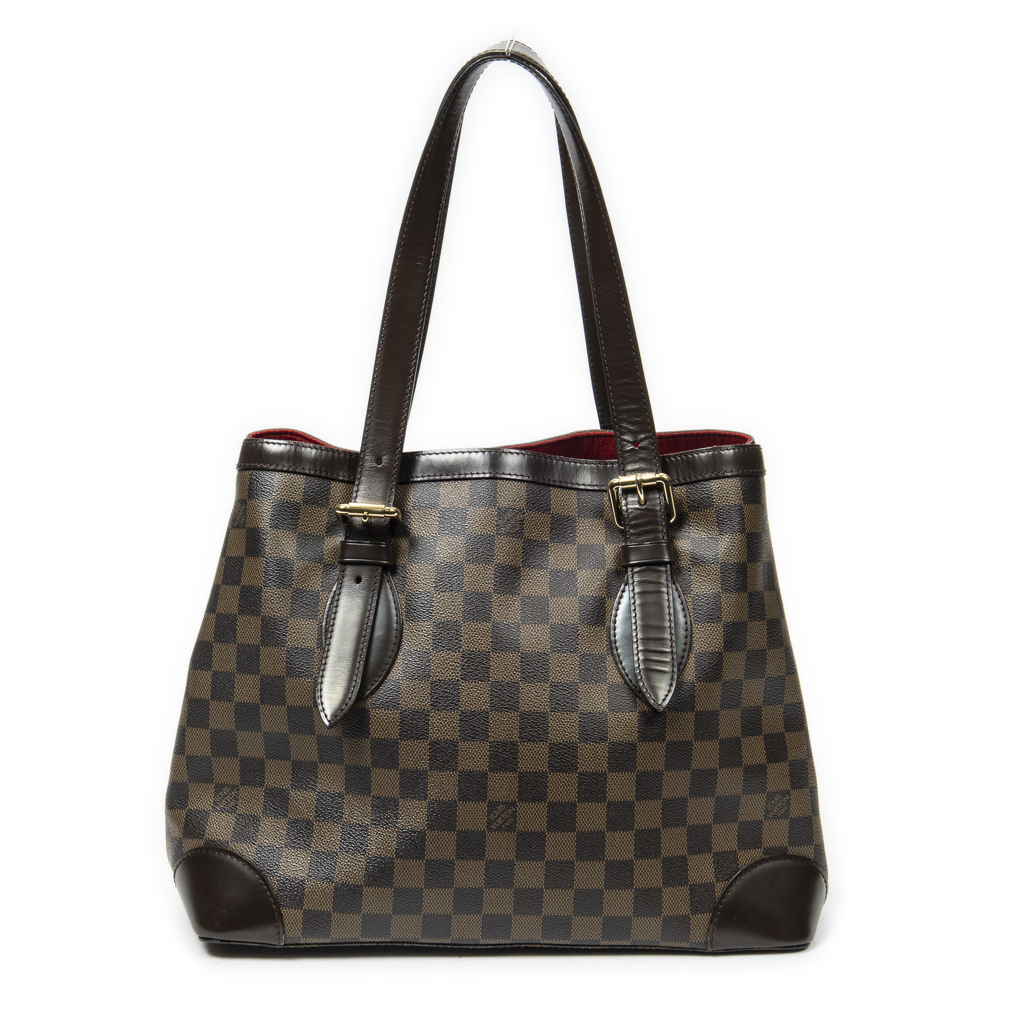 Louis Vuitton Shoulder Bag Hampstead MM in Brown Damier Ebene and Golden Brass hardware. The product is in Excellent Condition (A).