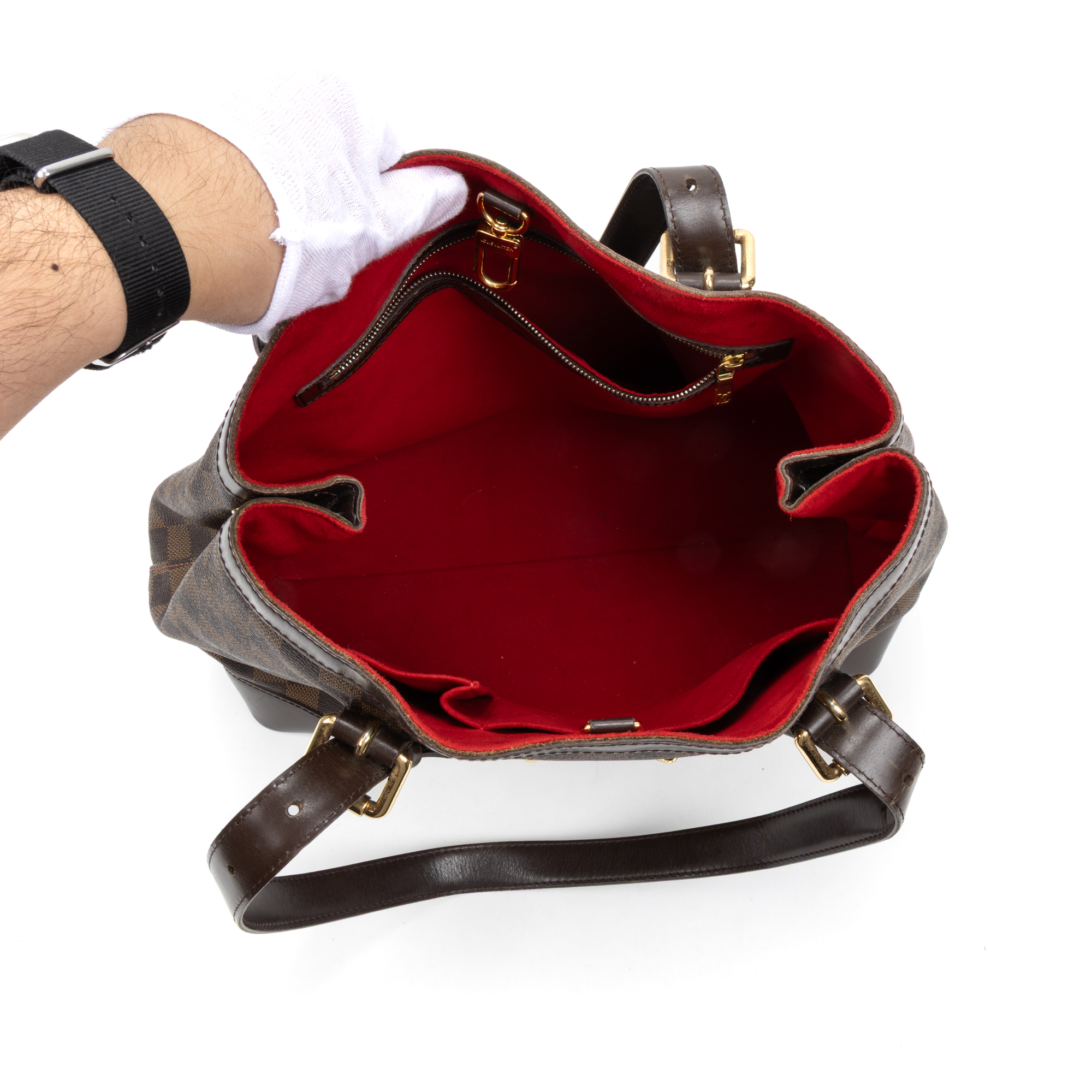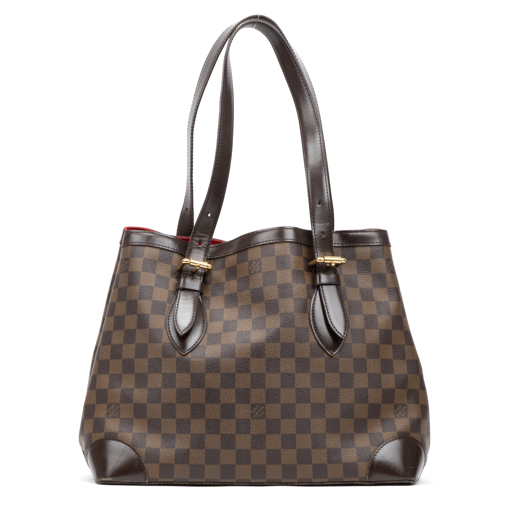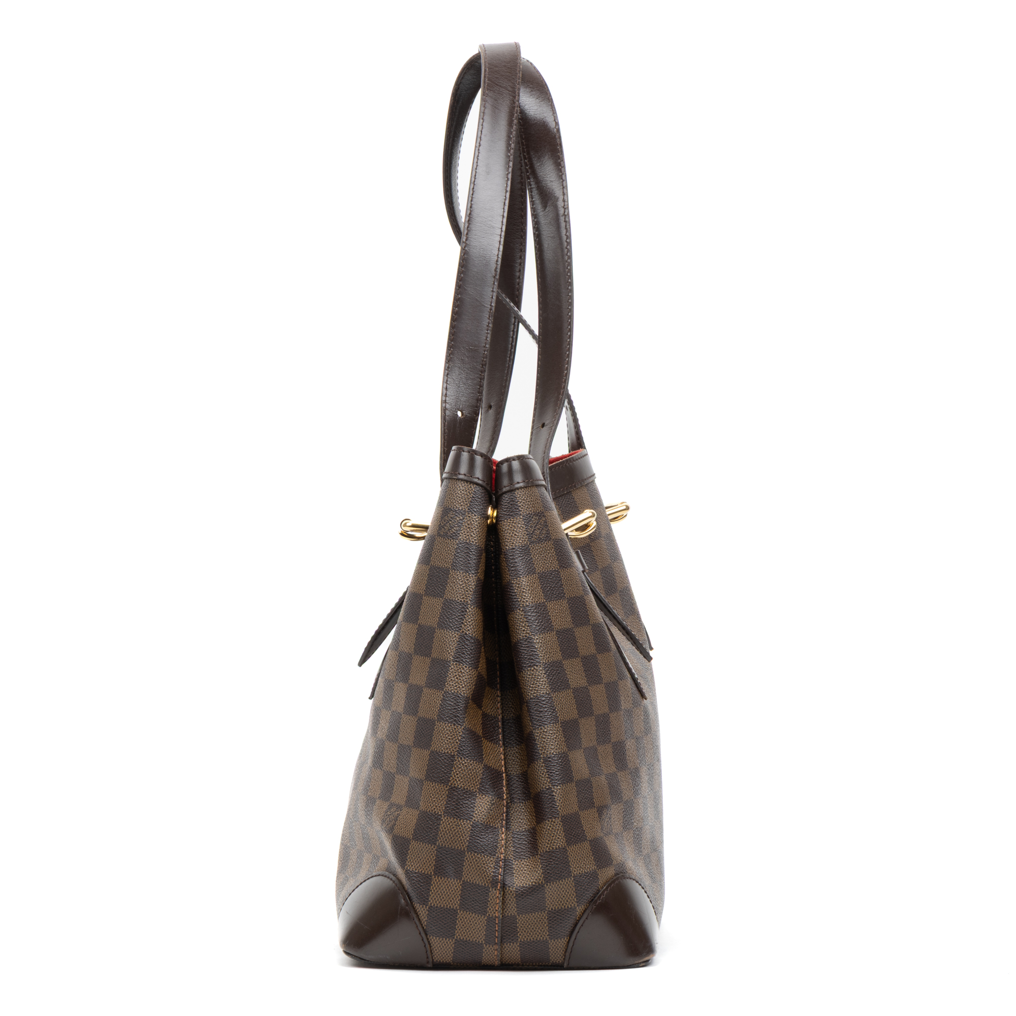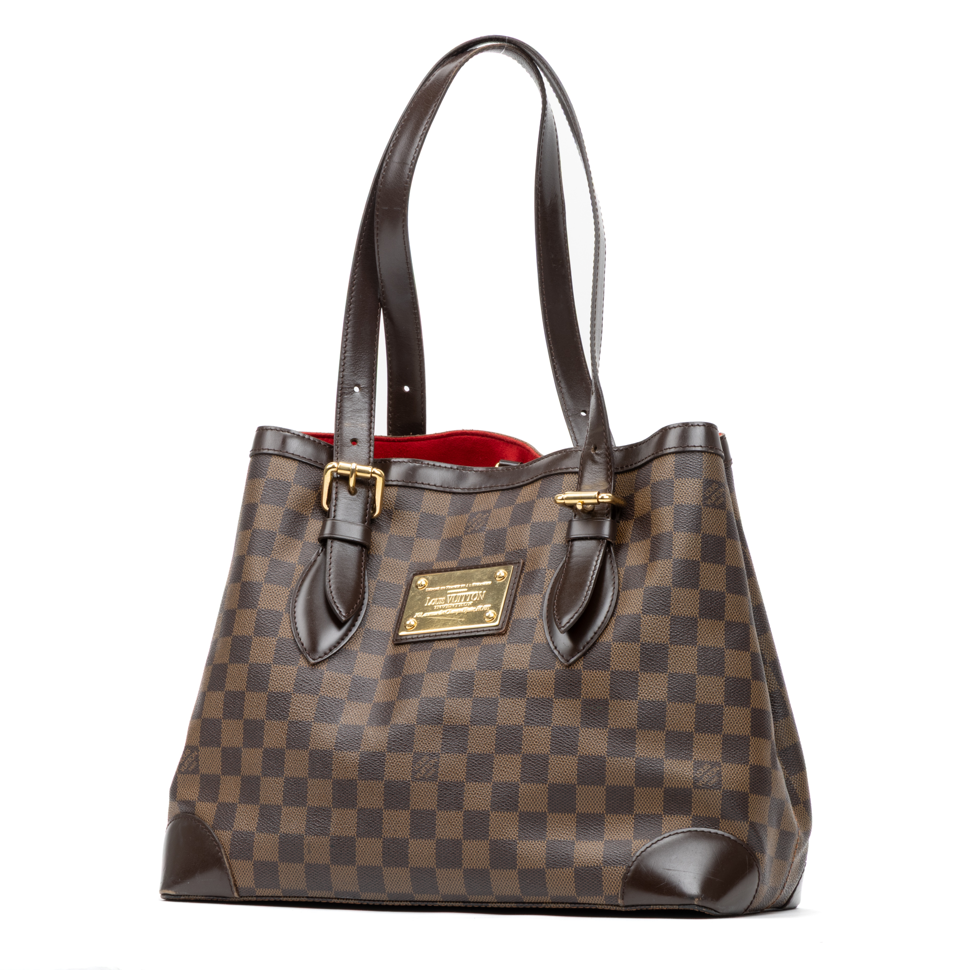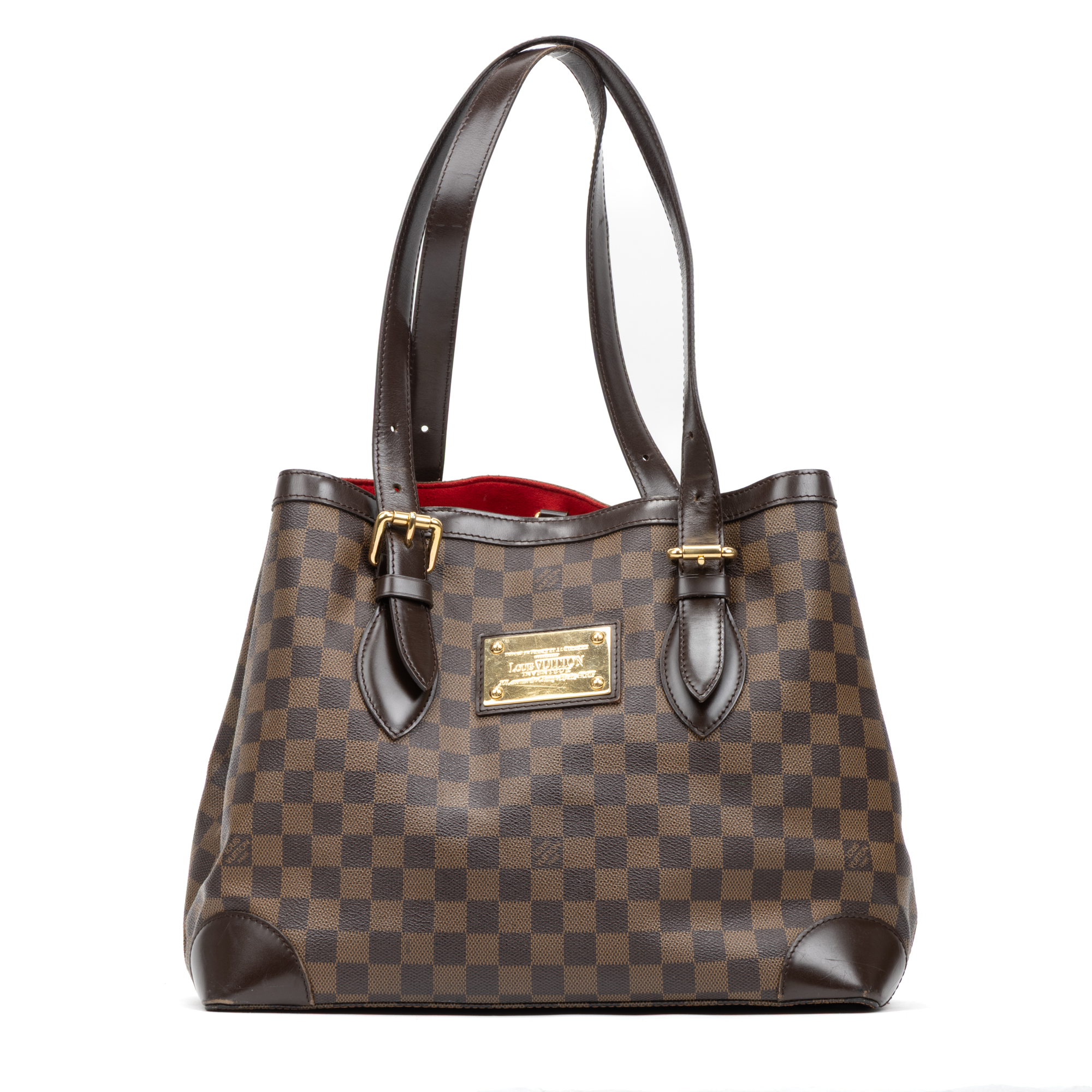 Louis Vuitton Shoulder Bag Hampstead MM in Brown Damier Ebene and Golden Brass hardware. The product is in Very Good Condition (AB).