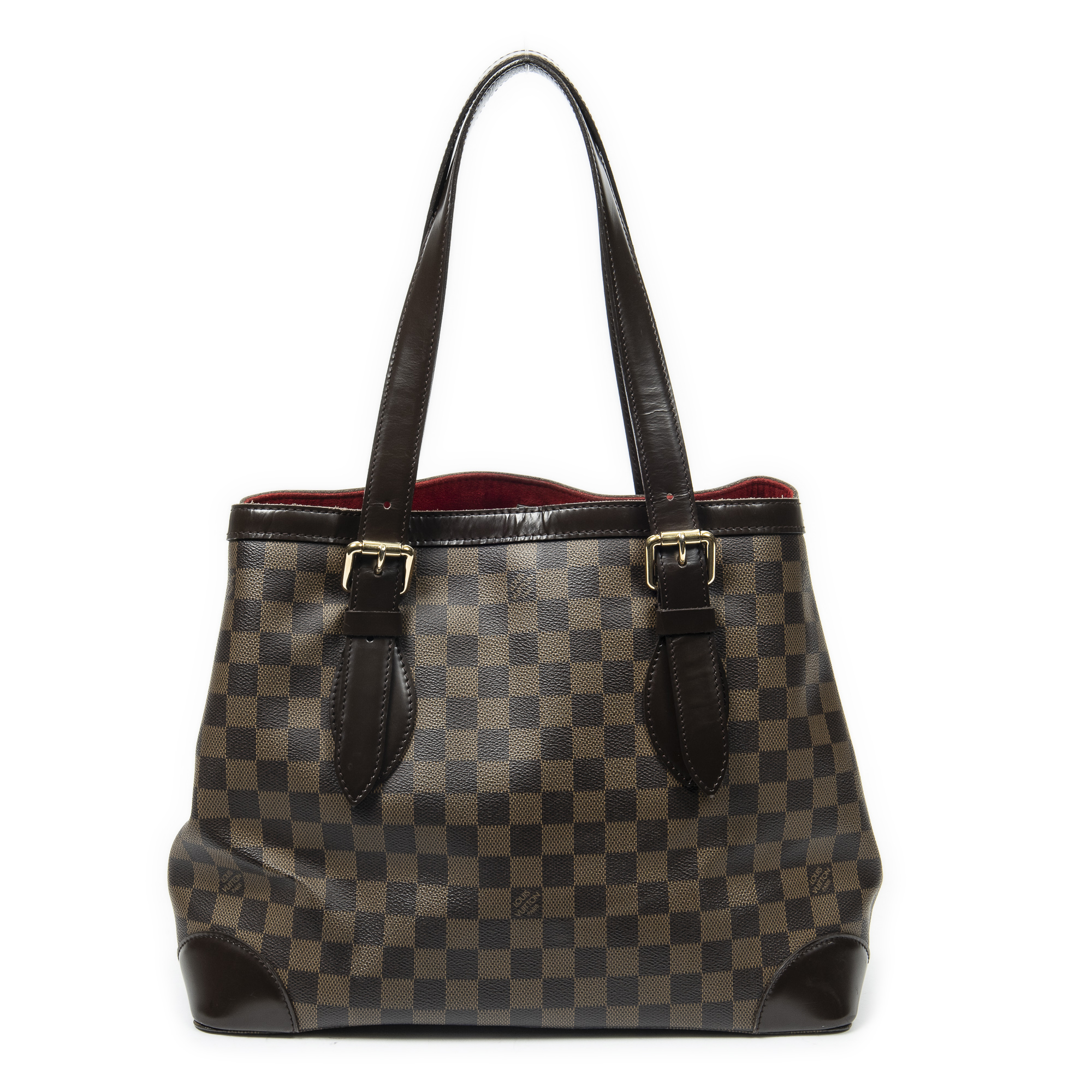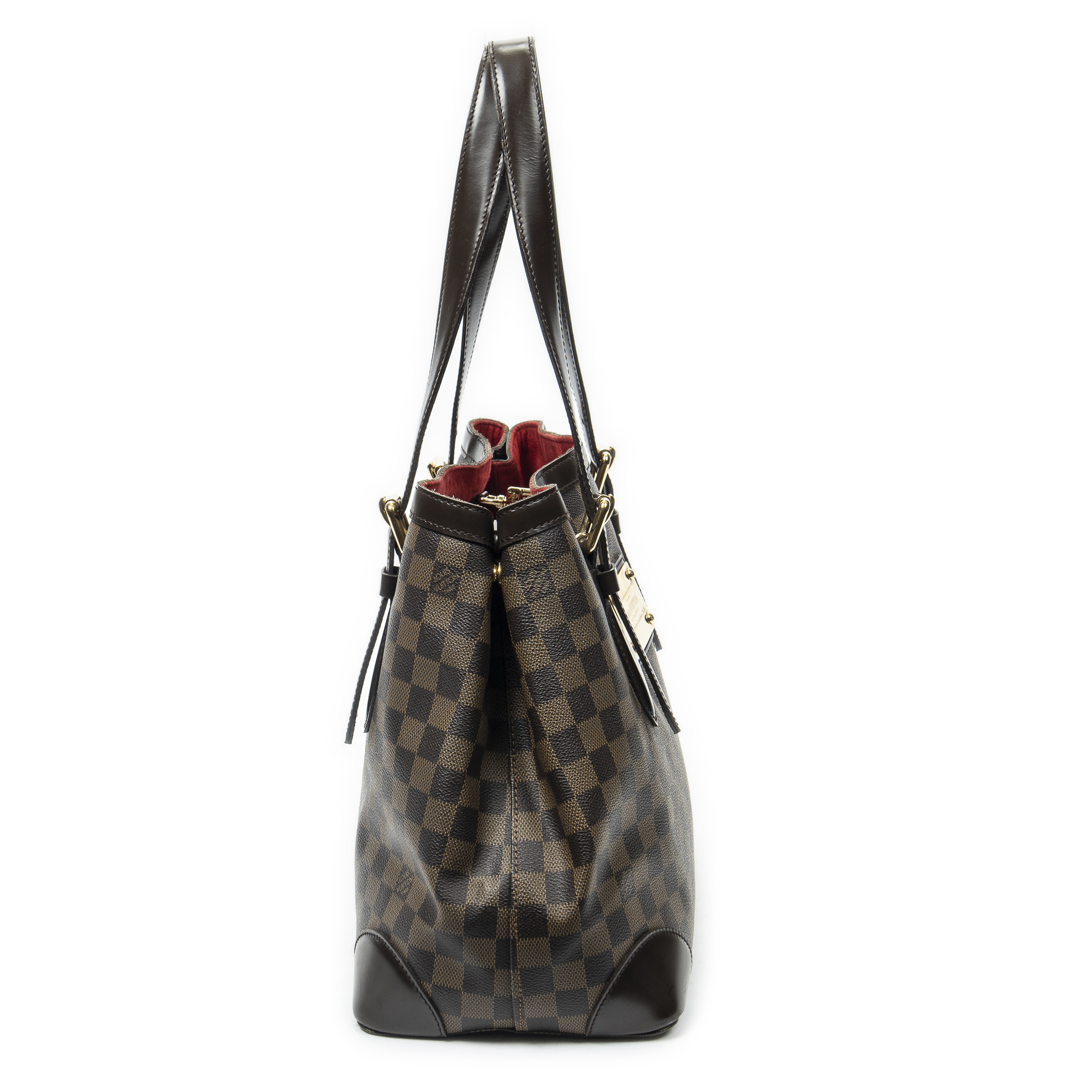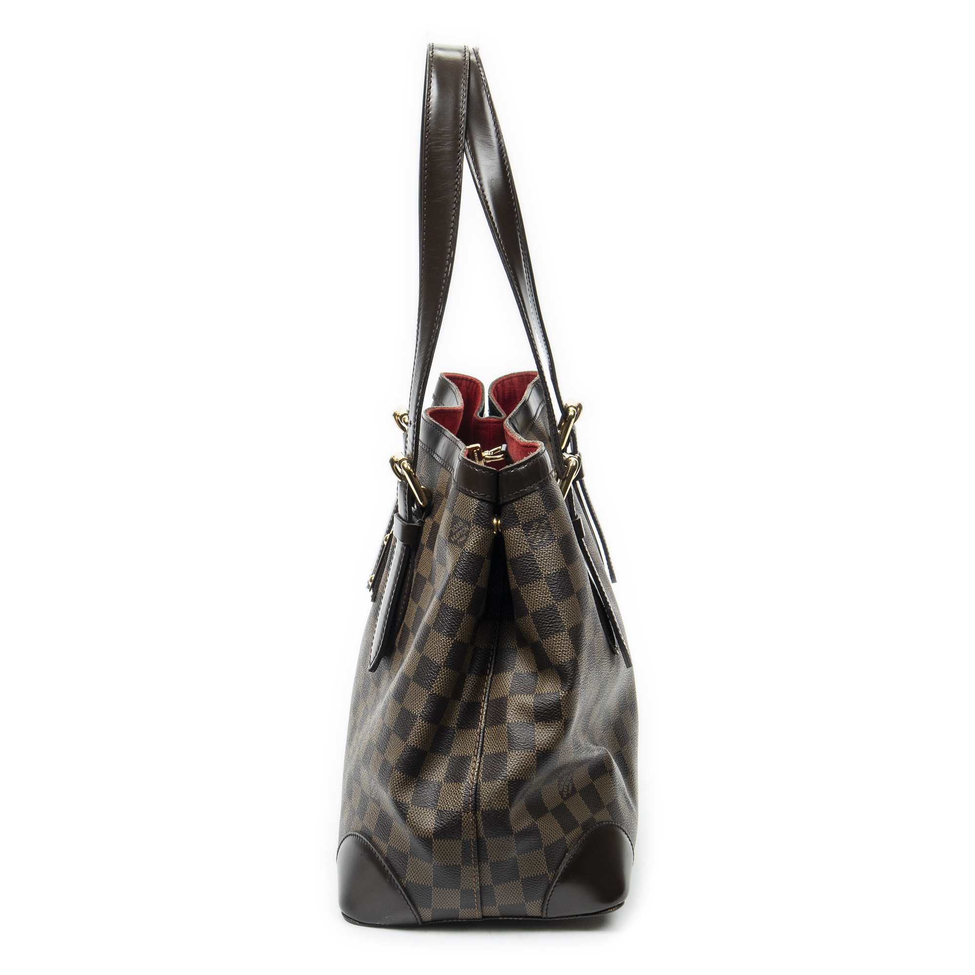 Louis Vuitton Shoulder Bag Hampstead MM in Brown Damier Ebene and Golden Brass hardware. The product is in Excellent Condition (A).