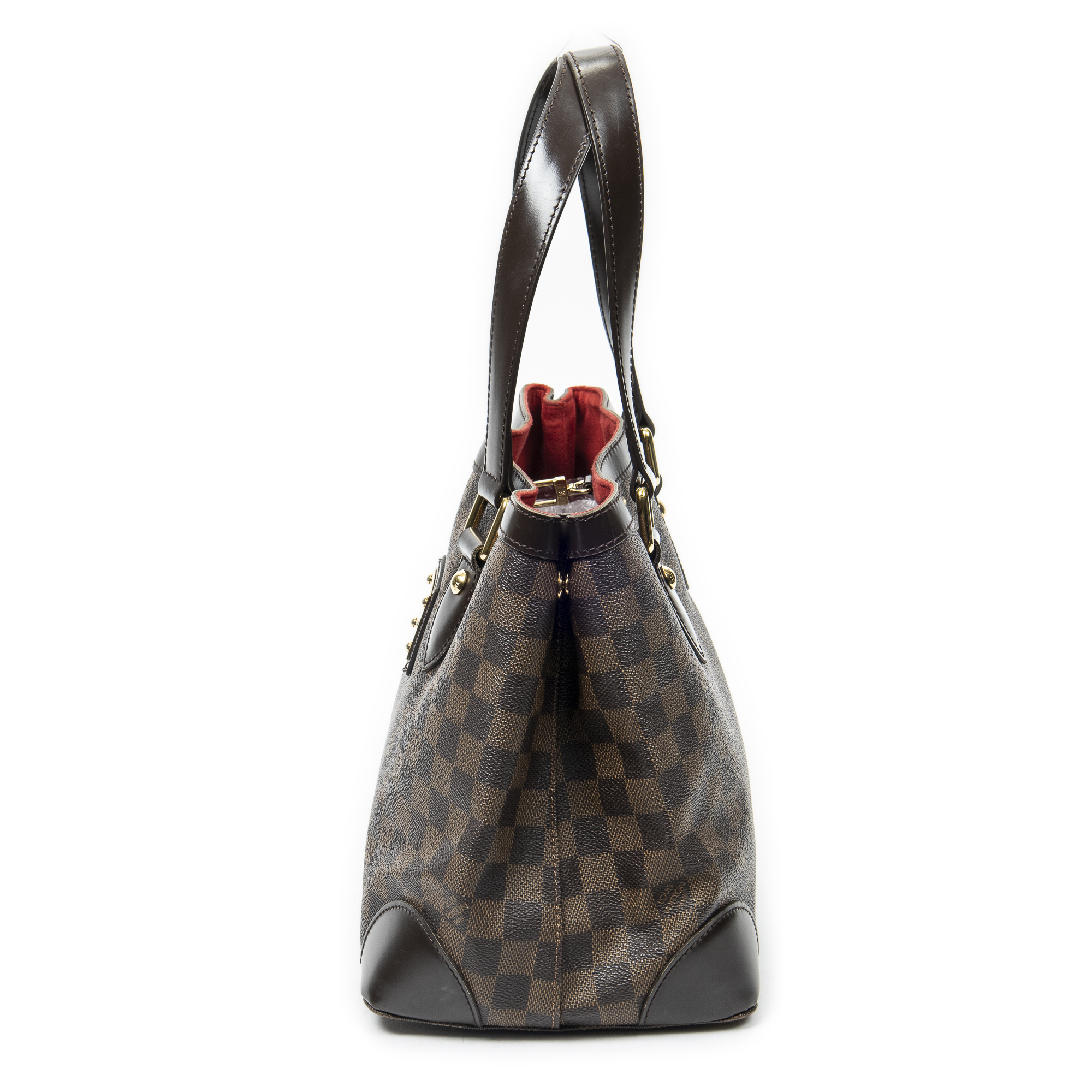 Louis Vuitton Shoulder Bag Hampstead PM in Brown Damier Ebene and Golden Brass hardware. The product is in Very Good Condition (AB).