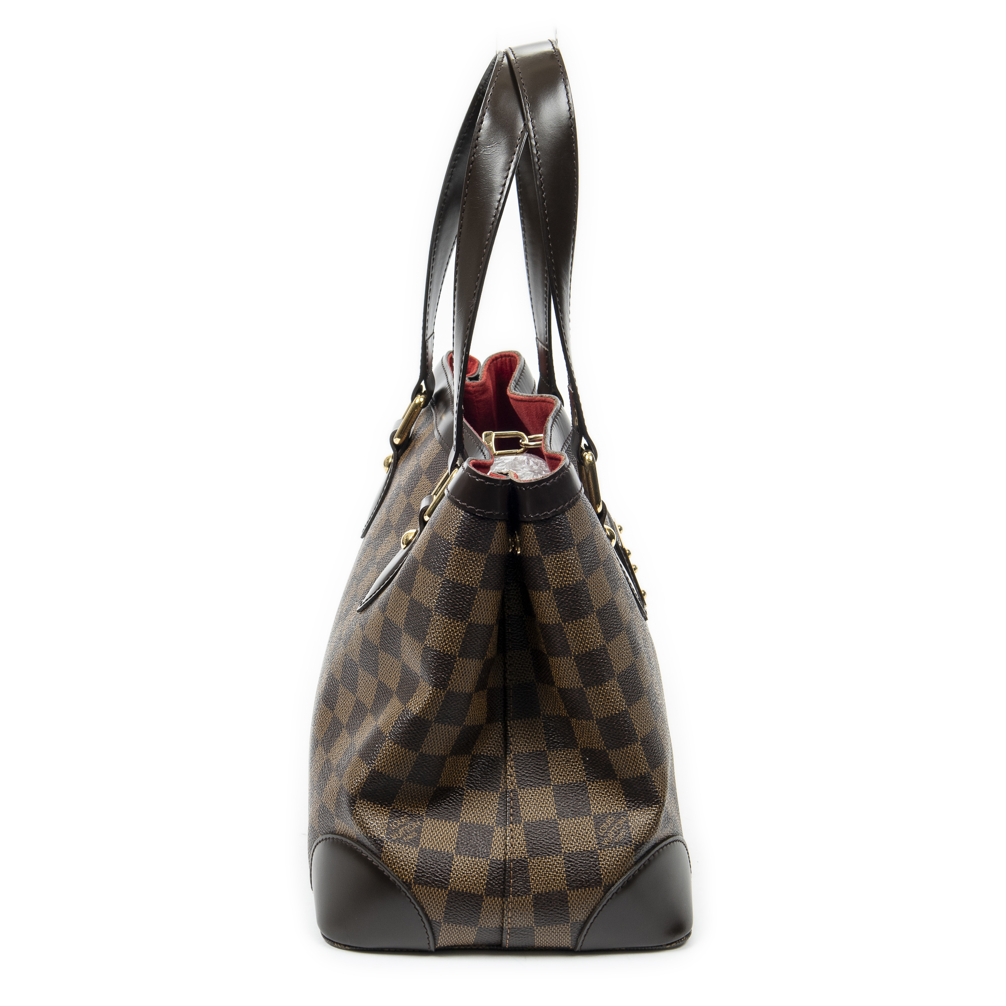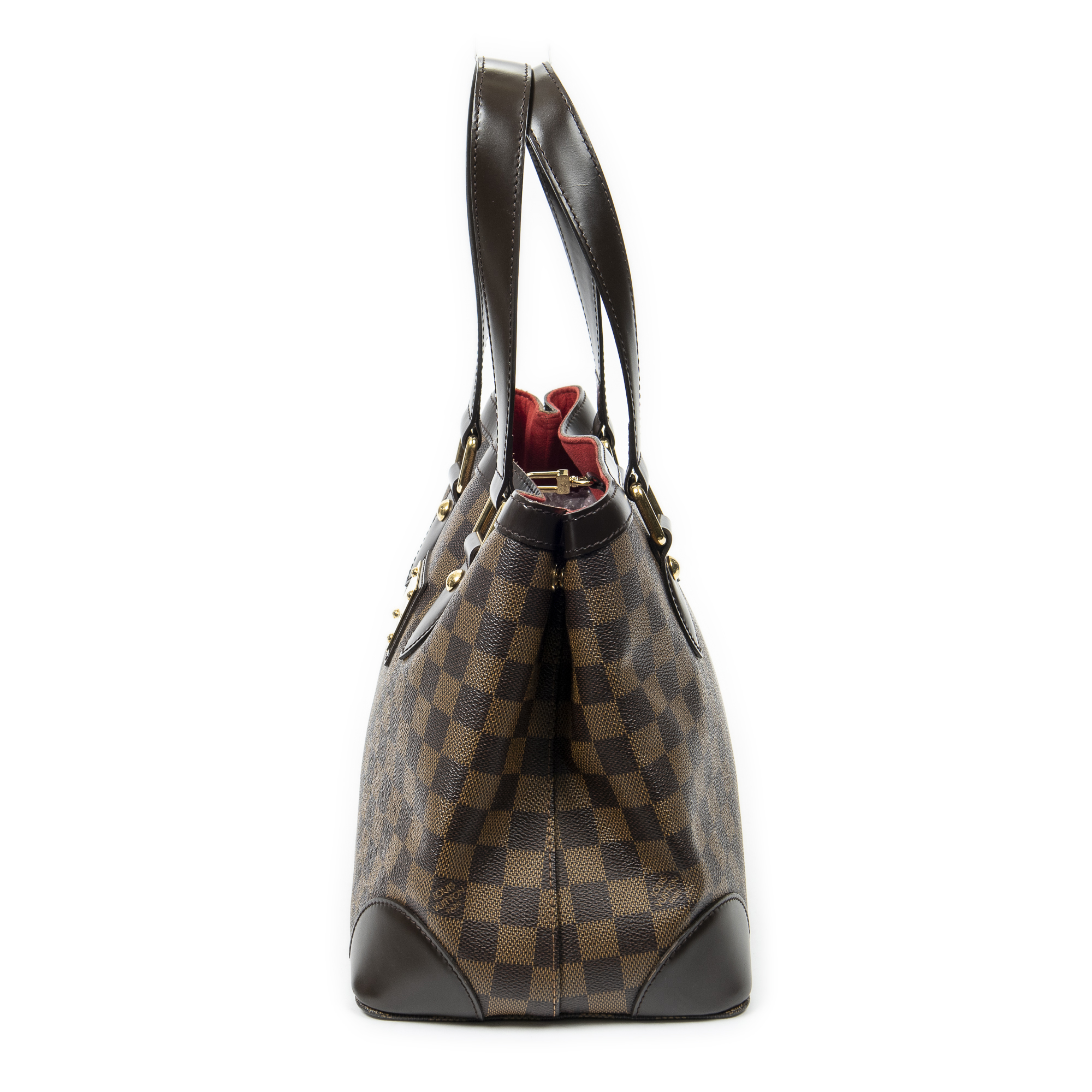 Louis Vuitton Shoulder Bag Hampstead PM in Brown Damier Ebene and Golden Brass hardware. The product is in Excellent Condition (A).