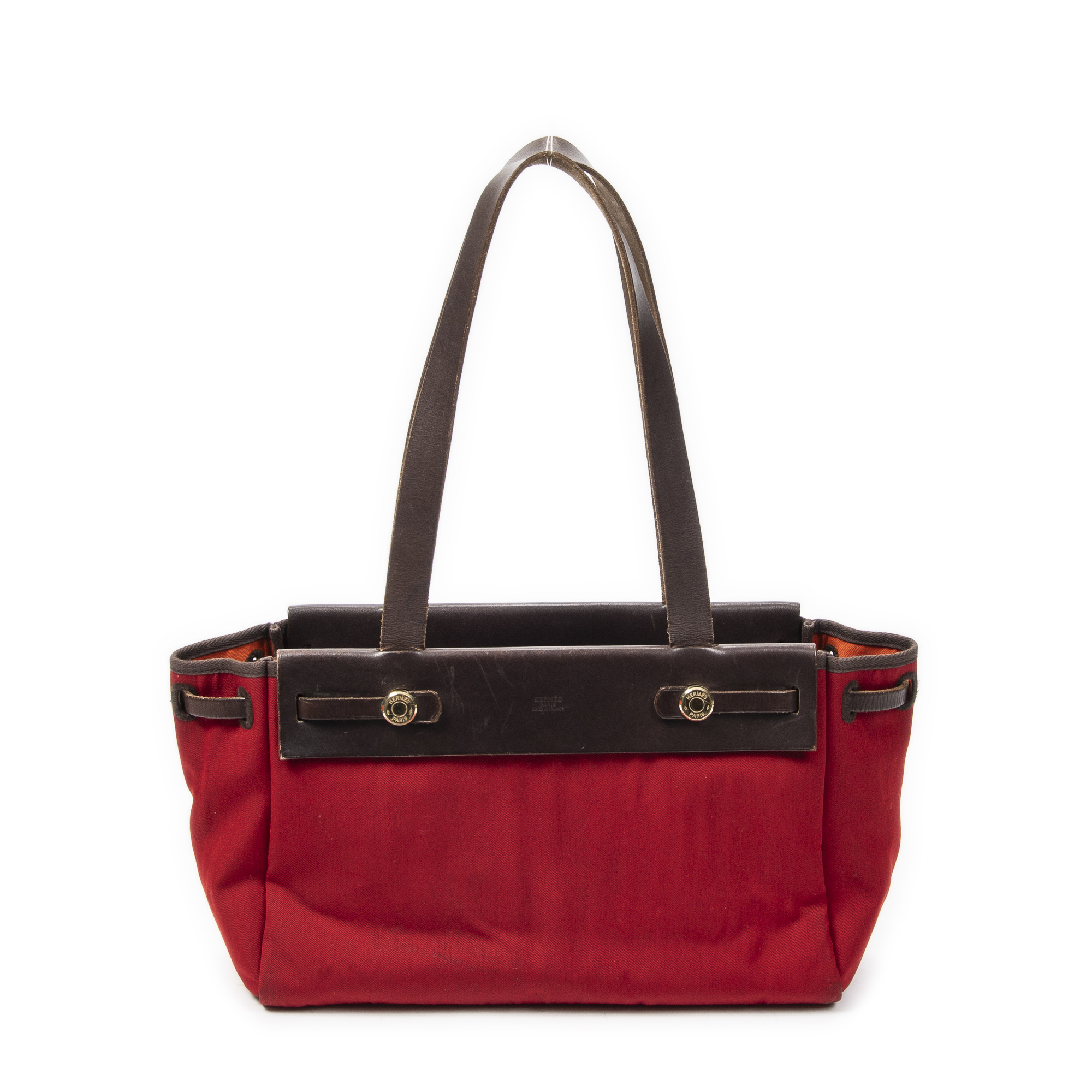 Description : Hermès Shoulder Bag Herbag Cabas PM in Red/Brown Toile Officier Canvas and Gold hardware. The product is in Very Good Condition (AB). Dimensions: 32x20x14 cm SKU: ABC3758 Serial number: Stamp H in Square (2004) Accessories Included: Dustbag; Interchangeable Bag; Charm Delivery: We have a 5 to 7 business days delivery policy, hassle-free and duties/tariffs included! BrandCo Paris finds rare and top condition items at great deals, they are worth your patience! Shop with confidence - All BrandCo Paris items are carefully selected and authenticated by our team of experts. All the items come with an authenticity certificate and packaging delivered by BrandCo Paris. Item Condition Grading Table N (Like New) AA (Perfect Condition) A (Excellent Condition) AB (Very Good Condition) B (Good/Fair)
